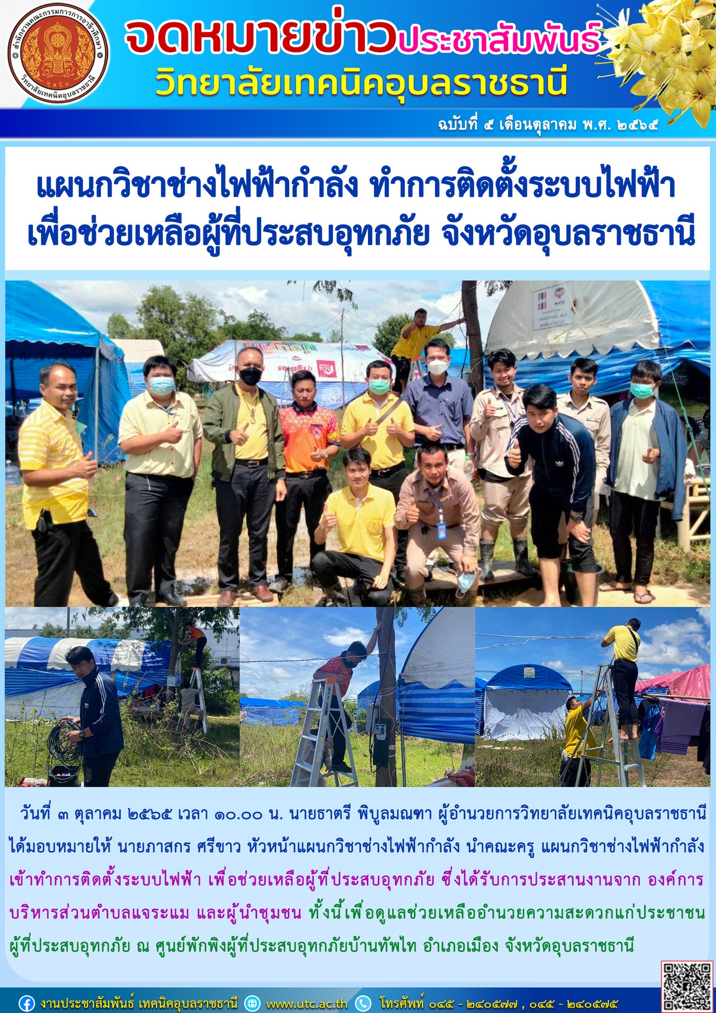 วันที่ ๓ ตุลาคม ๒๕๖๕ เวลา ๑๐.๐๐ น. นายธาตรี พิบูลมณฑา ผู้อำนวยการวิทยาลัยเทคนิคอุบลราชธานี (เพิ่มเติม…)