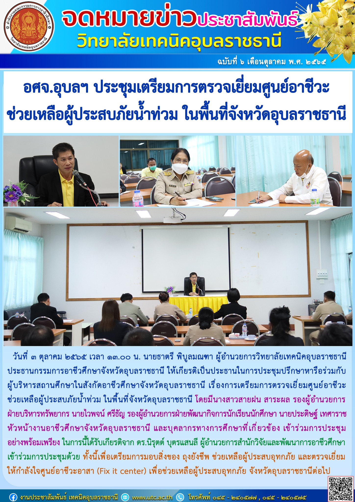 วันที่ ๑ ตุลาคม ๒๕๖๕ เวลา ๑๐.๐๐ น. นายธาตรี พิบูลมณฑา ผู้อำนวยการวิทยาลัยเทคนิคอุบลราชธานี (เพิ่มเติม…)