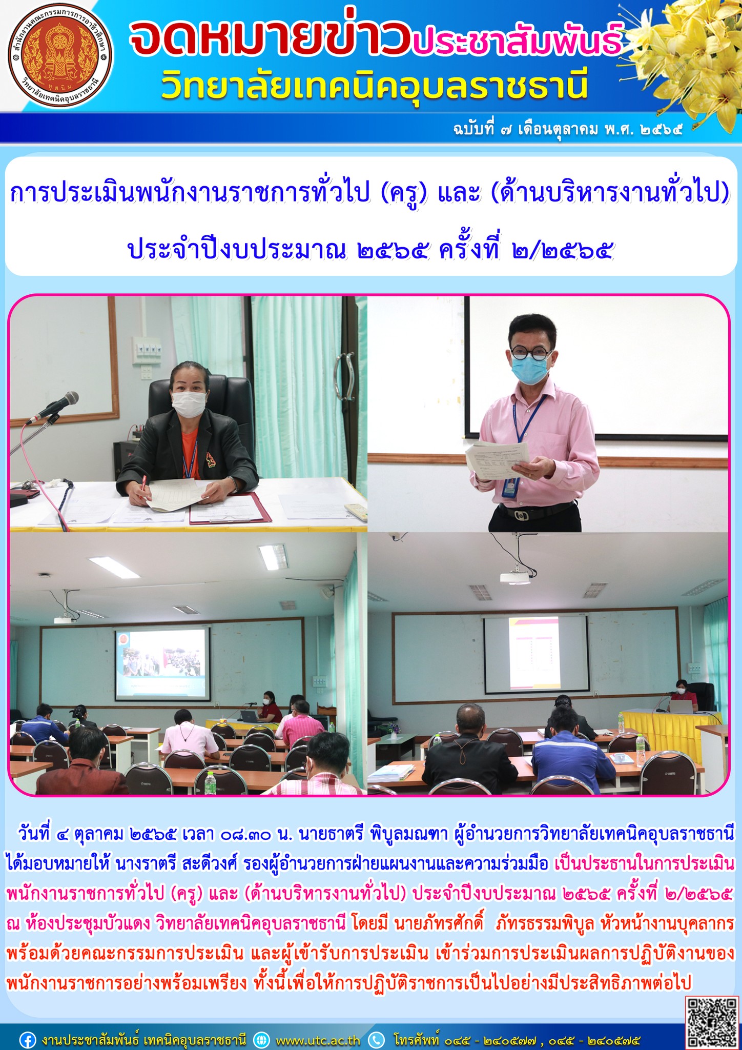 การประเมินพนักงานราชการทั่วไป (ครู) และ (ด้านบริหารงานทั่วไป) ประจำปีงบประมาณ ๒๕๖๕ ครั้งที่ ๒/๒๕๖๕