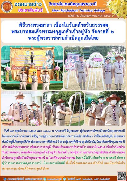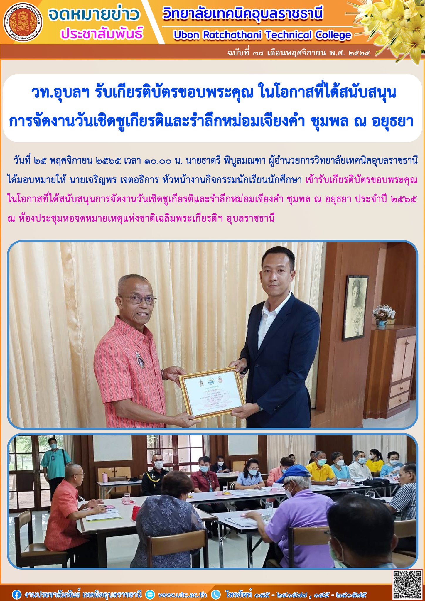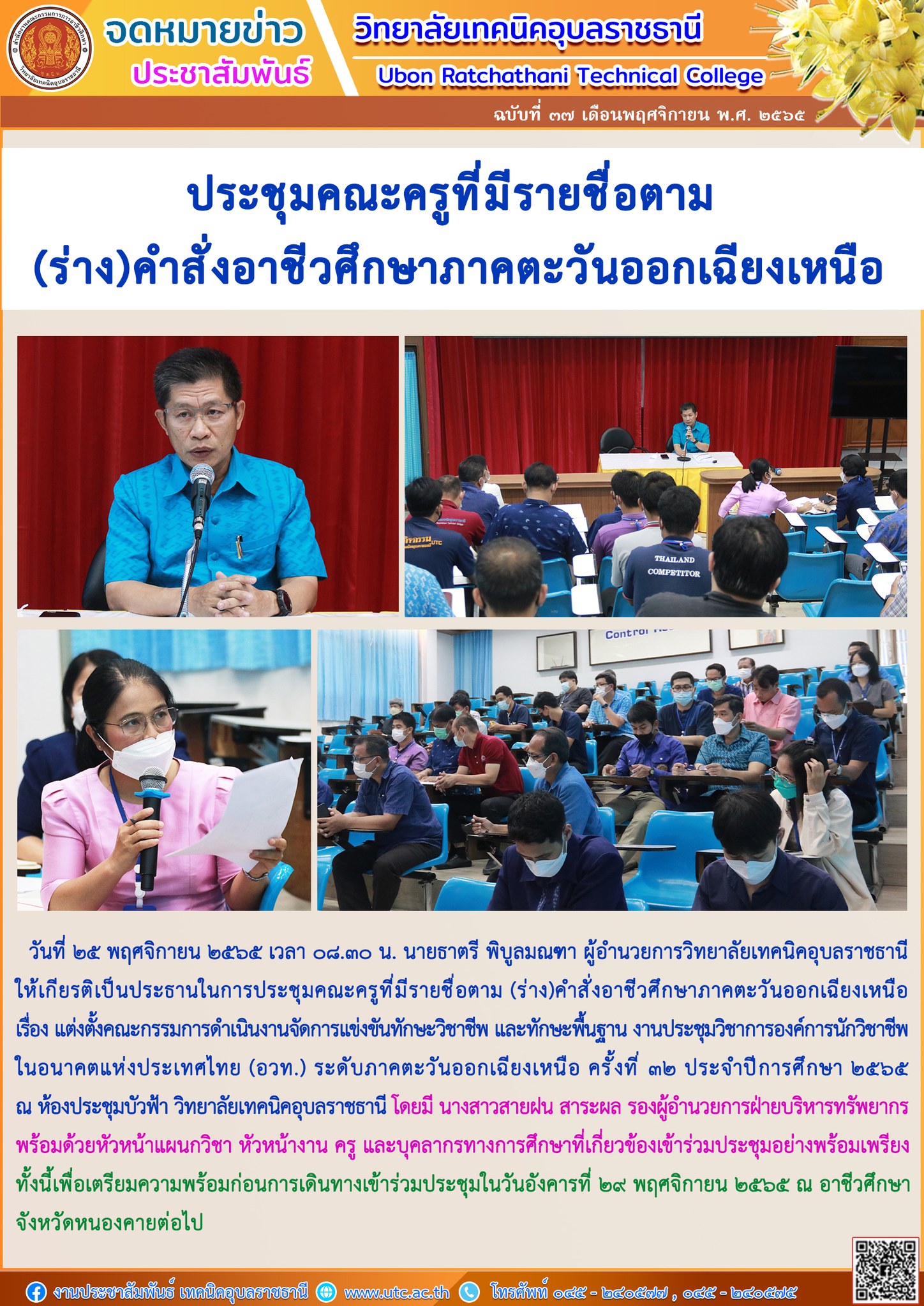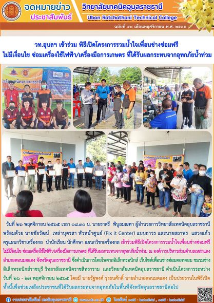 วันที่ ๒๘ พฤศจิกายน ๒๕๖๕ ที่ผ่านมา นายธาตรี พิบูลมณฑา ผู้อำนวยการวิทยาลัยเทคนิคอุบล (เพิ่มเติม…)