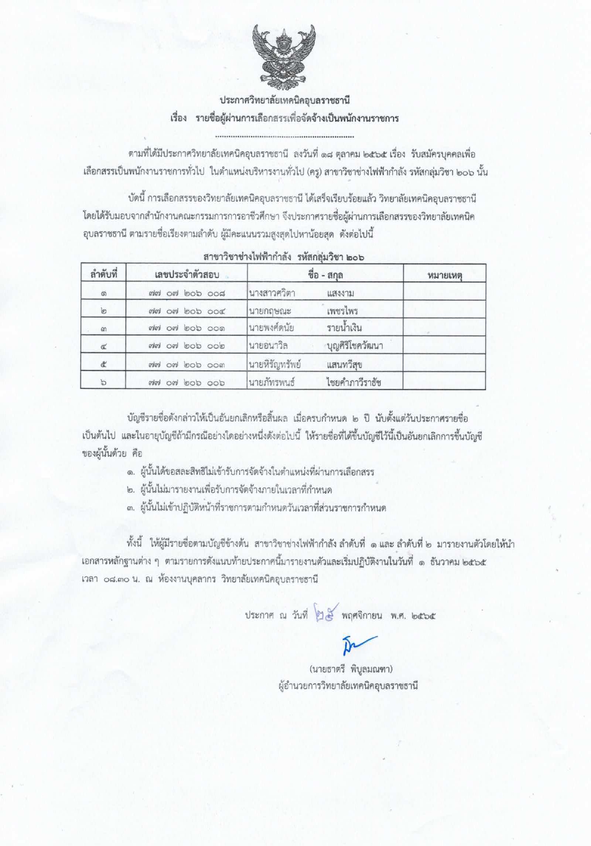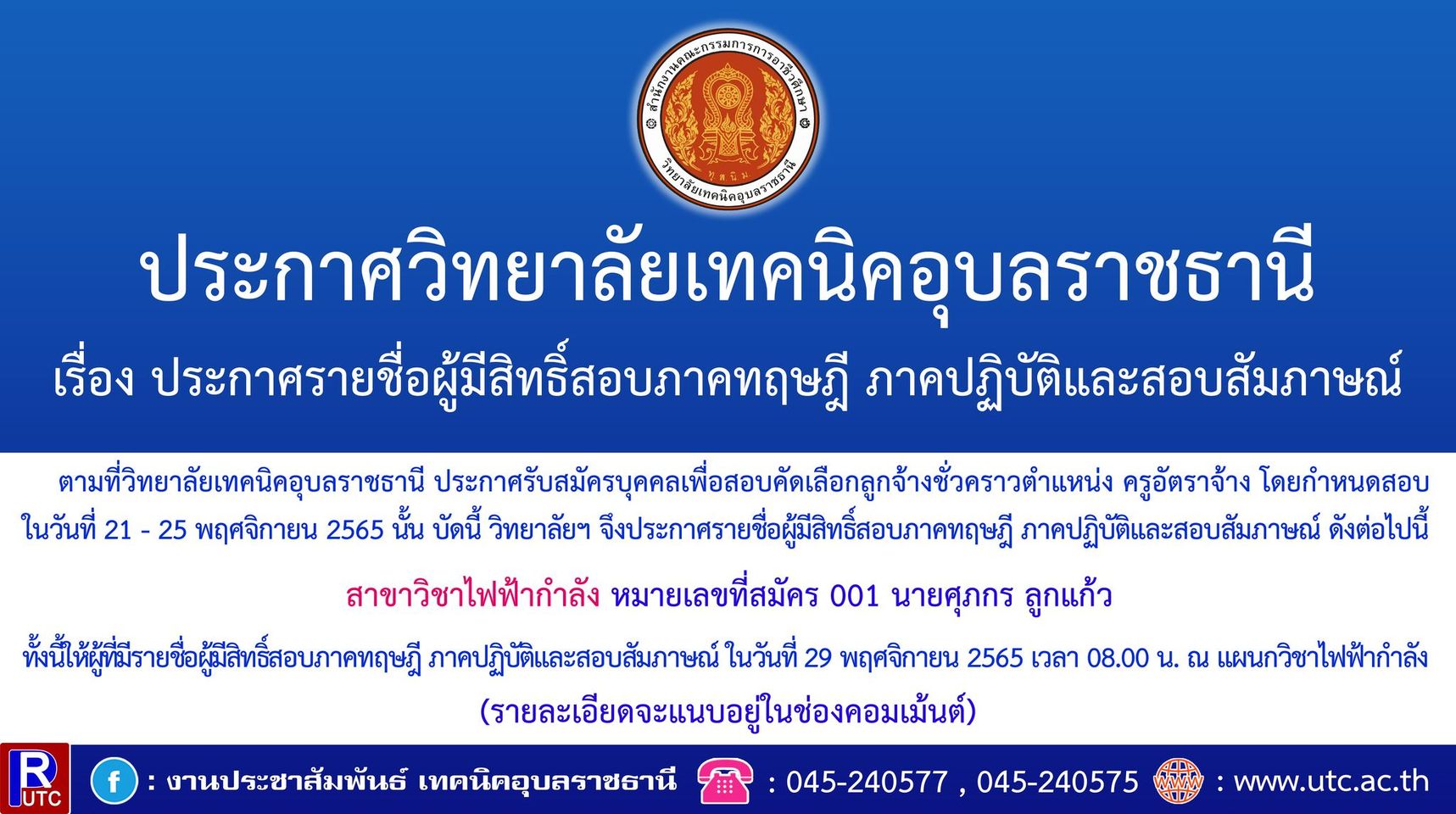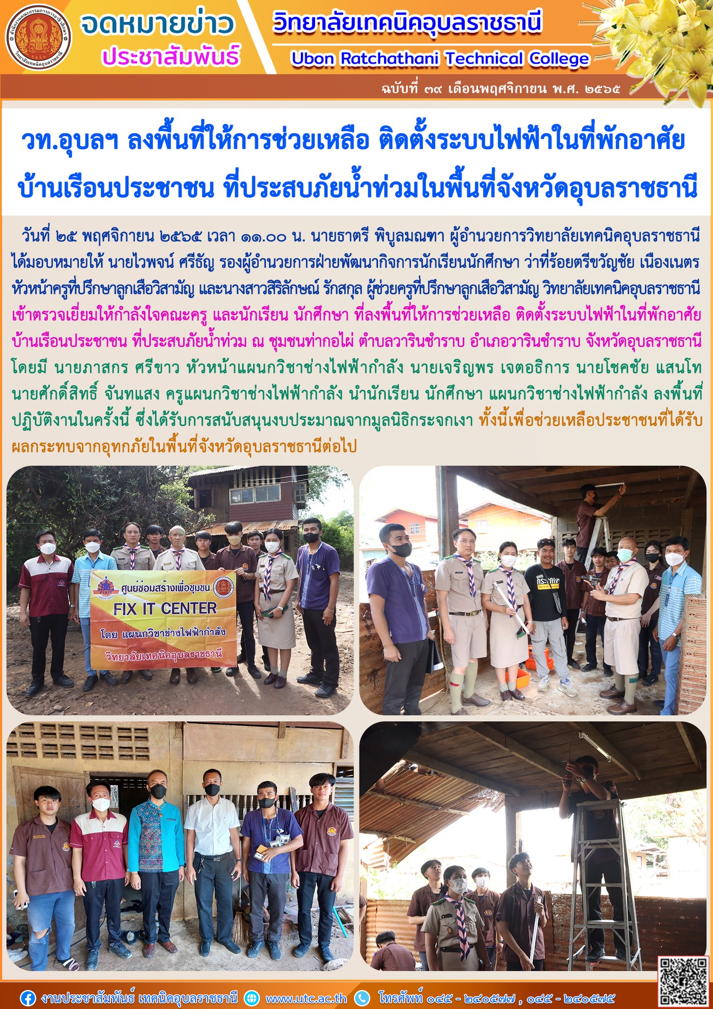 วันที่ ๒๘ พฤศจิกายน ๒๕๖๕ ที่ผ่านมา นายธาตรี พิบูลมณฑา ผู้อำนวยการวิทยาลัยเทคนิคอุบล (เพิ่มเติม…)