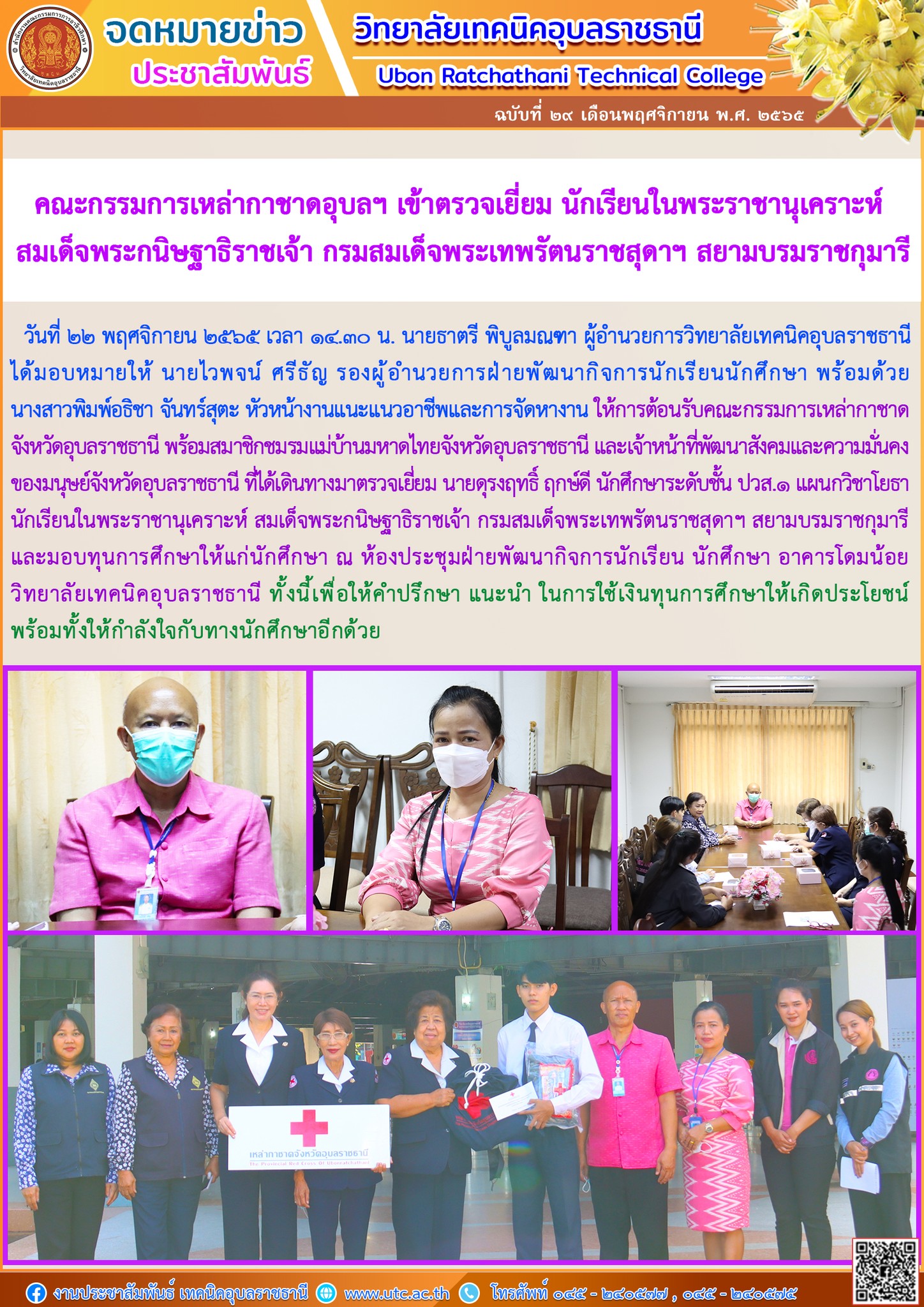 คณะกรรมการเหล่ากาชาดอุบลฯ เข้าตรวจเยี่ยม นักเรียนในพระราชานุเคราะห์ สมเด๊จพระกนิษฐานิราชเจ้า กรมสมเด็จพระเทพรัตนราชสุดาฯ สยามบรมราชกุมารี