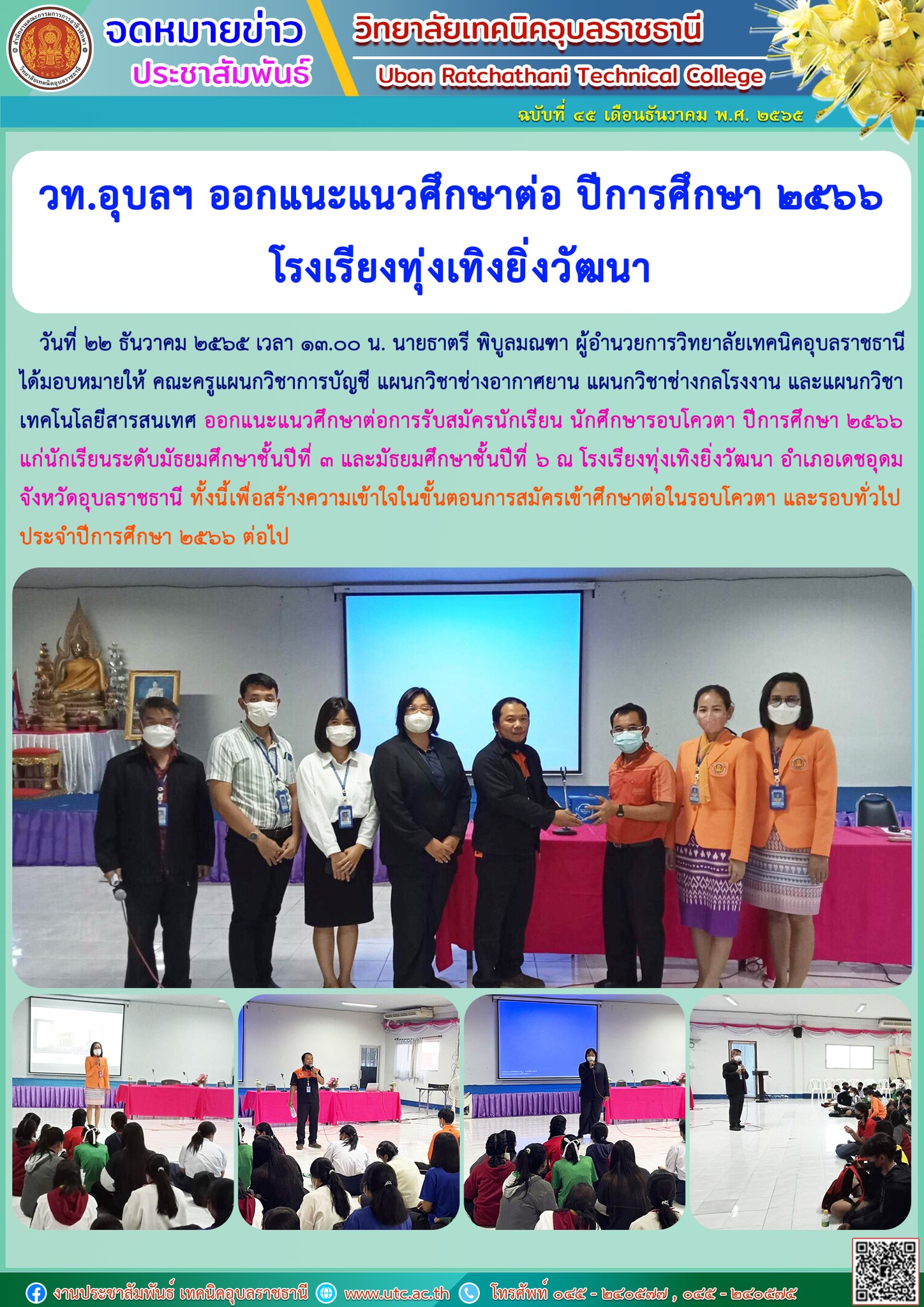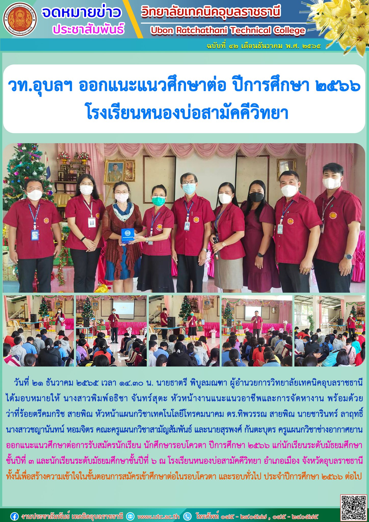 วท.อุบลฯ ออกแนะแนวศึกษาต่อการรับสมัครนักเรียน นักศึกษารอบโควตา ปีการศึกษา ๒๕๖๖ ณ โรงเรียนหนองบ่อสามัคคีวิทยา