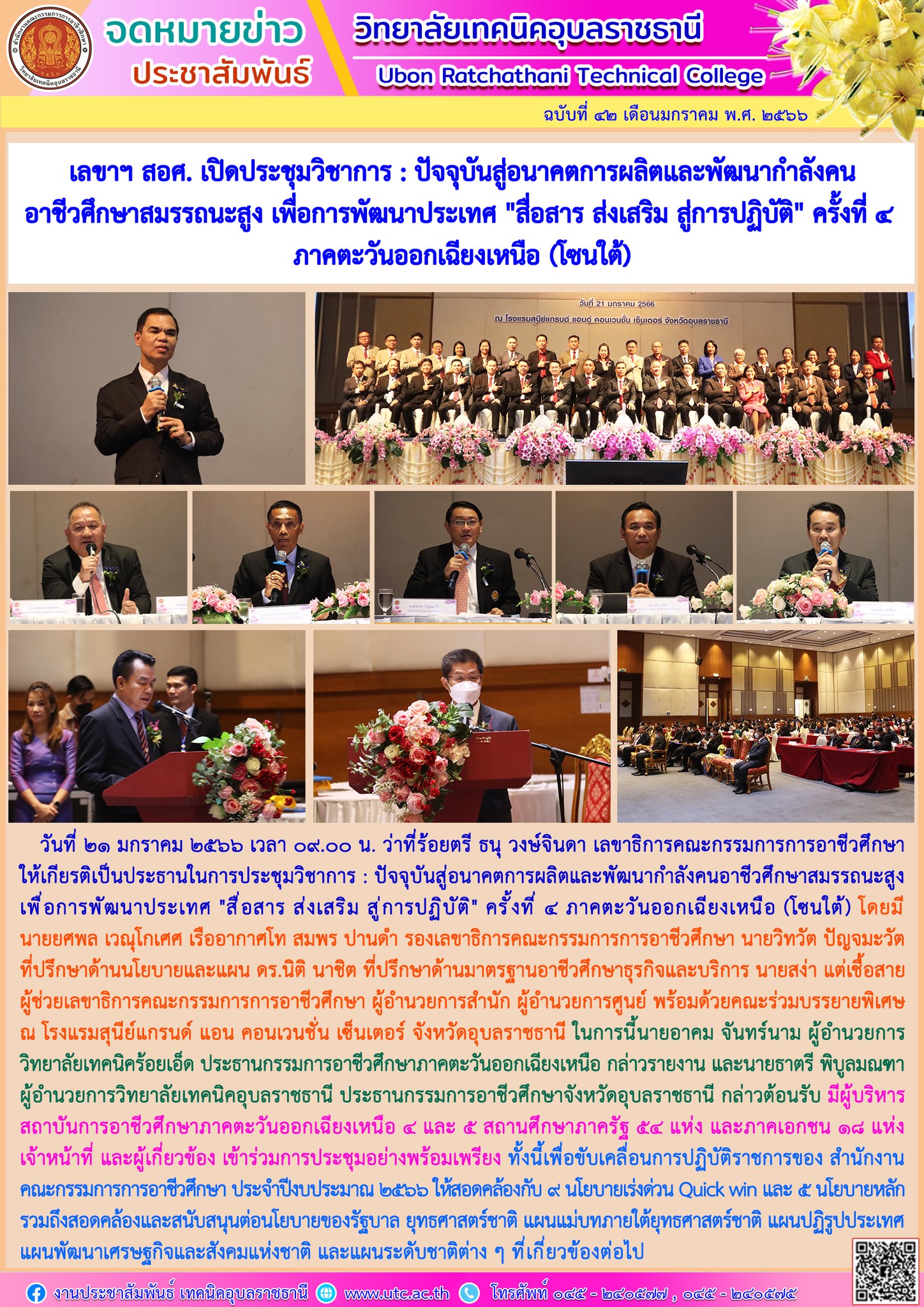 วันที่ ๒๕ มกราคม ๒๕๖๖ เวลา ๐๙.๐๐ น. นายลิขิต พลเหลา ผู้อำนวยการสถาบันการอาชีวศึกษาภาคตะวันออกเฉียงเหนือ ๔ ให้เกียรติ (เพิ่มเติม…)