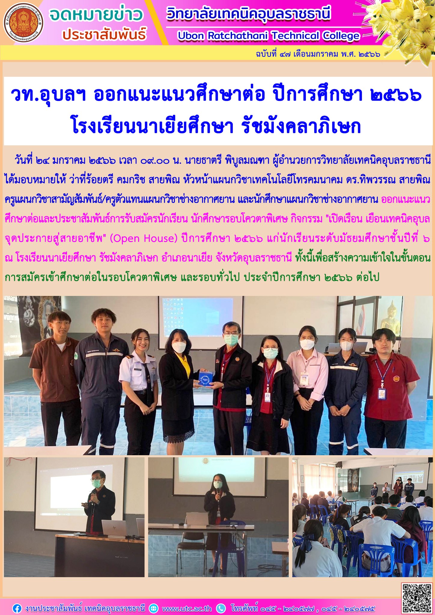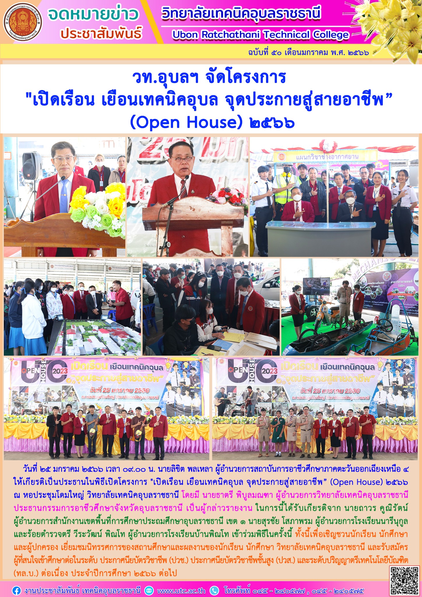 วท.อุบลฯ “เปิดเรือน เยือนเทคนิคอุบล จุดประกายสู่สายอาชีพ” (Open House) ๒๕๖