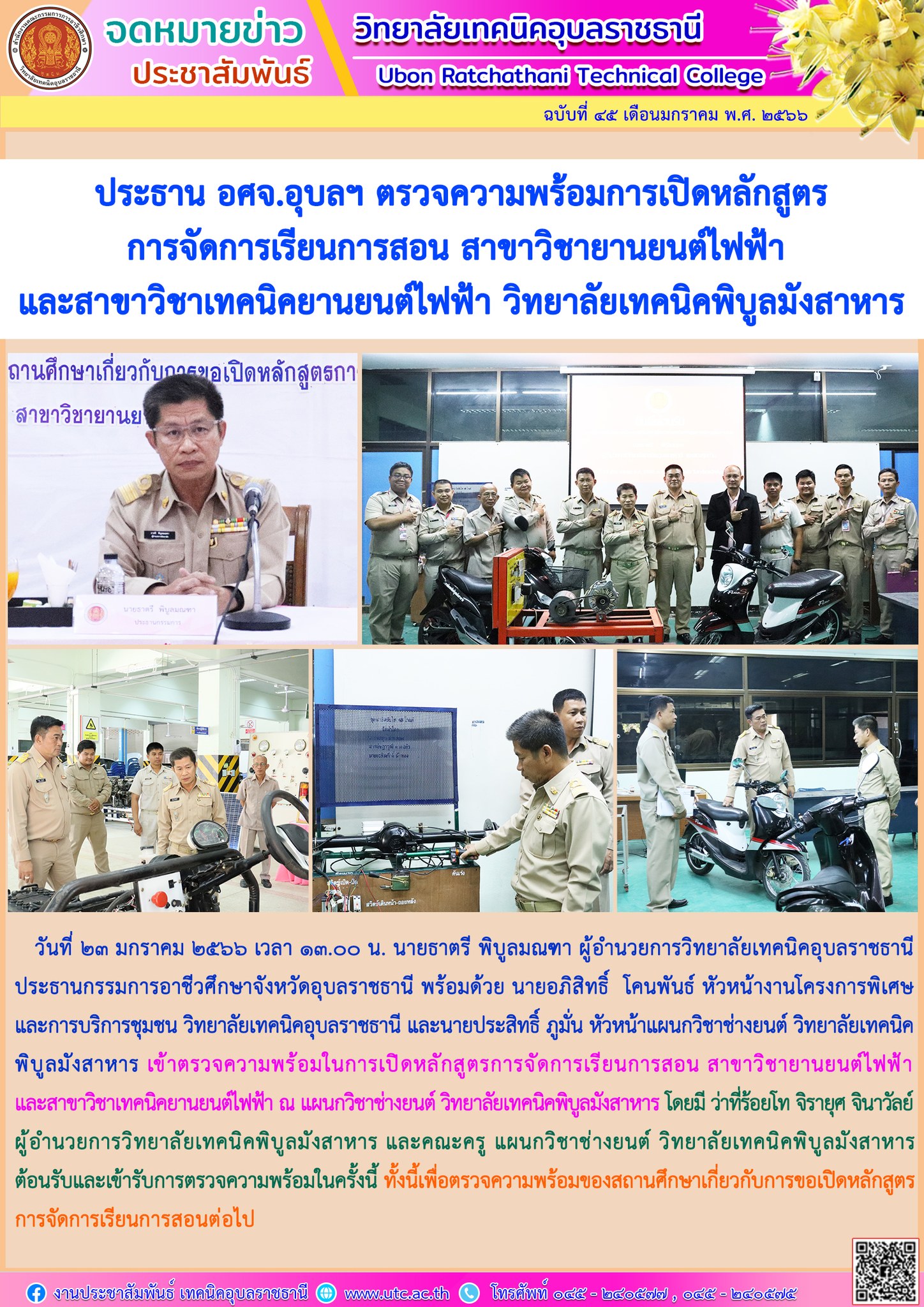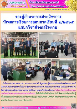 วันที่ ๒๔ มกราคม ๒๕๖๖ เวลา ๐๙.๐๐ น. นายธาตรี พิบูลมณฑา ผู้อำนวยการวิทยาลัยเทคนิคอุบลราชธานี ได้มอบหมายให้ ว่าที่ร้อยตรี (เพิ่มเติม…)