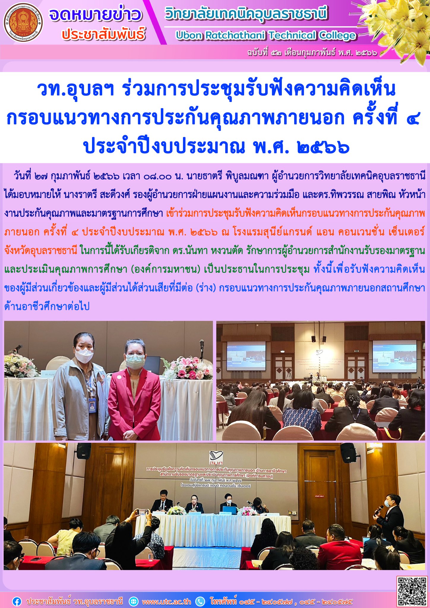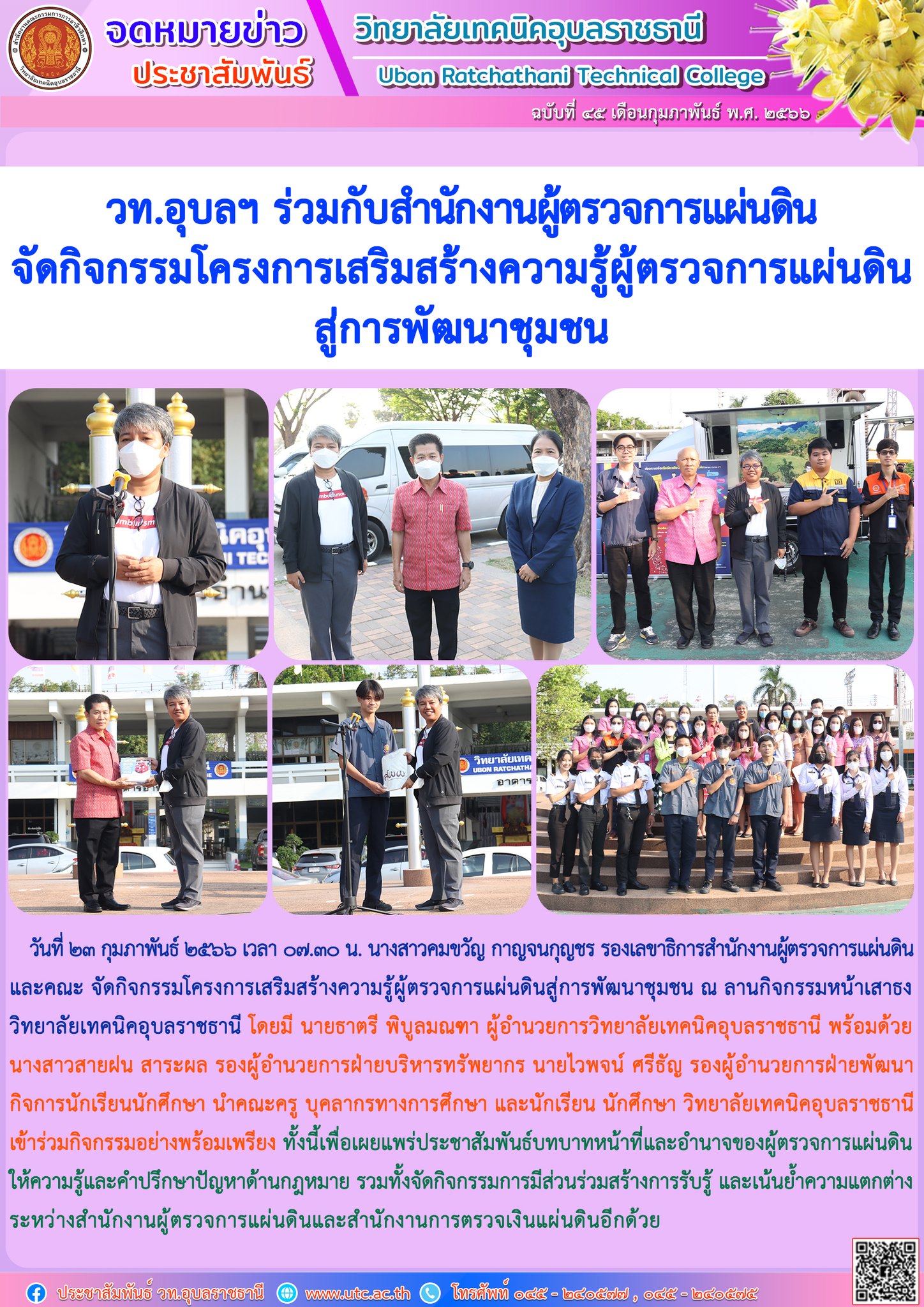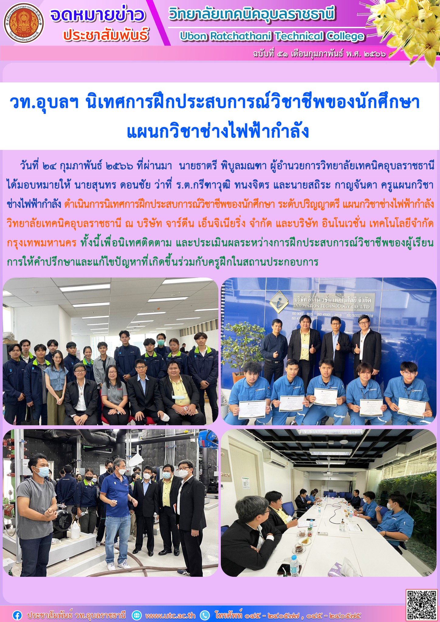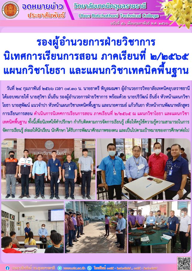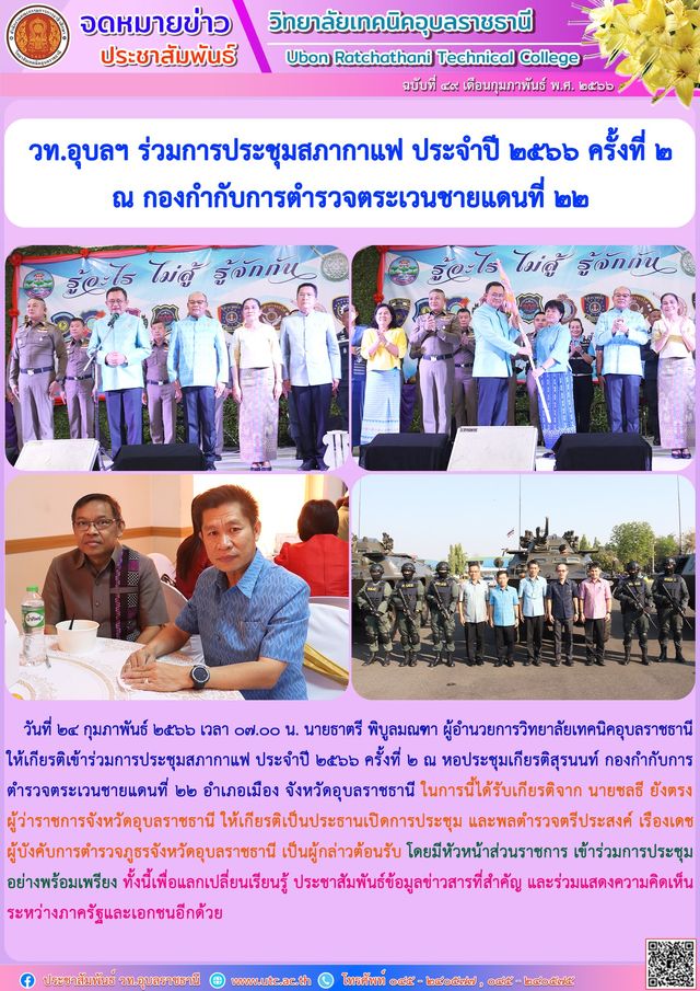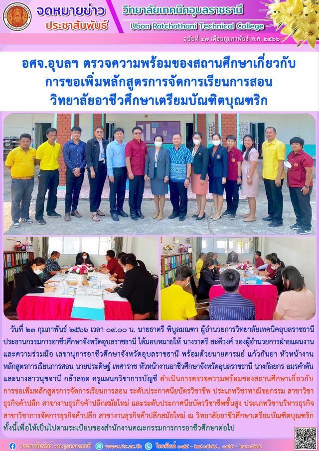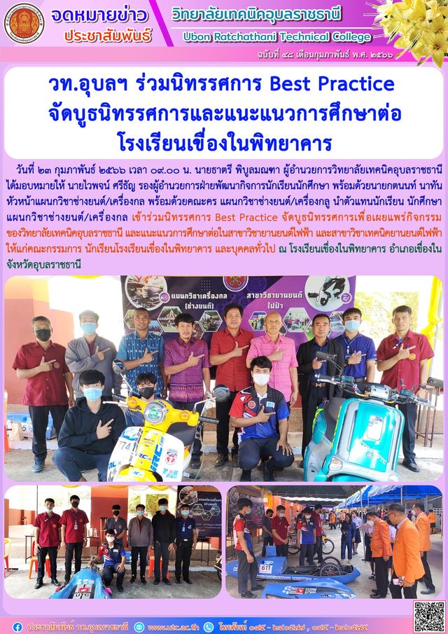 วันที่ ๒๔ กุมภาพันธ์ ๒๕๖๖ ที่ผ่านมา นายธาตรี พิบูลมณฑา ผู้อำนวยการวิทยาลัยเทคนิคอุบลราชธานี (เพิ่มเติม…)