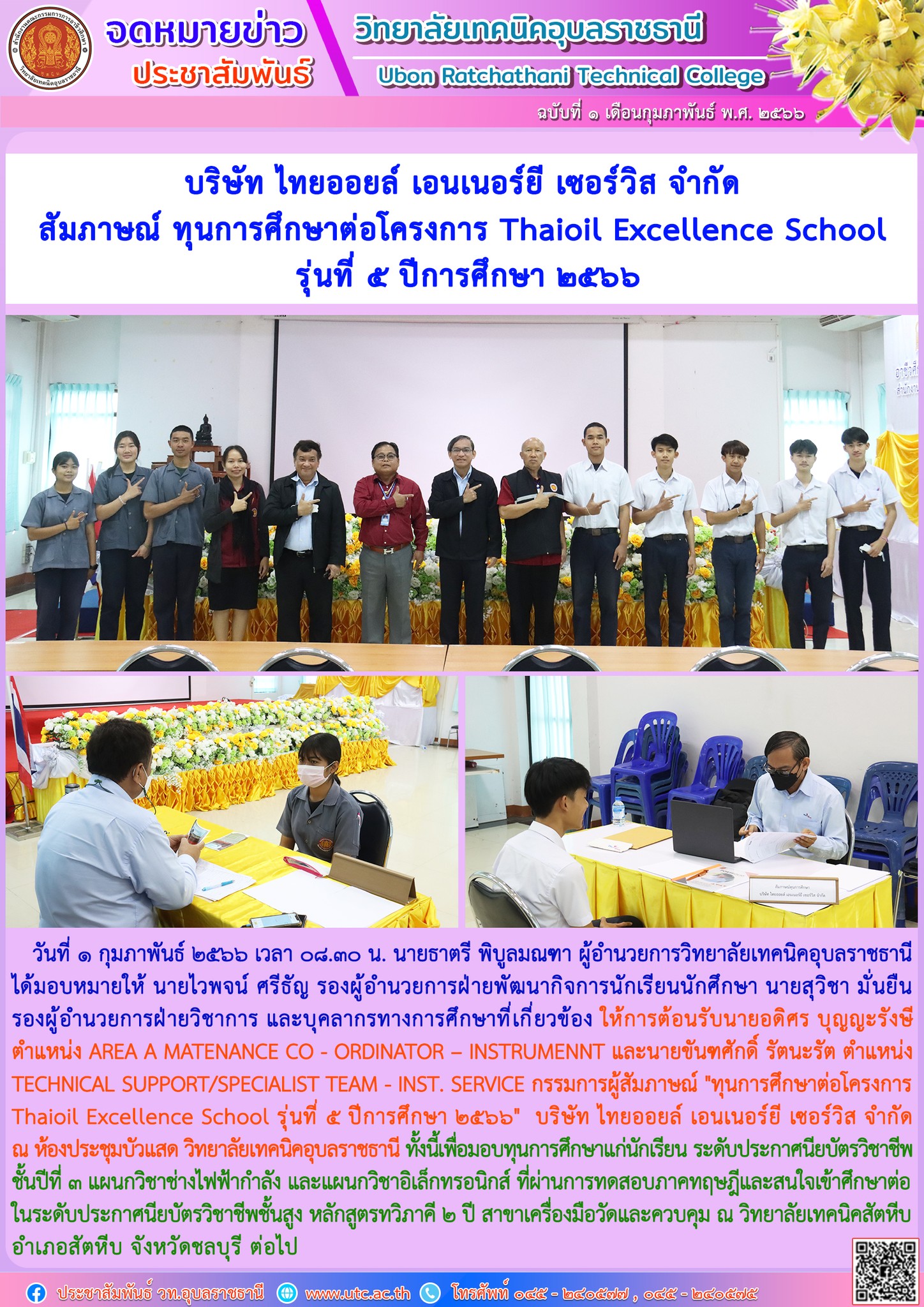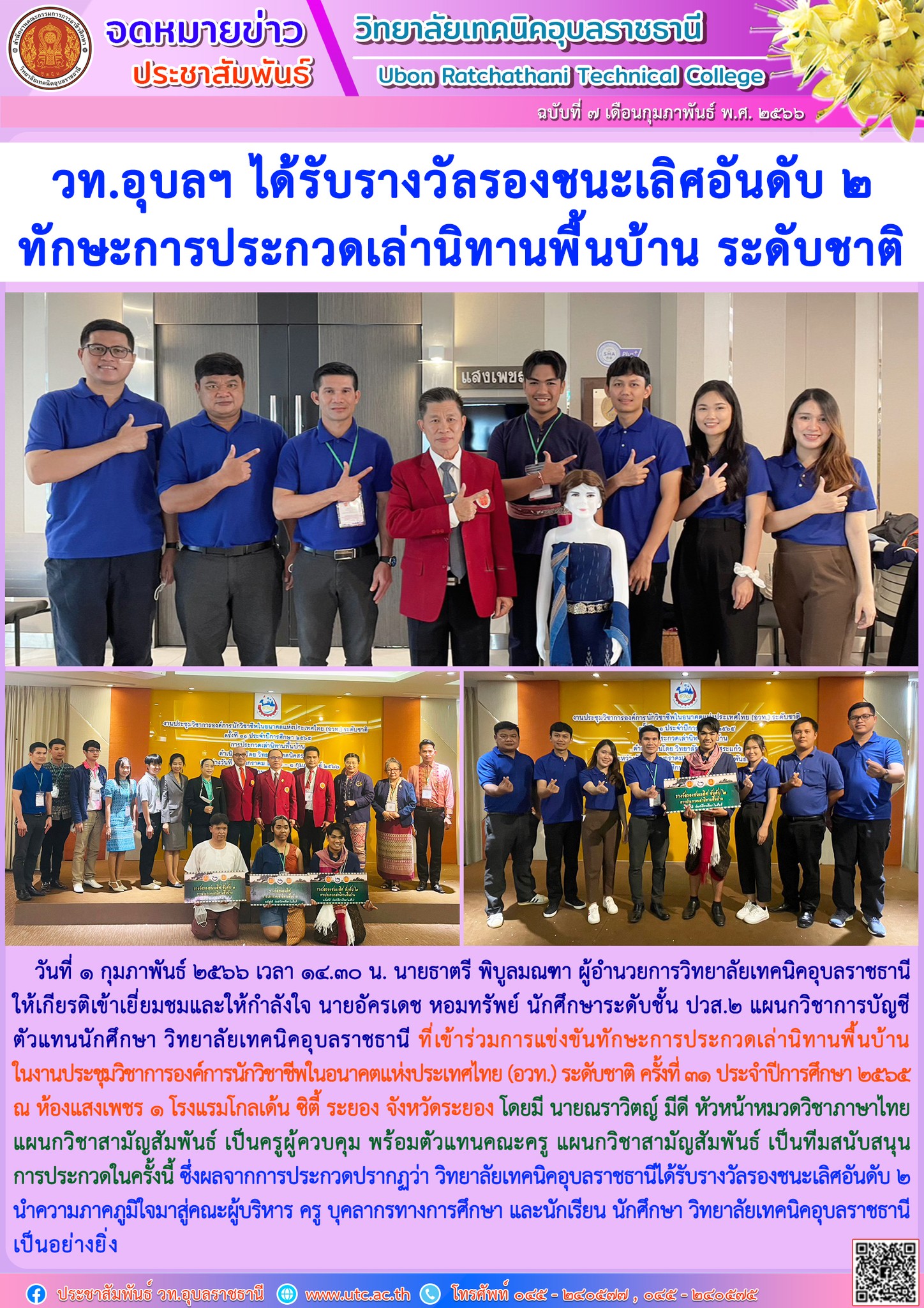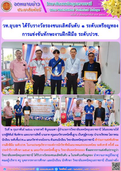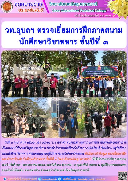 วันที่ ๒ กุมภาพันธ์ ๒๕๖๖ นายธาตรี พิบูลมณฑา ผู้อำนวยการวิทยาลัยเทคนิคอุบลราชธานี ได้มอบหมายให้ นายฐิติพันธ์ พิมพ์ชาย (เพิ่มเติม…)