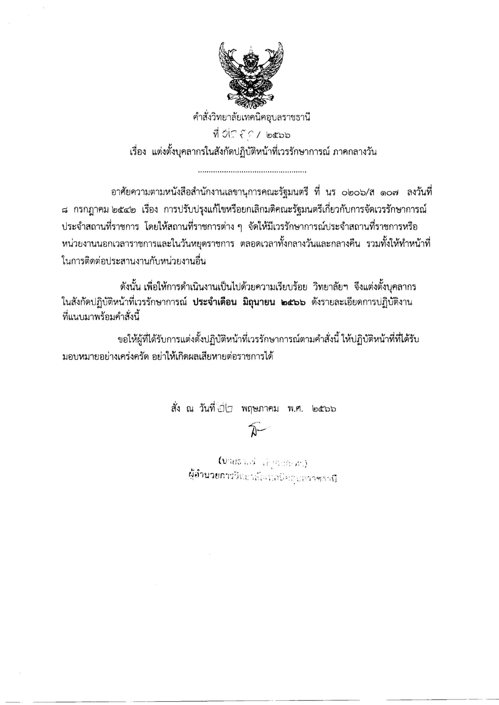 วันที่ ๒๙ พฤษภาคม ๒๕๖๖ เวลา ๐๘.๐๐ น. นายธาตรี พิบูลมณฑา ผู้อำนวยการวิทยาลัยเทคนิคอุบลราชธานี ปฏิบัติหน้าที่ผู้อำนวยการ (เพิ่มเติม…)