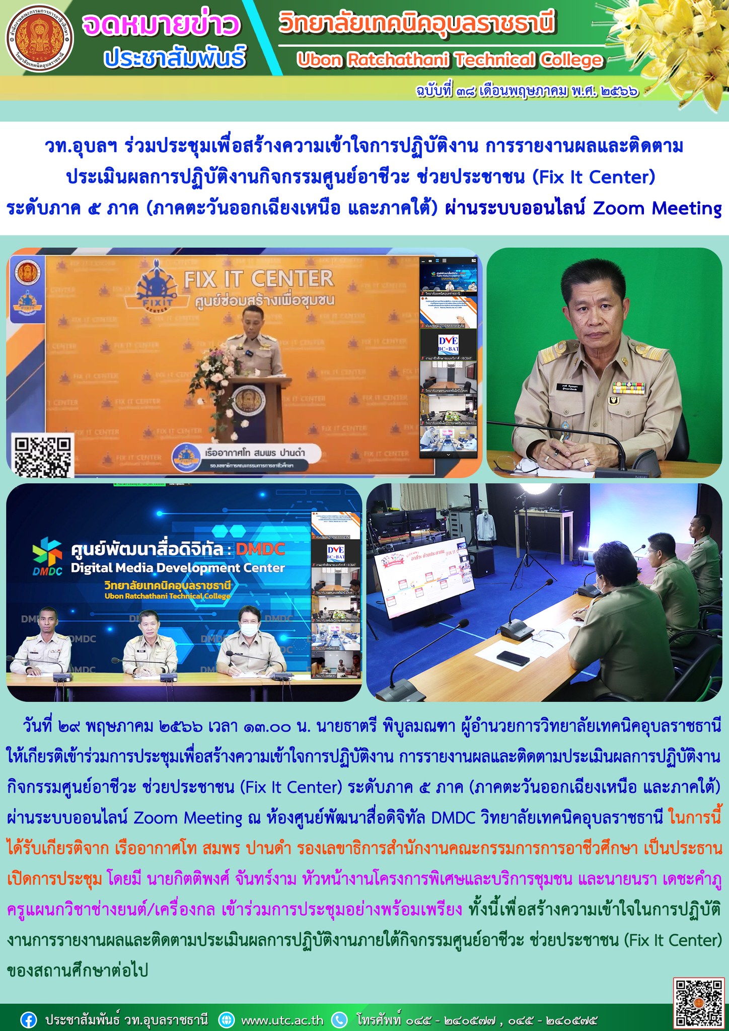 วันที่ ๒๙ พฤษภาคม ๒๕๖๖ เวลา ๑๓.๐๐ น. นายธาตรี พิบูลมณฑา ผู้อำนวยการวิทยาลัยเทคนิคอุบลราชธานี ให้เกียรติเข้าร่วมการประชุม (เพิ่มเติม…)