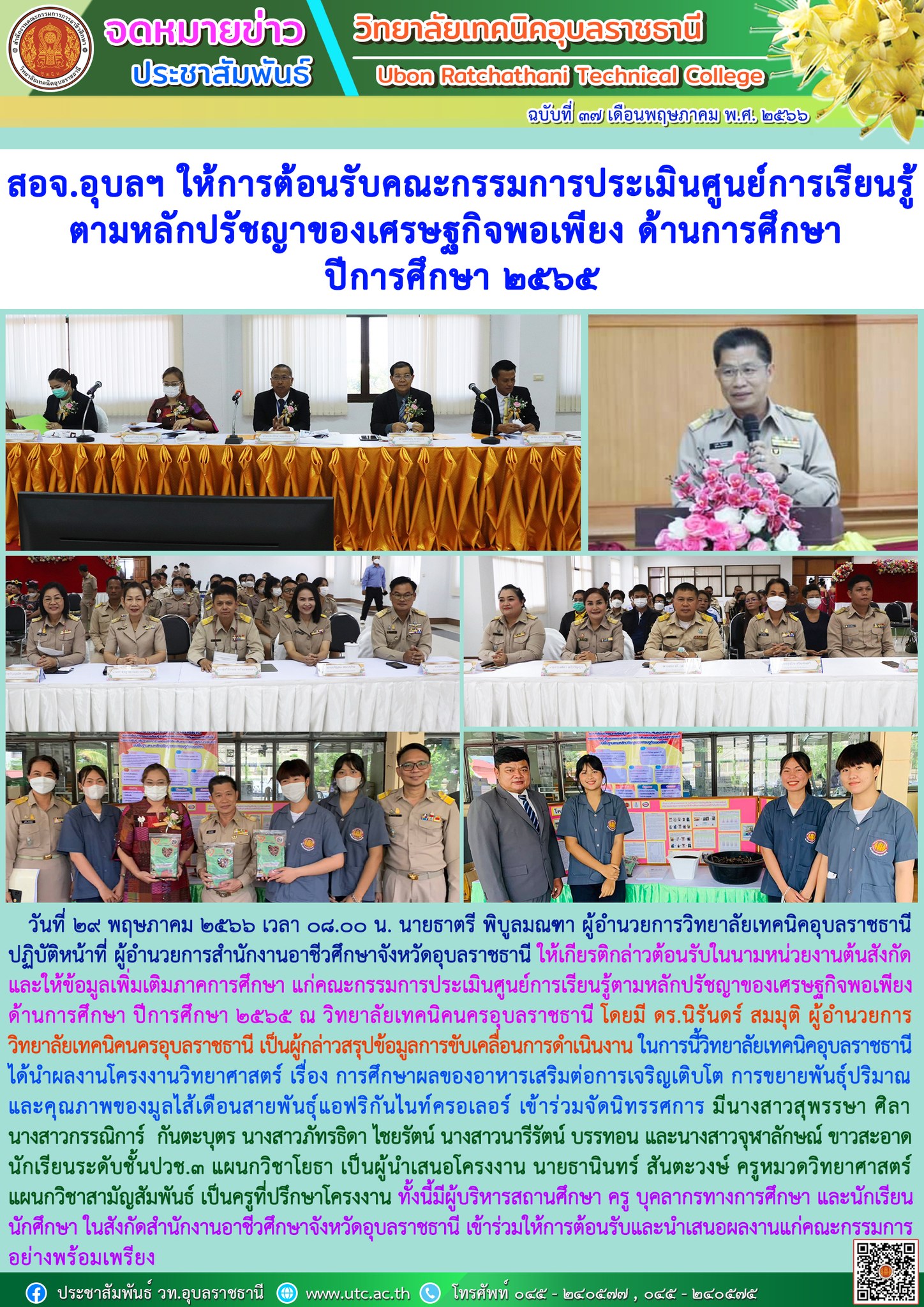 สอจ.อุบลฯ ให้การต้อนรับคณะกรรมการประเมินศูนย์การเรียนรู้ตามหลักปรัชญาของเศรษฐกิจพอเพียง ด้านการศึกษา ปีการศึกษา ๒๕๖๕