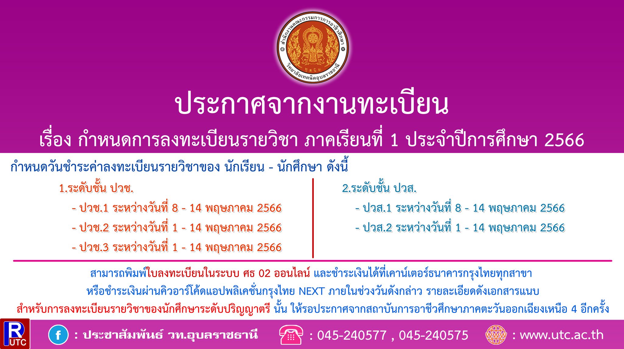 เรื่อง กำหนดการลงทะเบียนรายวิชา ภาคเรียนที่ 1 (เพิ่มเติม…)