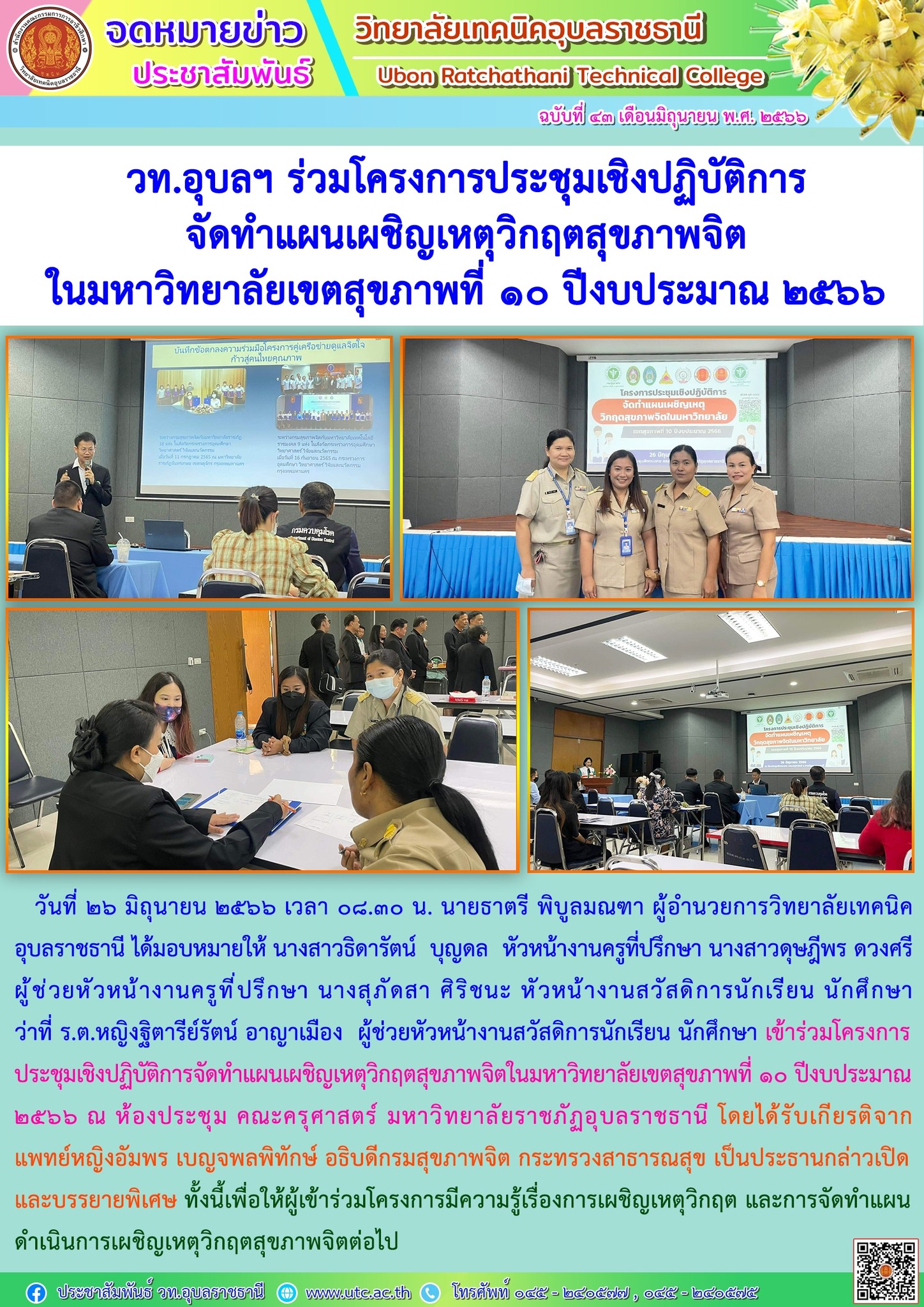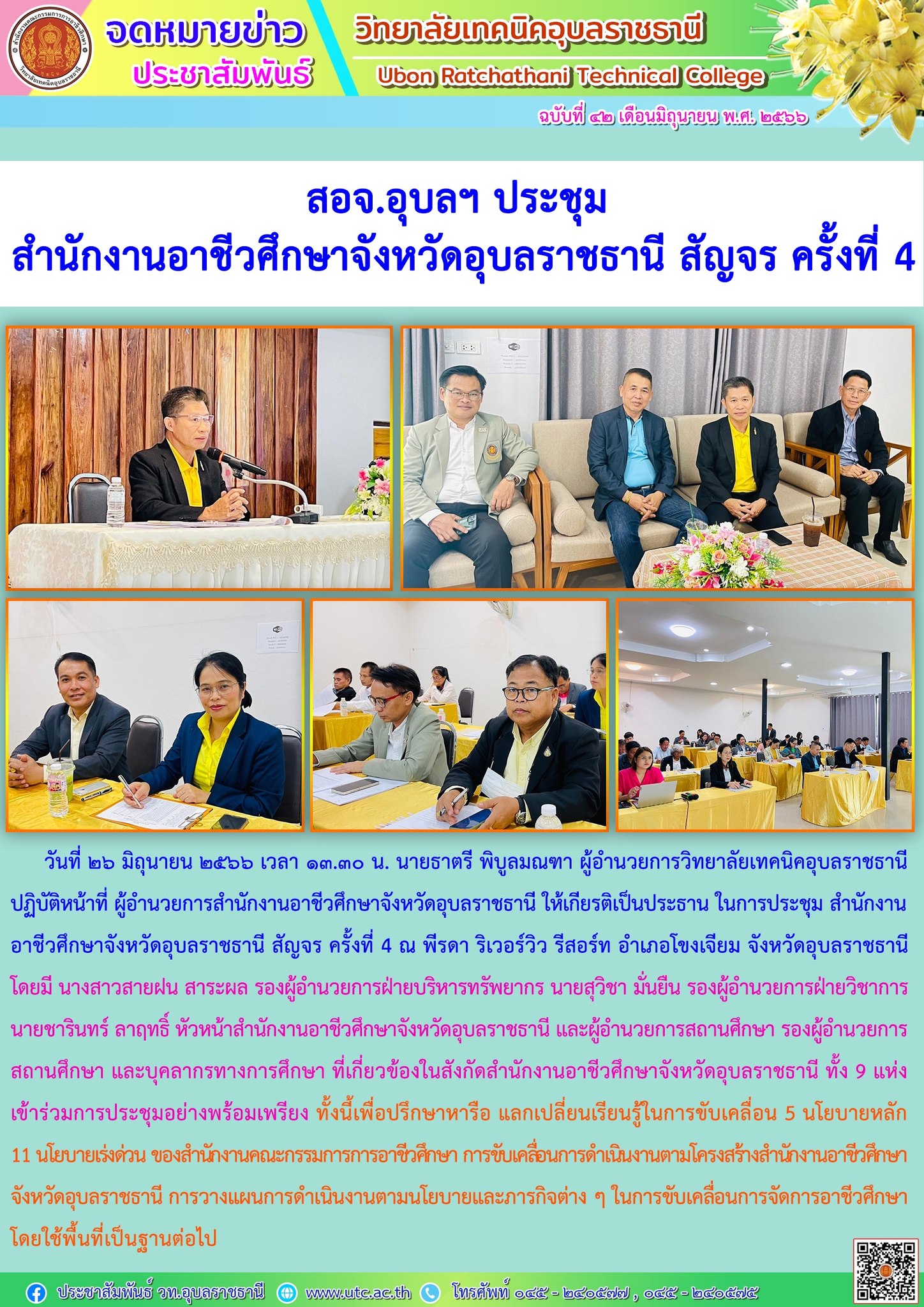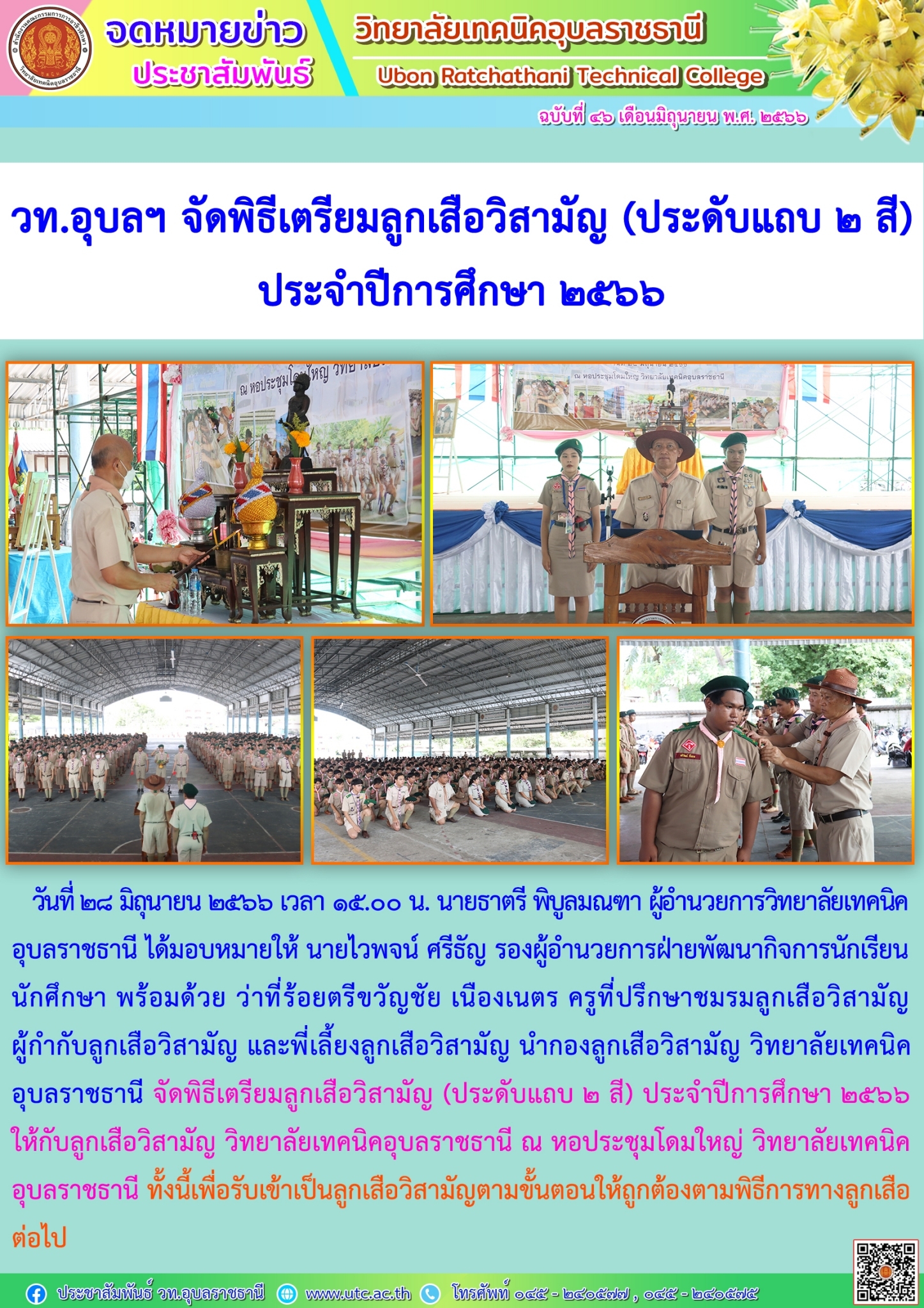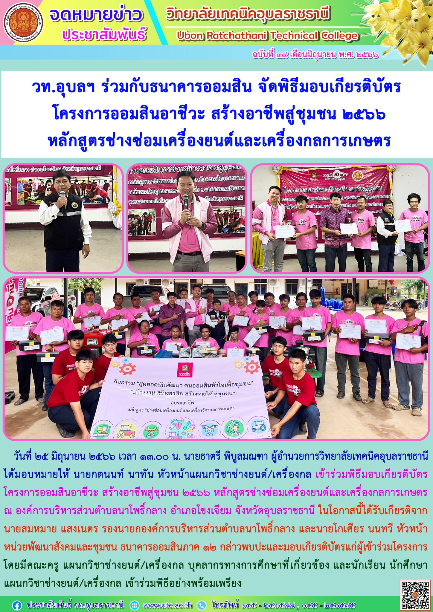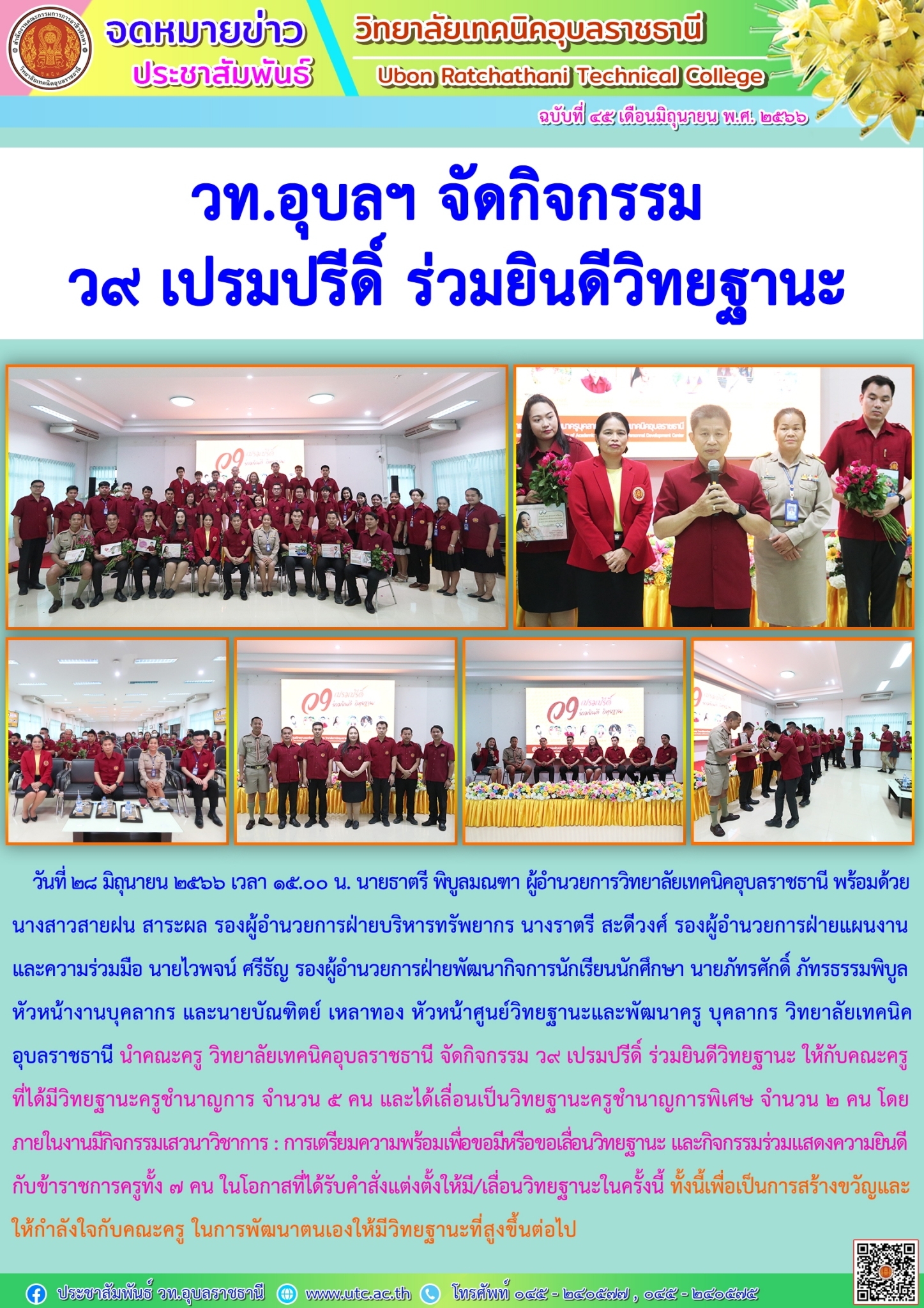 วันที่ ๒๘ มิถุนายน ๒๕๖๖ เวลา ๑๕.๐๐ น. นายธาตรี พิบูลมณฑา ผู้อำนวยการวิทยาลัยเทคนิคอุบลราชธานี ได้มอบหมายให้ นายทรงศักดิ์ สัตนาโค หัวหน้างานอาชีวศึกษาระบบทวิภาคี จัดอบรมชี้แจงการกรอกข้อมูลการฝึ (เพิ่มเติม…)
