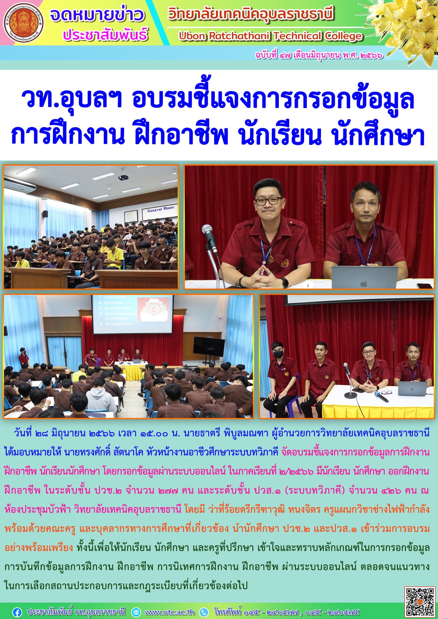 วท.อุบลฯ อบรมชี้แจ้งการกรอกข้อมูลการฝึกงาน ฝึกอาชีพ นักเรียน นักศึกษา