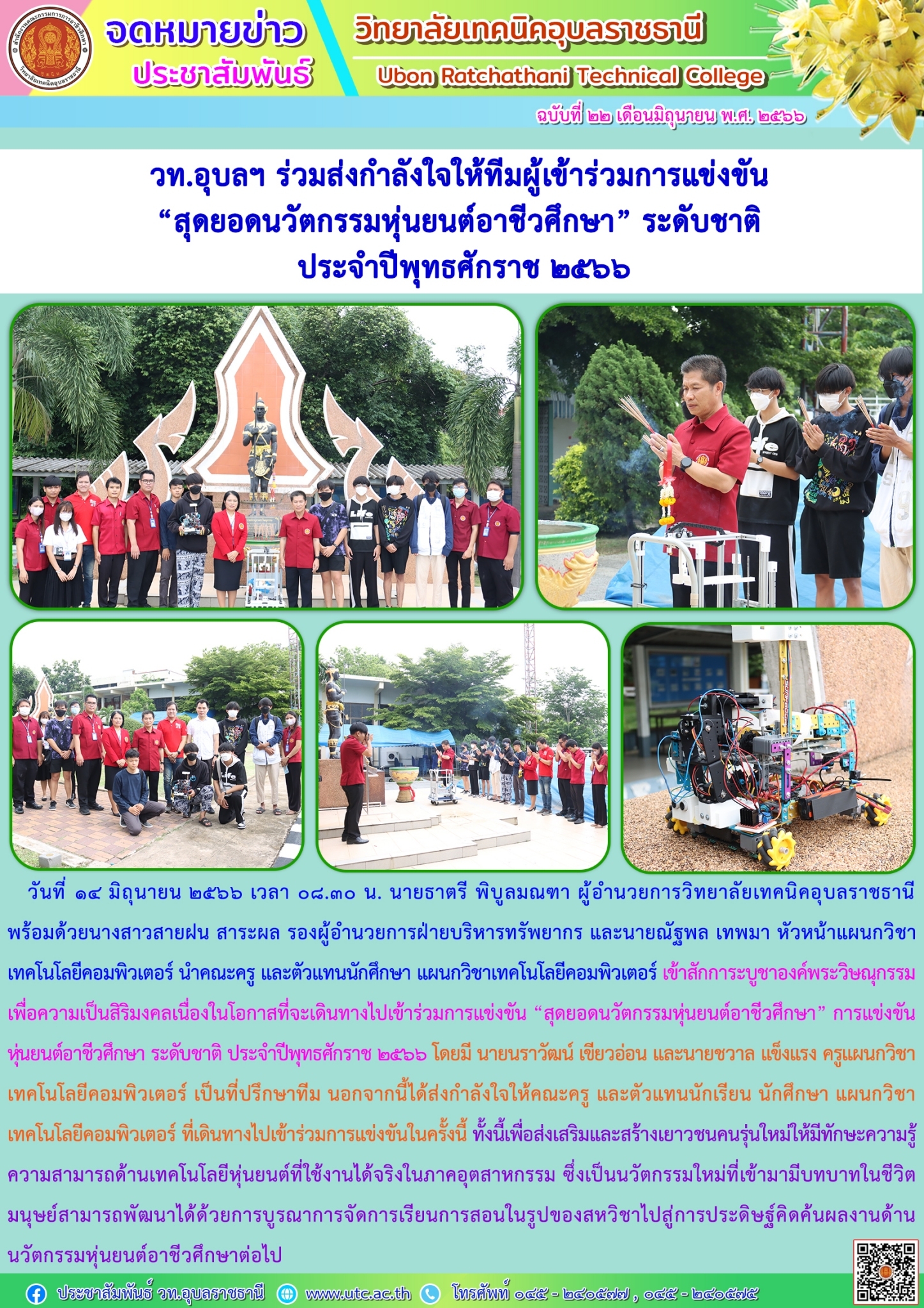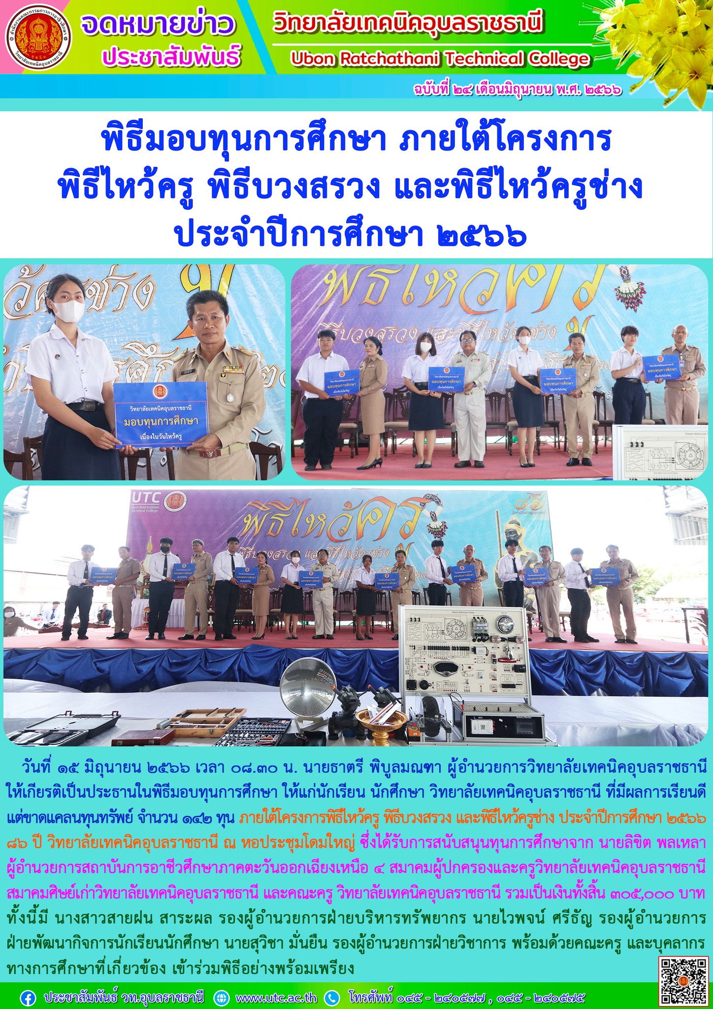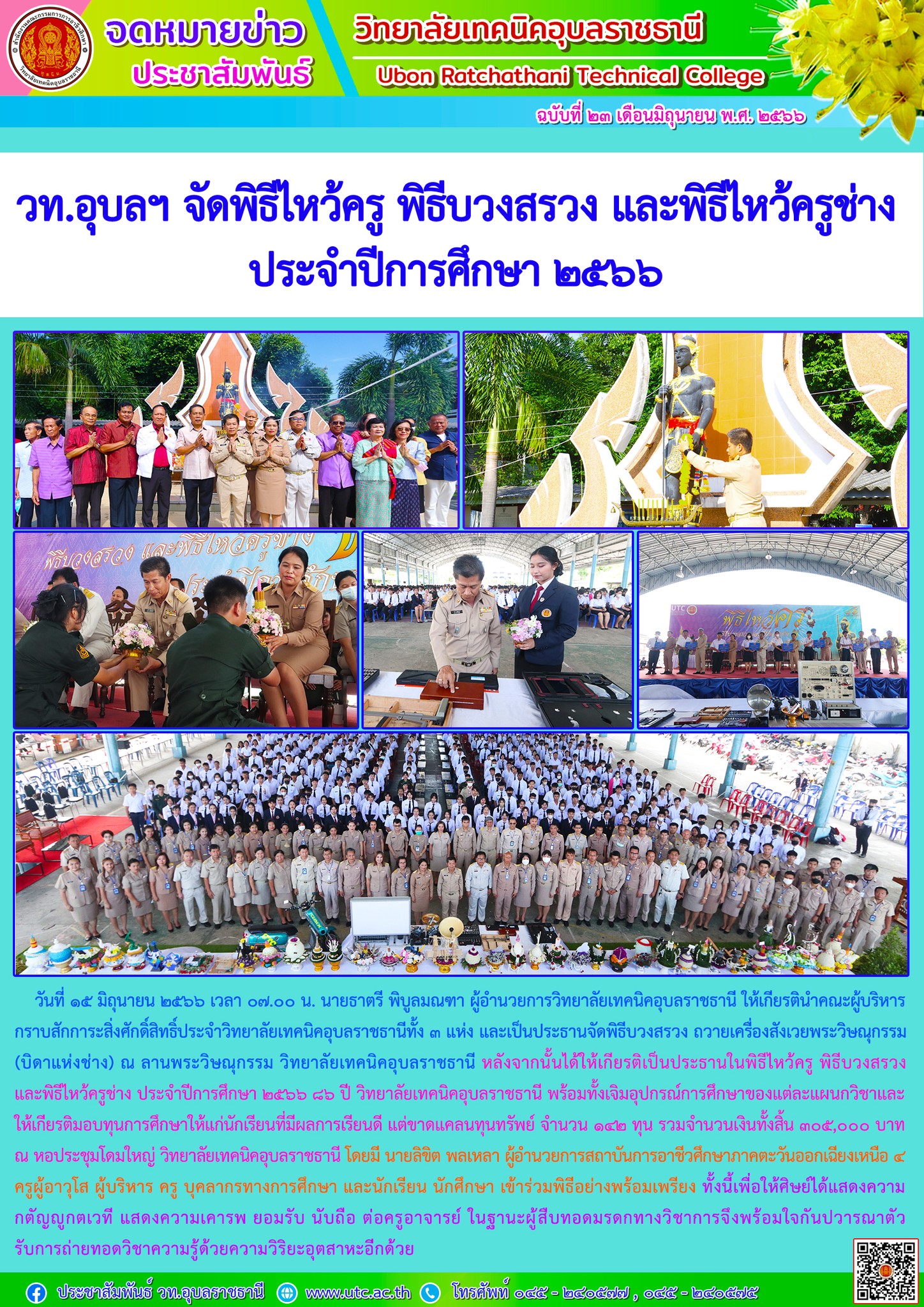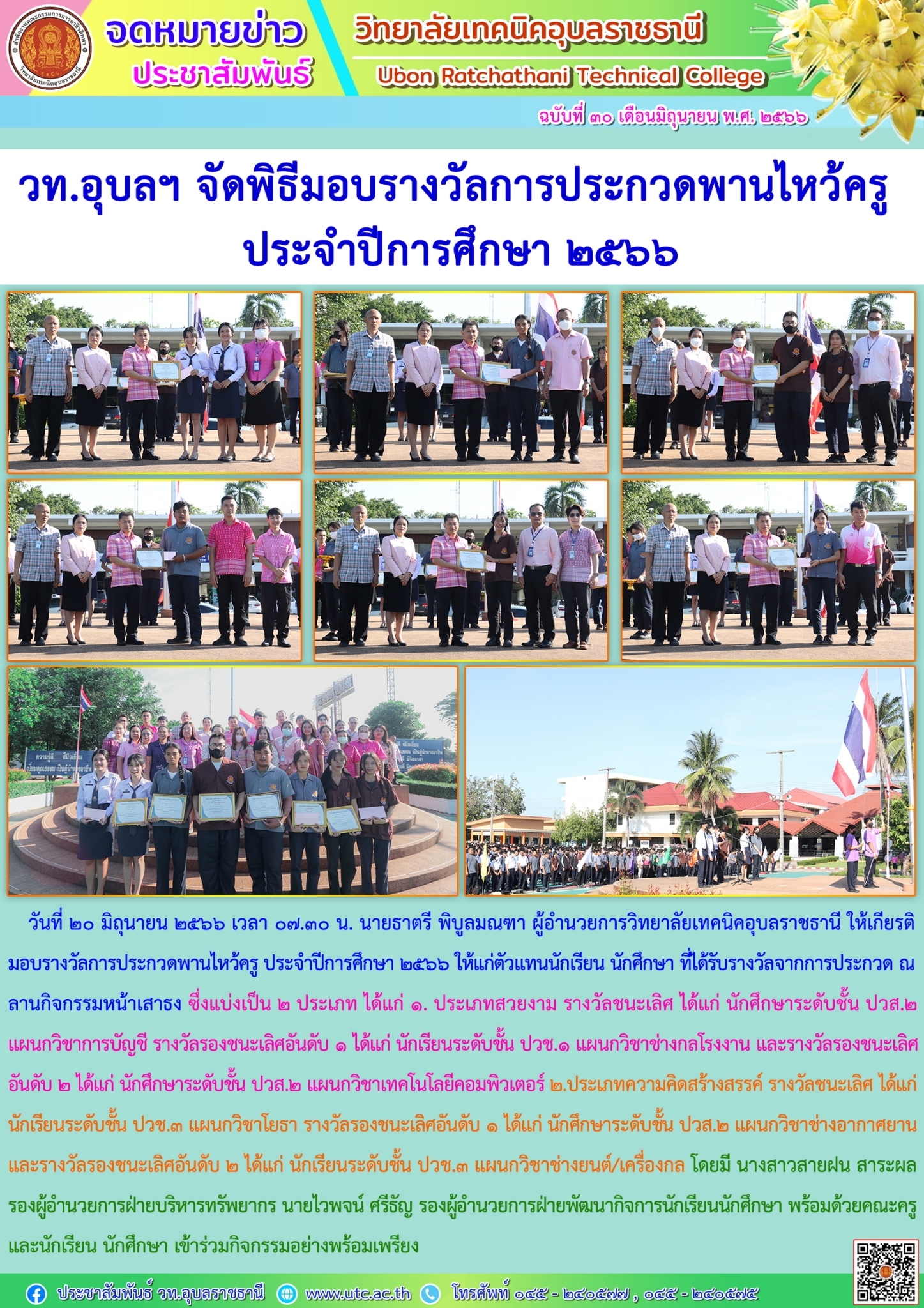 วท.อุบลฯ จัดพิธีมอบรางวัลการประกวดพานไหว้ครู ประจำปีการศึกษา ๒๕๖๖