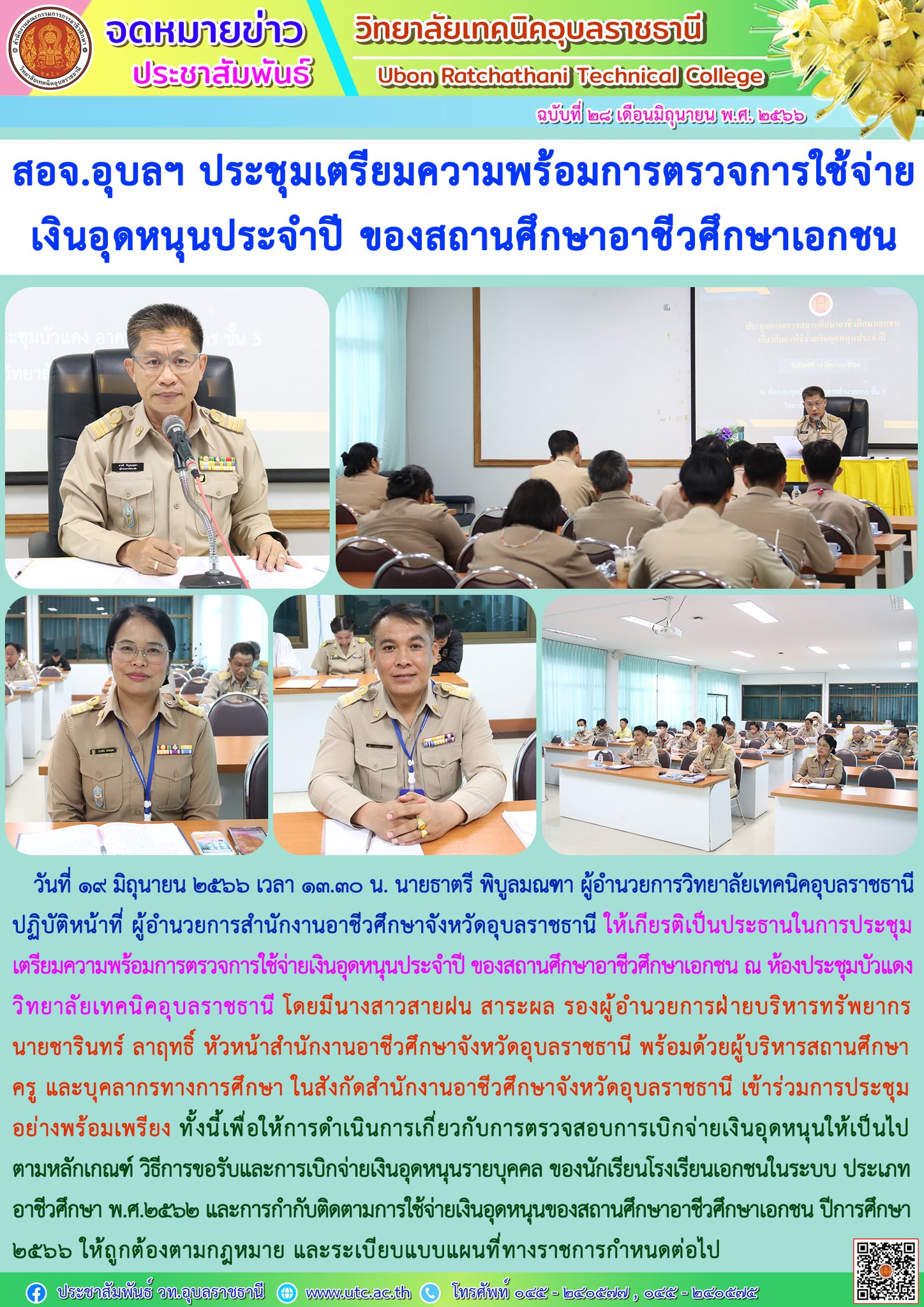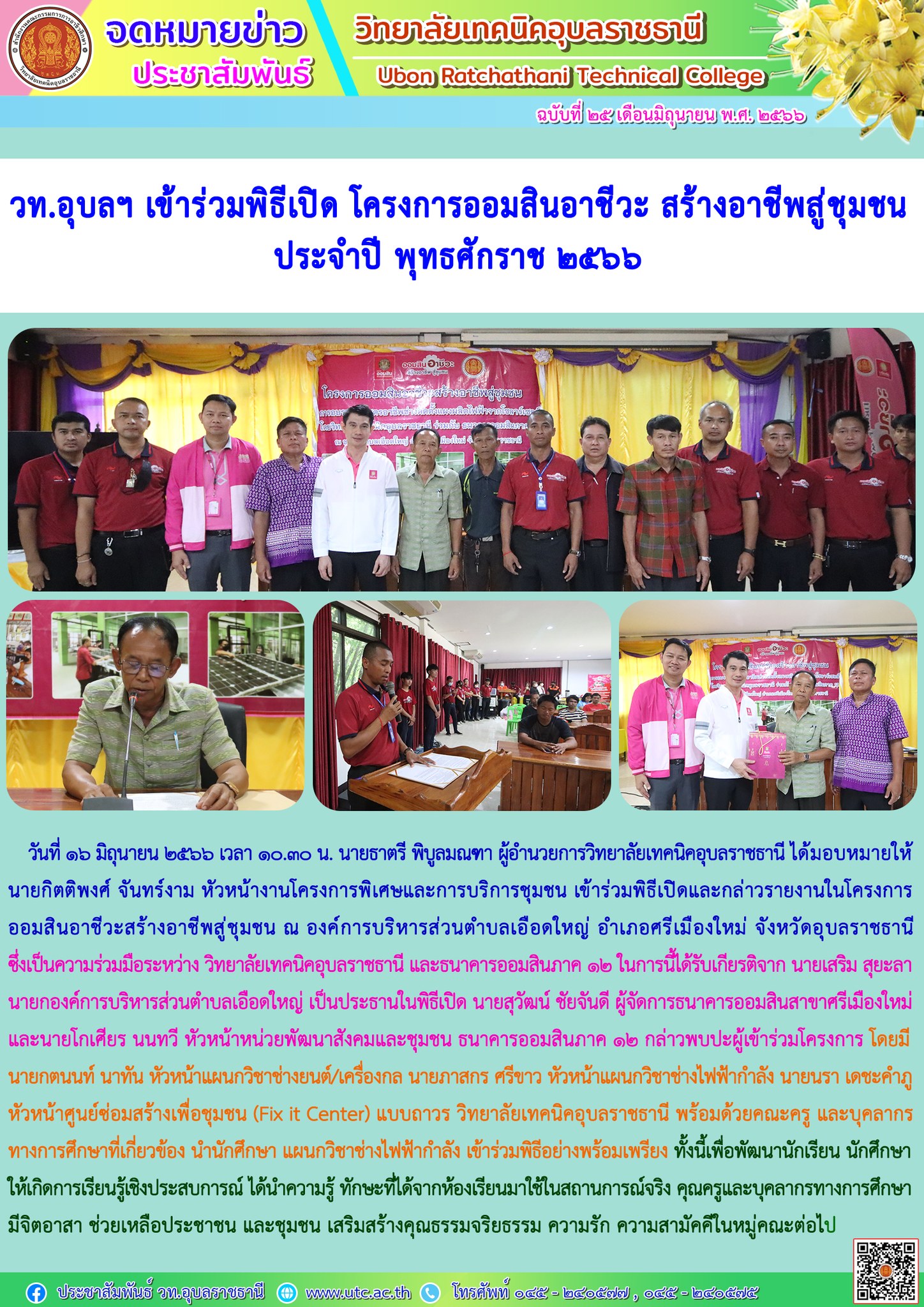 วันที่ ๒๐ มิถุนายน ๒๕๖๖ เวลา ๐๗.๓๐ น. นายธาตรี พิบูลมณฑา ผู้อำนวยการวิทยาลัยเทคนิคอุบลราชธานี ให้เกียรติมอบรางวัลการประกวดพานไหว้ครู ประจำปีการศึกษา ๒๕๖๖ ให้แก่ตัวแทนนักเรียน นักศึกษา ที่ได้รับ (เพิ่มเติม…)