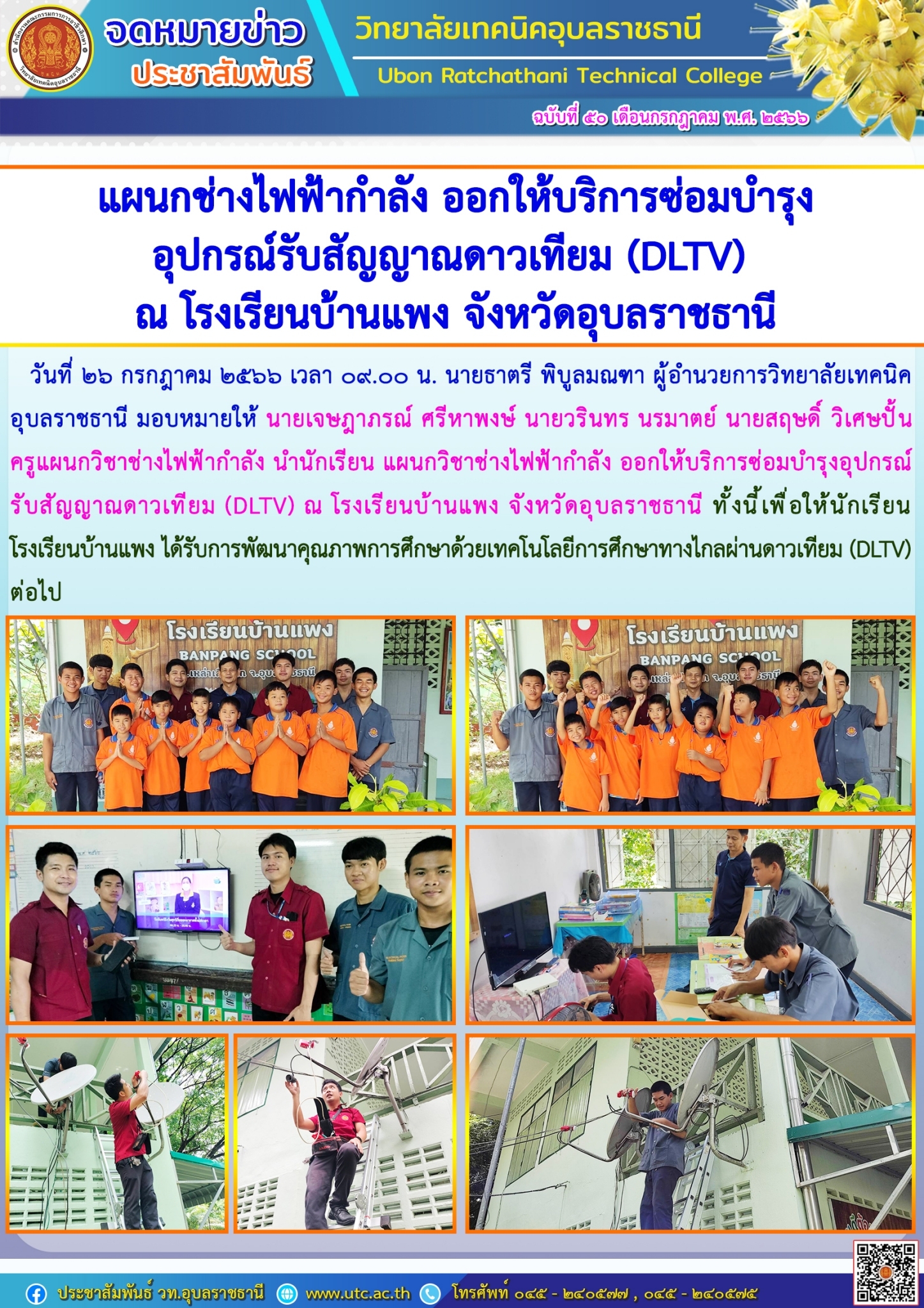 วันที่ ๒๖ กรกฎาคม ๒๕๖๖ เวลา ๐๘.๐๐ น. นายธาตรี พิบูลมณฑา ผู้อำนวยการวิทยาลัยเทคนิค (เพิ่มเติม…)