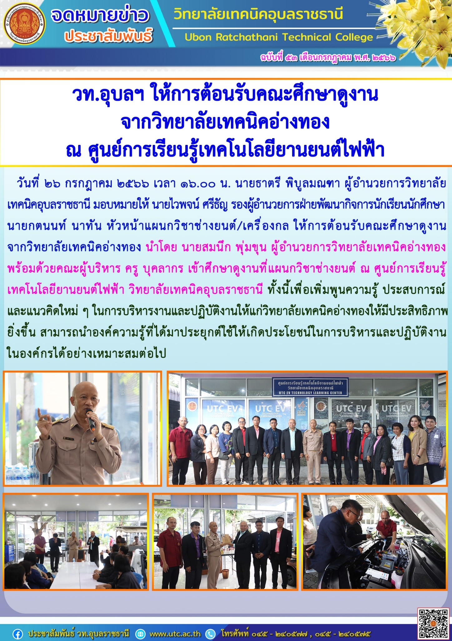วันที่ ๒๖ กรกฎาคม ๒๕๖๖ เวลา ๐๙.๐๐ น. นายธาตรี พิบูลมณฑา ผู้อำนวยการวิทยาลัยเทคนิคอุ (เพิ่มเติม…)