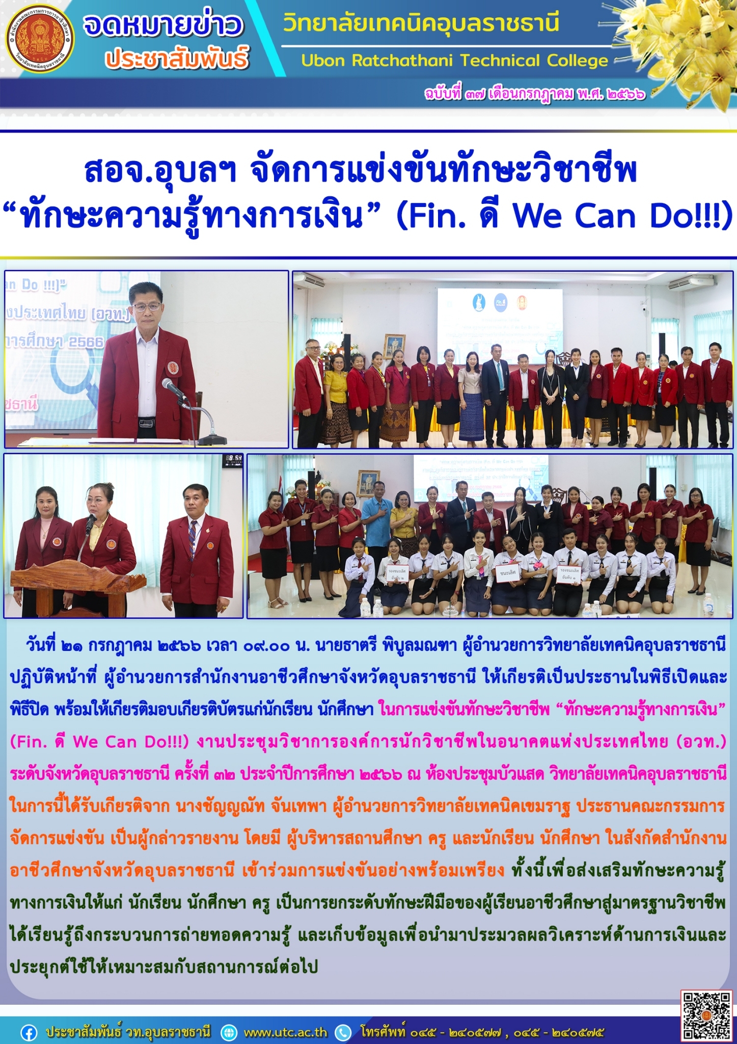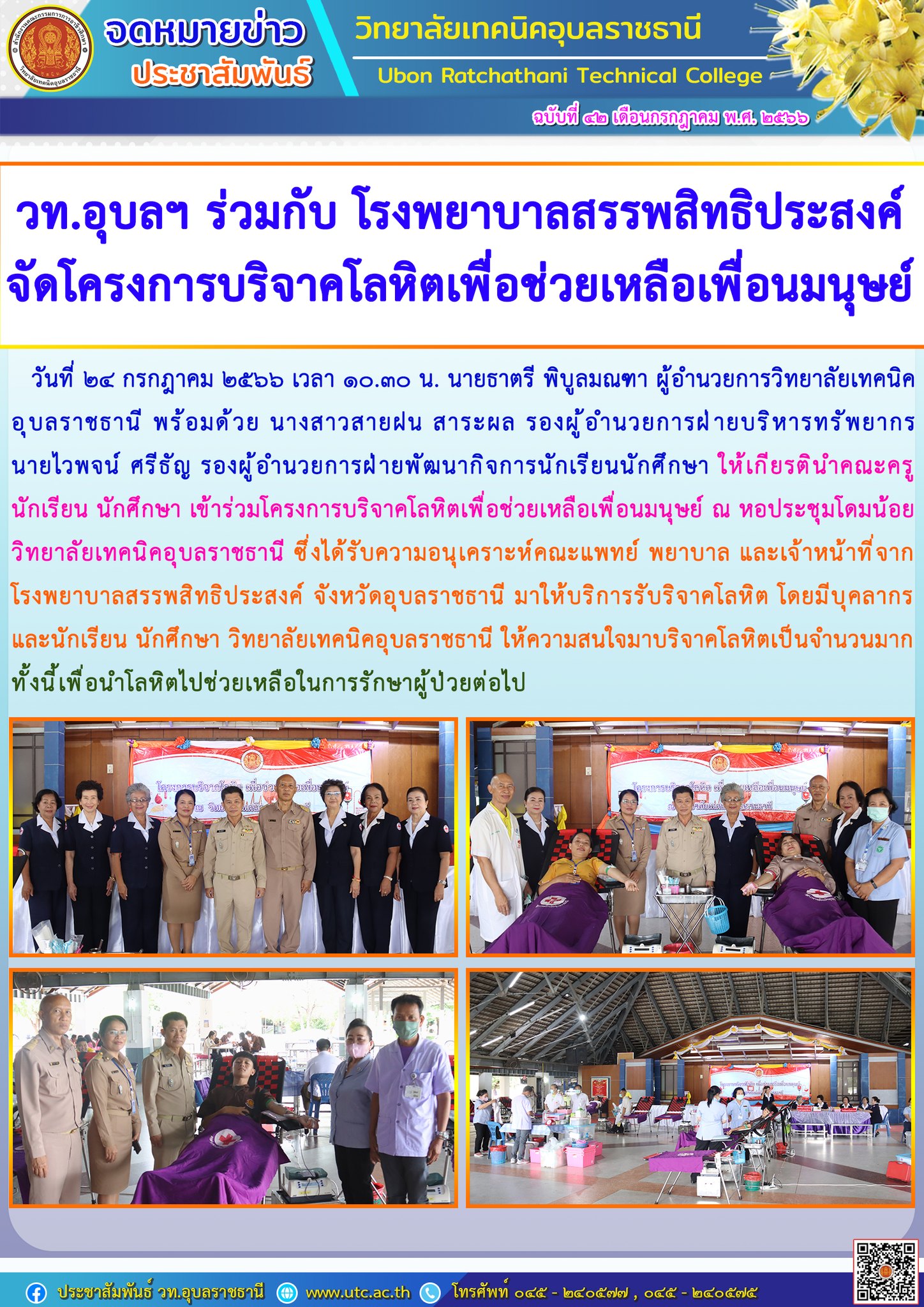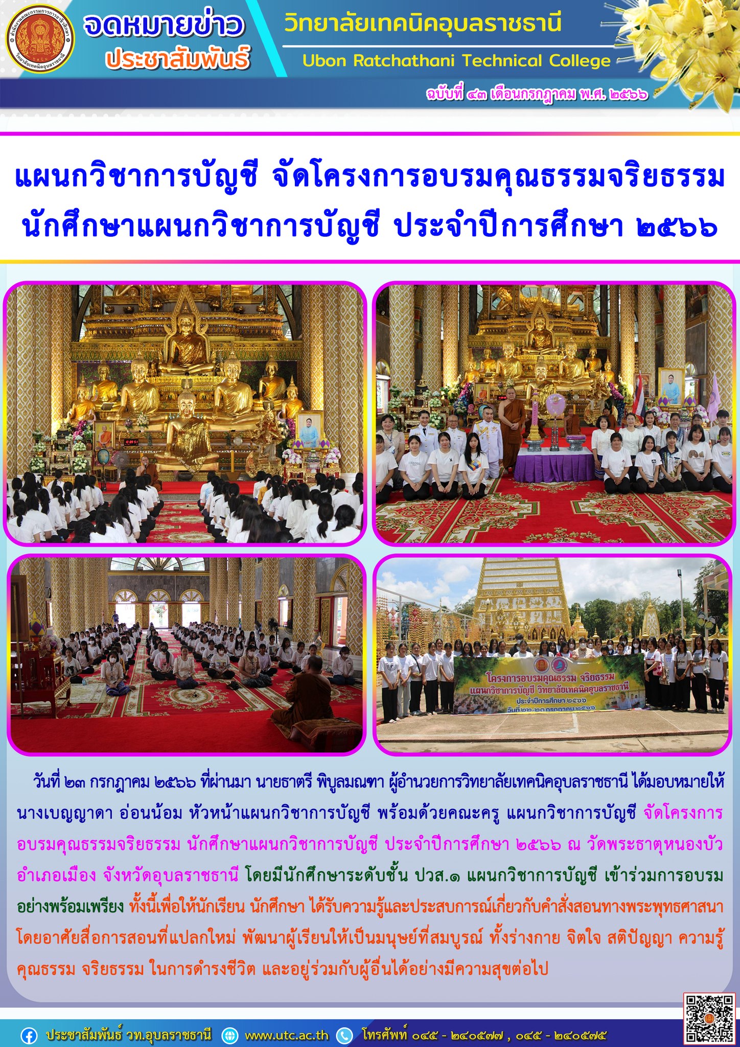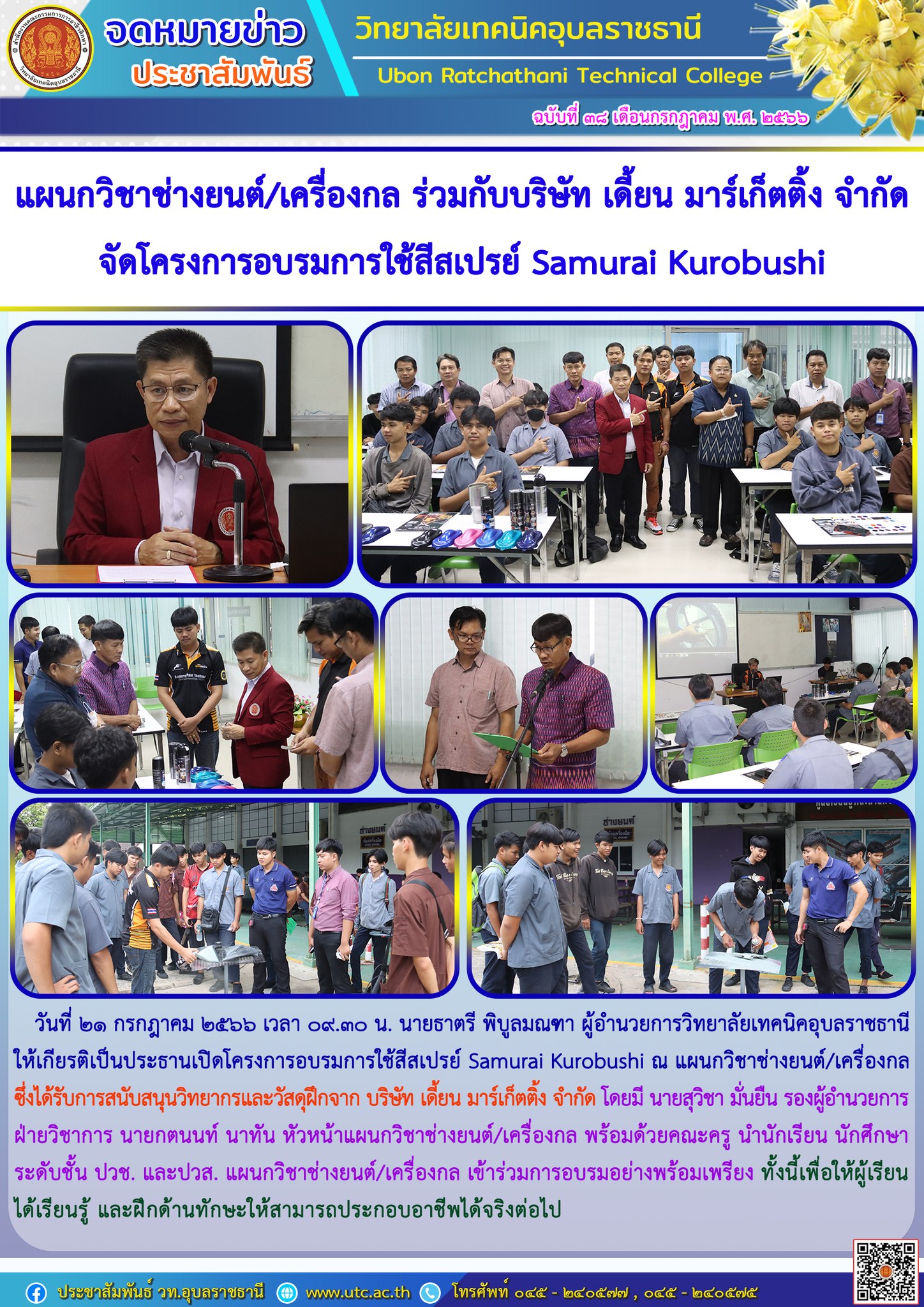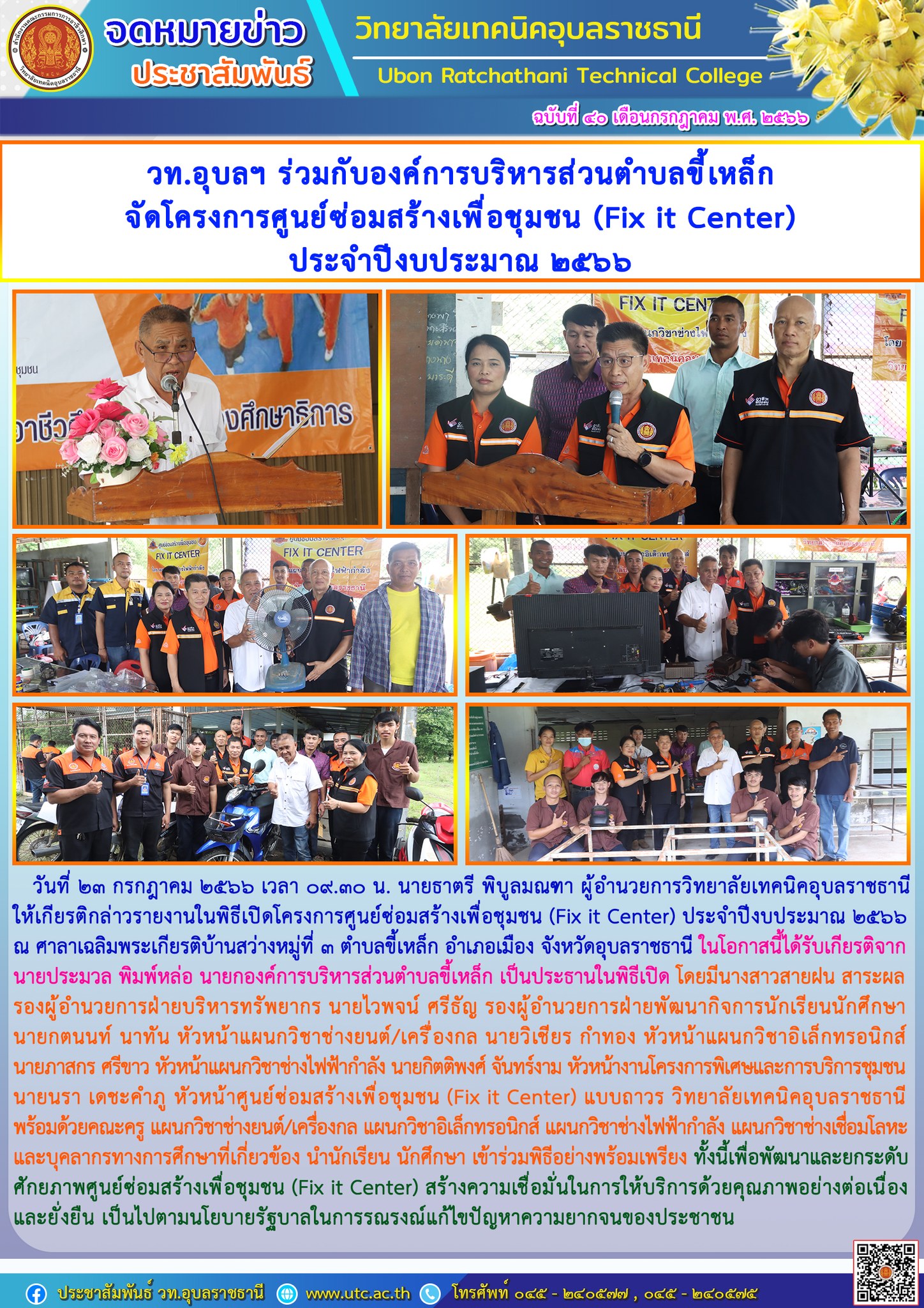 วันที่ ๒๕ กรกฎาคม ๒๕๖๖ เวลา ๐๘.๐๐ น. นายธาตรี พิบูลมณฑา ผู้อำนวยการวิทยาลัยเทคนิคอุบลราชธานีให้เกียรติเป็นประธานในพิธี (เพิ่มเติม…)