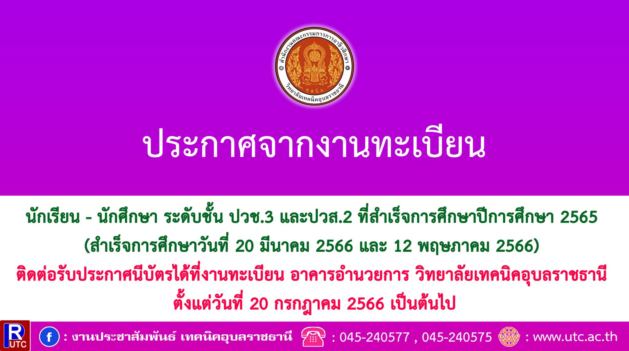 นักเรียน – นักศึกษา ระดับชั้น ปวช.3 และปวส.2 ที่สำเร็จการศึกษาปีการศึกษา 2565 (สำเร็จการศึกษาวันที่ 20 มีนาคม 2566 และ 12 พฤษภาคม 2566)