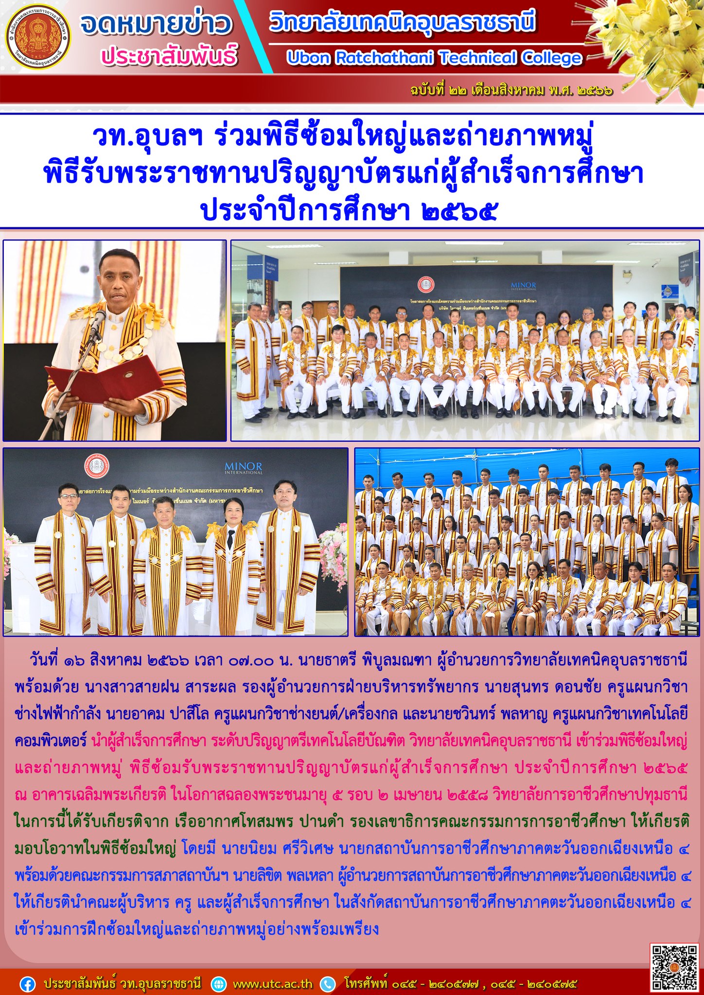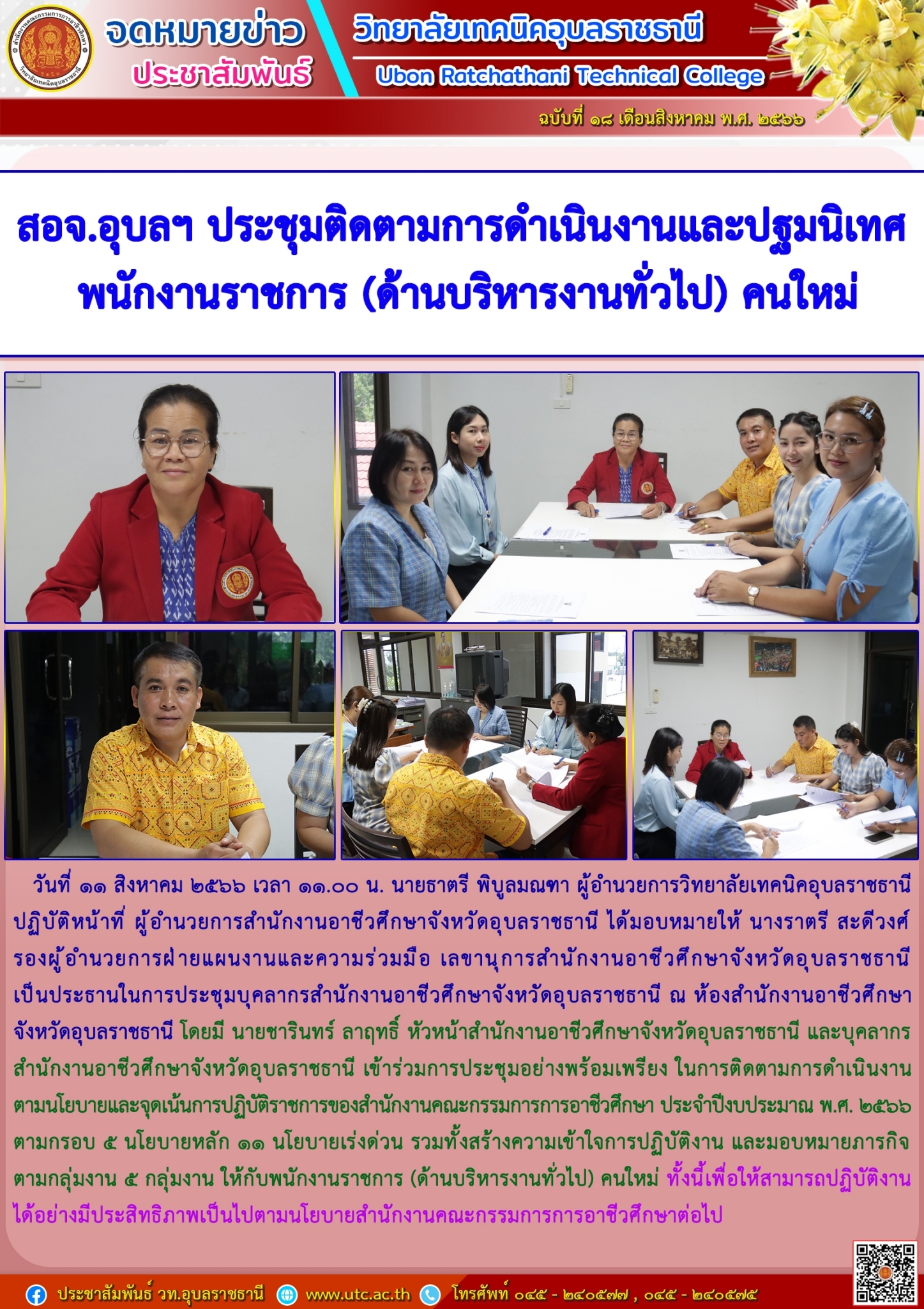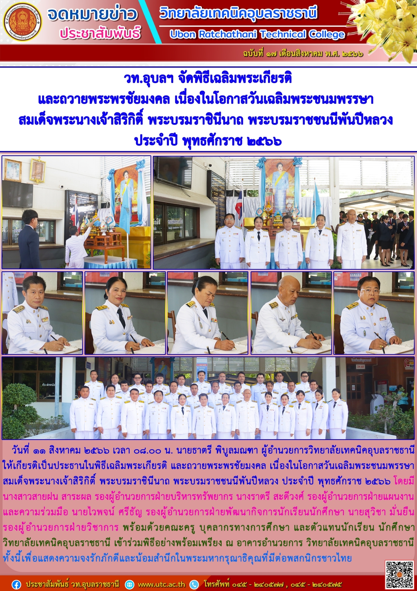 วันที่ ๑๒ สิงหาคม ๒๕๖๖ เวลา ๑๗.๐๐ น. นายธาตรี พิบูลมณฑา ผู้อำนวยการวิทยาลัยเทคนิคอุบลราชธานี (เพิ่มเติม…)