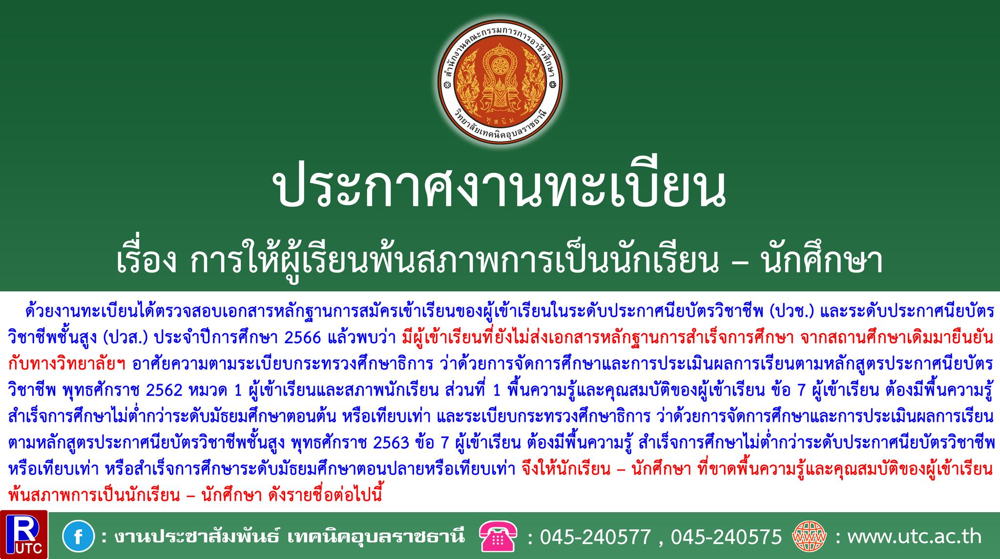 📣📣ประกาศงานทะเบียน📣📣