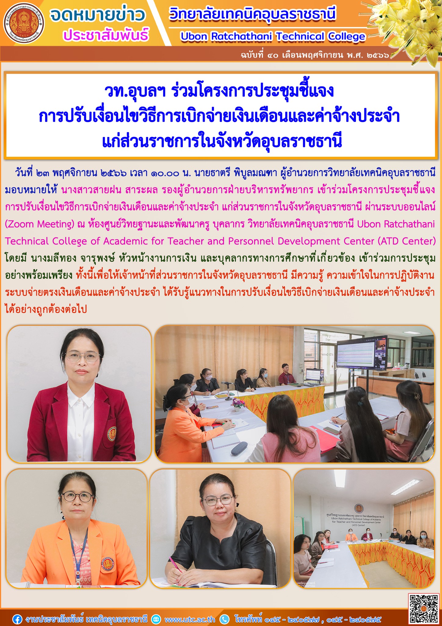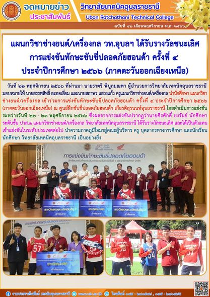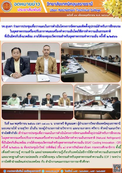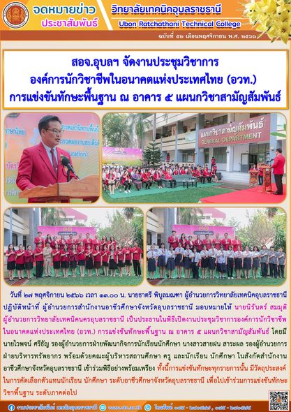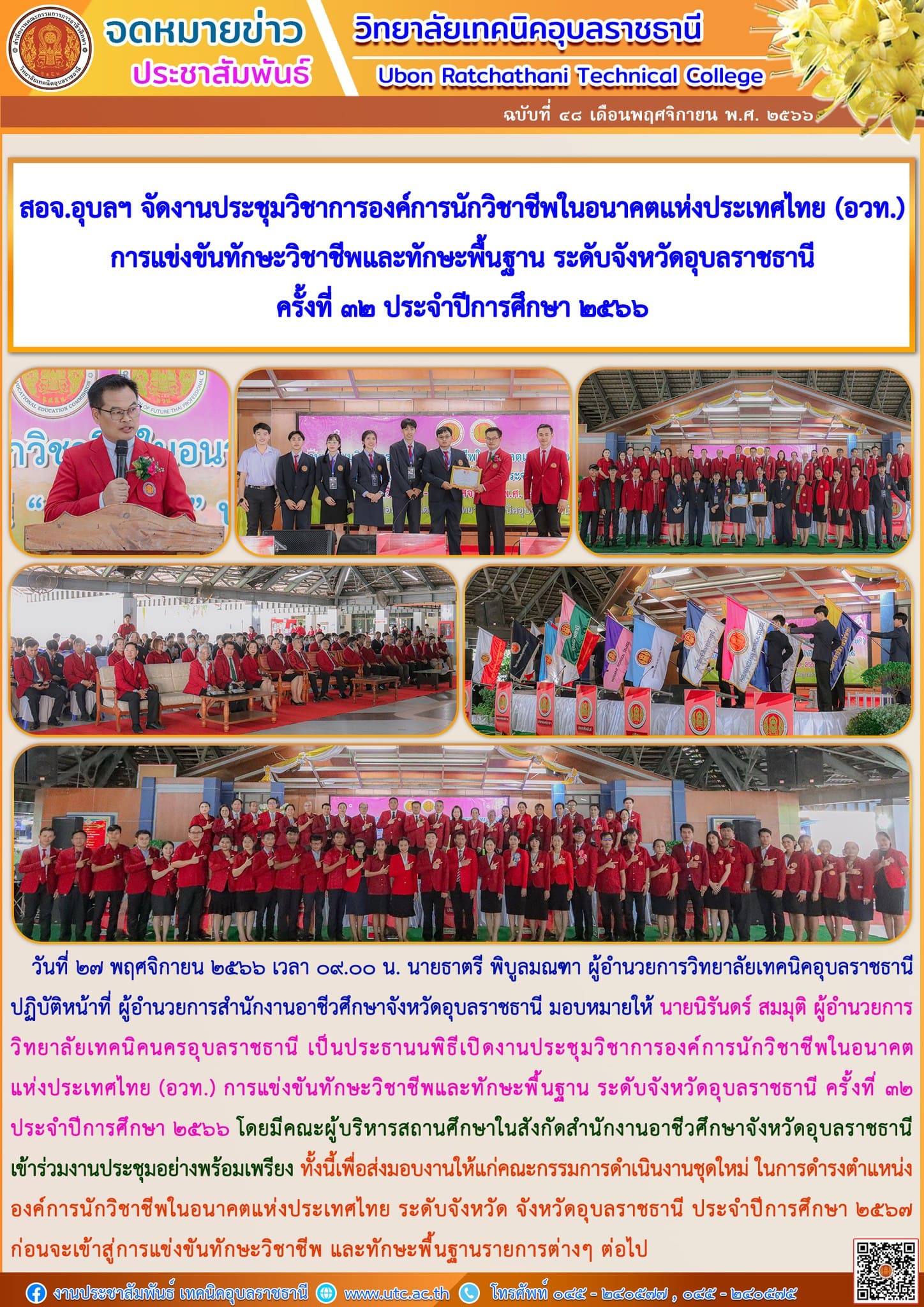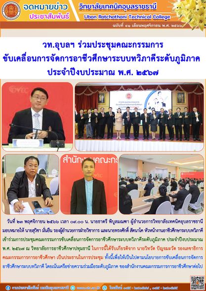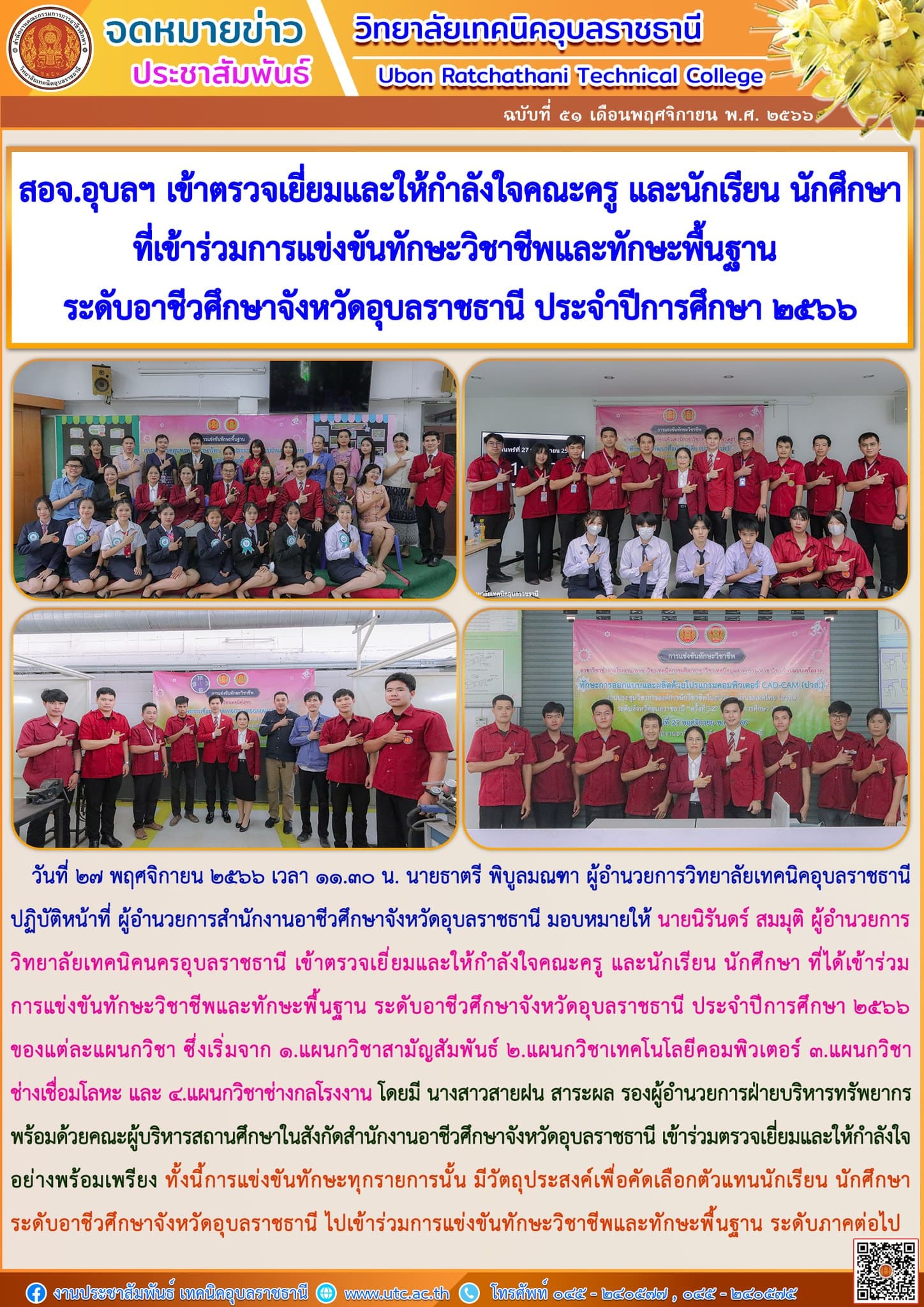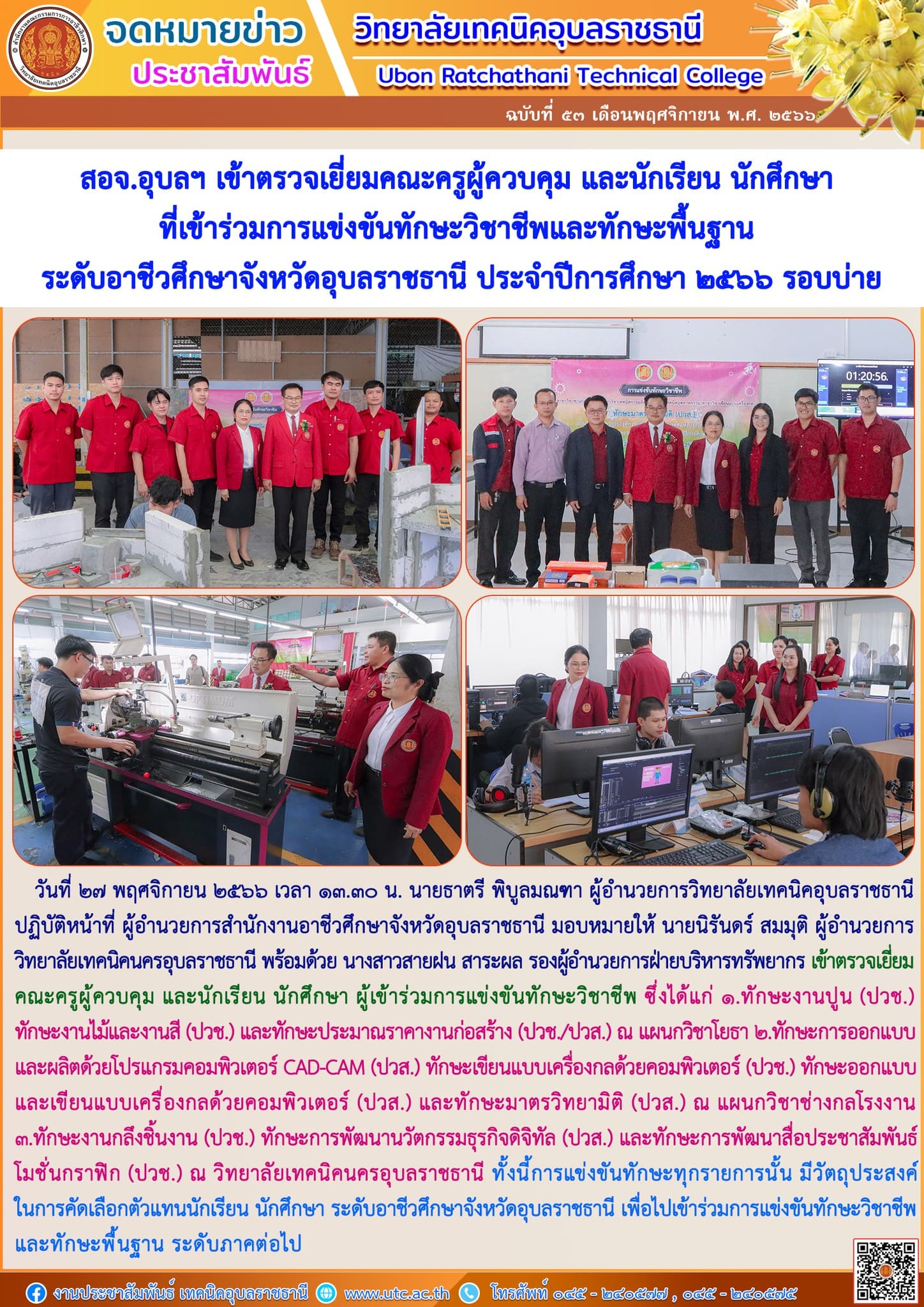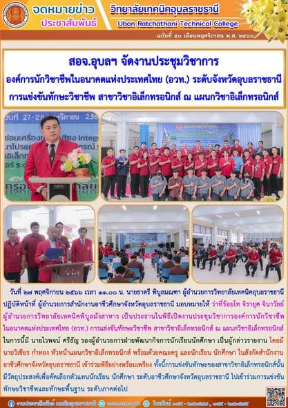วันที่ ๒๒ พฤศจิกายน ๒๕๖๖ ที่ผ่านมา นายธาตรี พิบูลมณฑา ผู้อำนวยการวิทยาลัยเทคนิคอุบลราชธานี (เพิ่มเติม…)