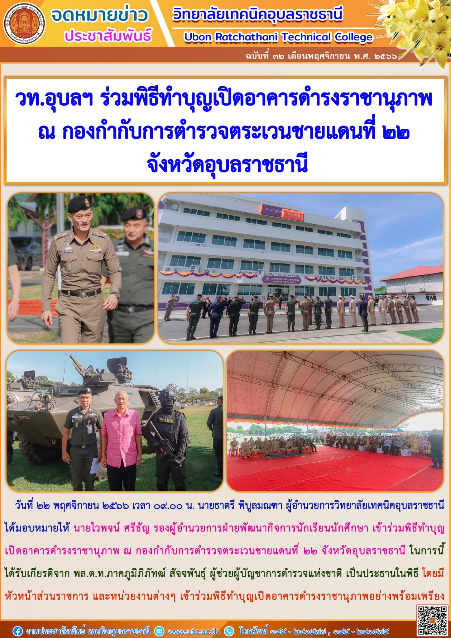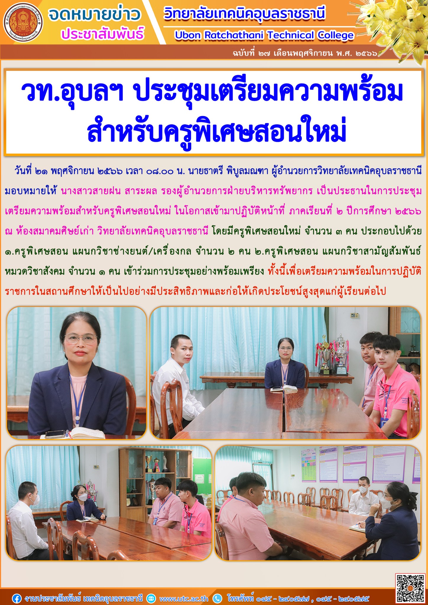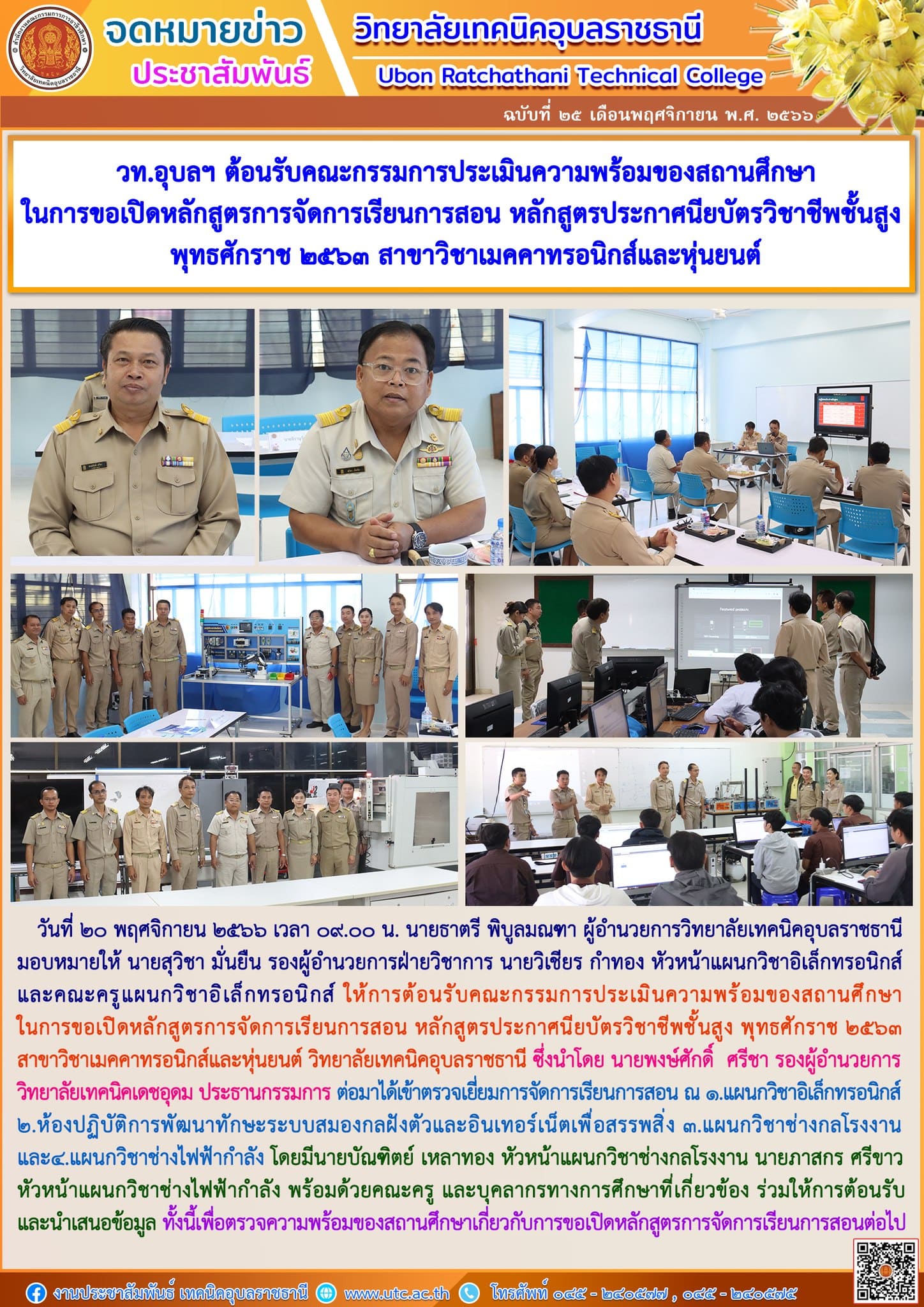 วันที่ ๒๑ พฤศจิกายน ๒๕๖๖ ที่ผ่านมา นายธาตรี พิบูลมณฑา ผู้อำนวยการวิทยาลัยเทคนิคอุบลราชธา (เพิ่มเติม…)