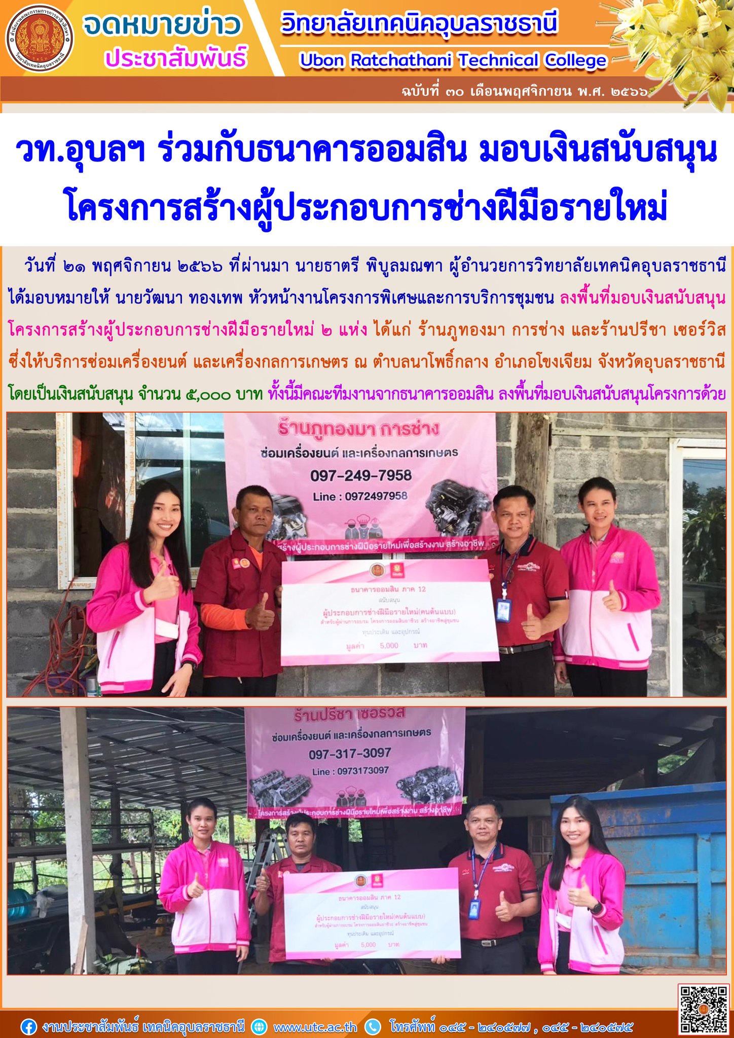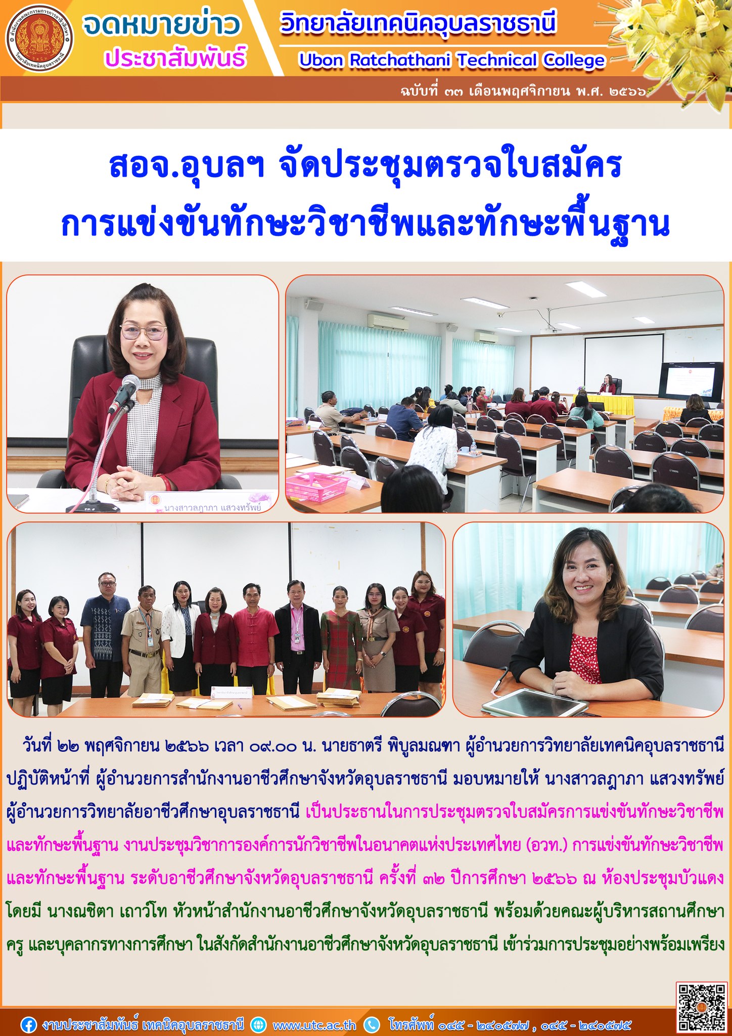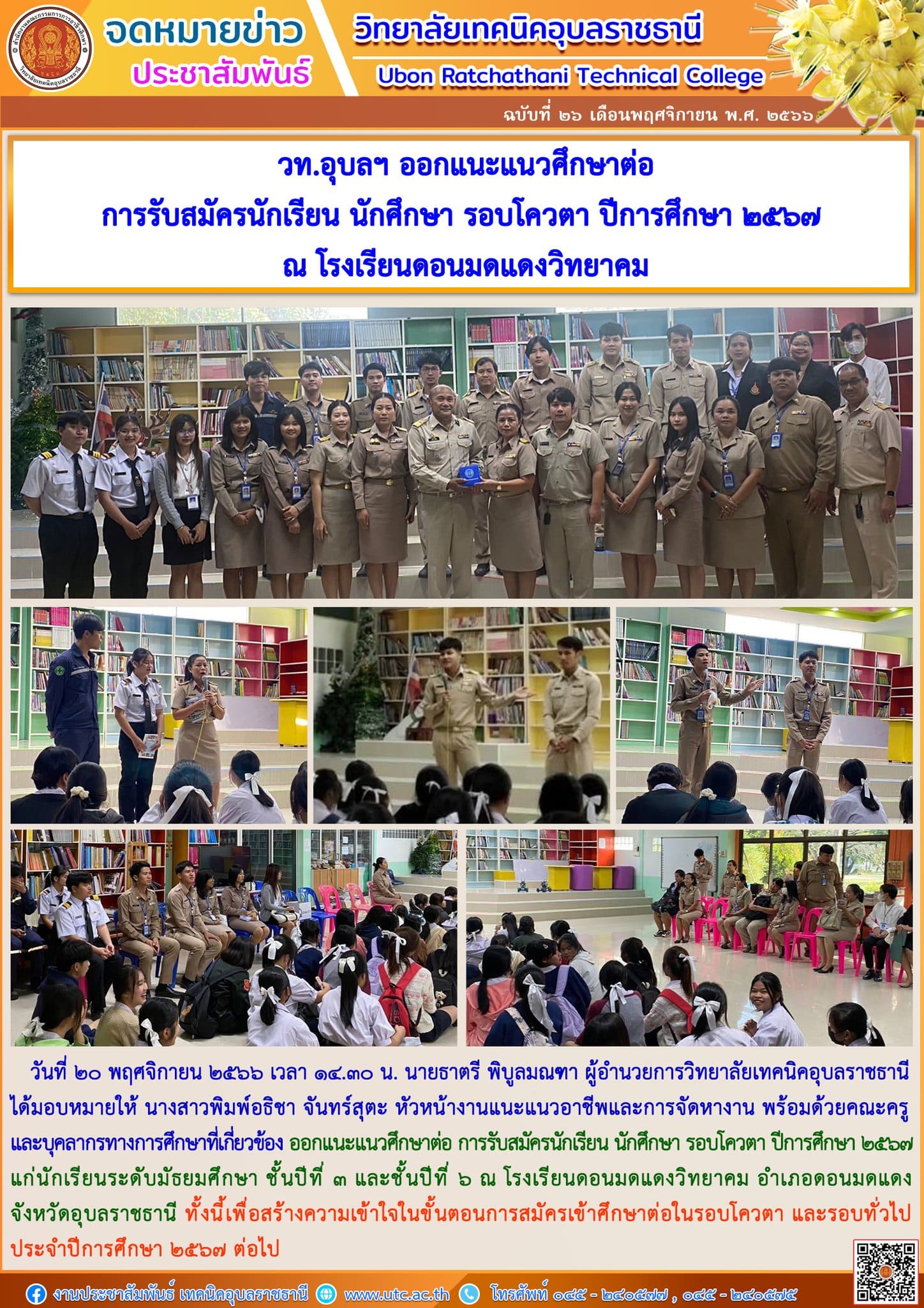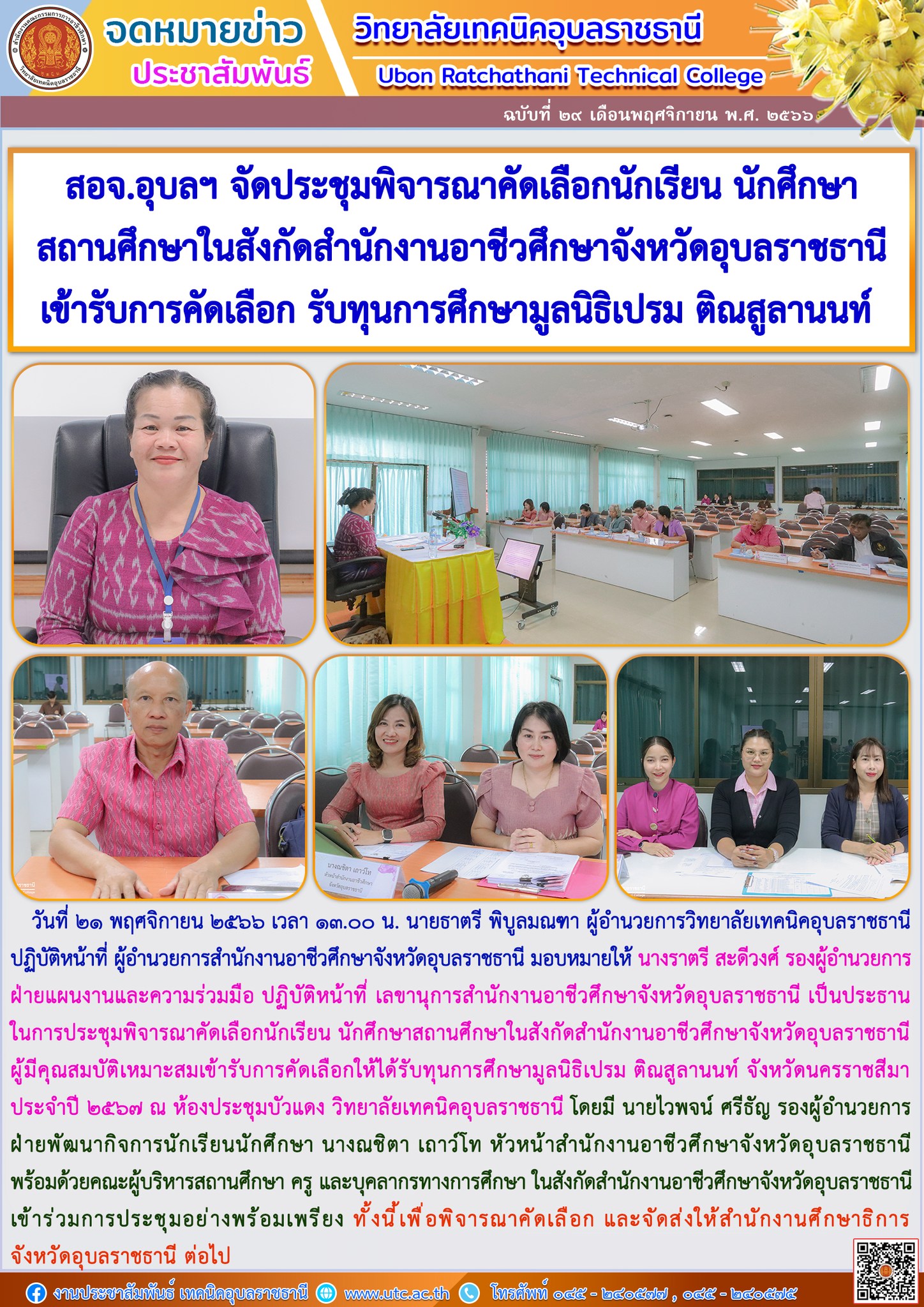 วันที่ ๒๑ พฤศจิกายน ๒๕๖๖ ที่ผ่านมา นายธาตรี พิบูลมณฑา ผู้อำนวยการวิทยาลัยเทคนิคอุบลราชธา (เพิ่มเติม…)