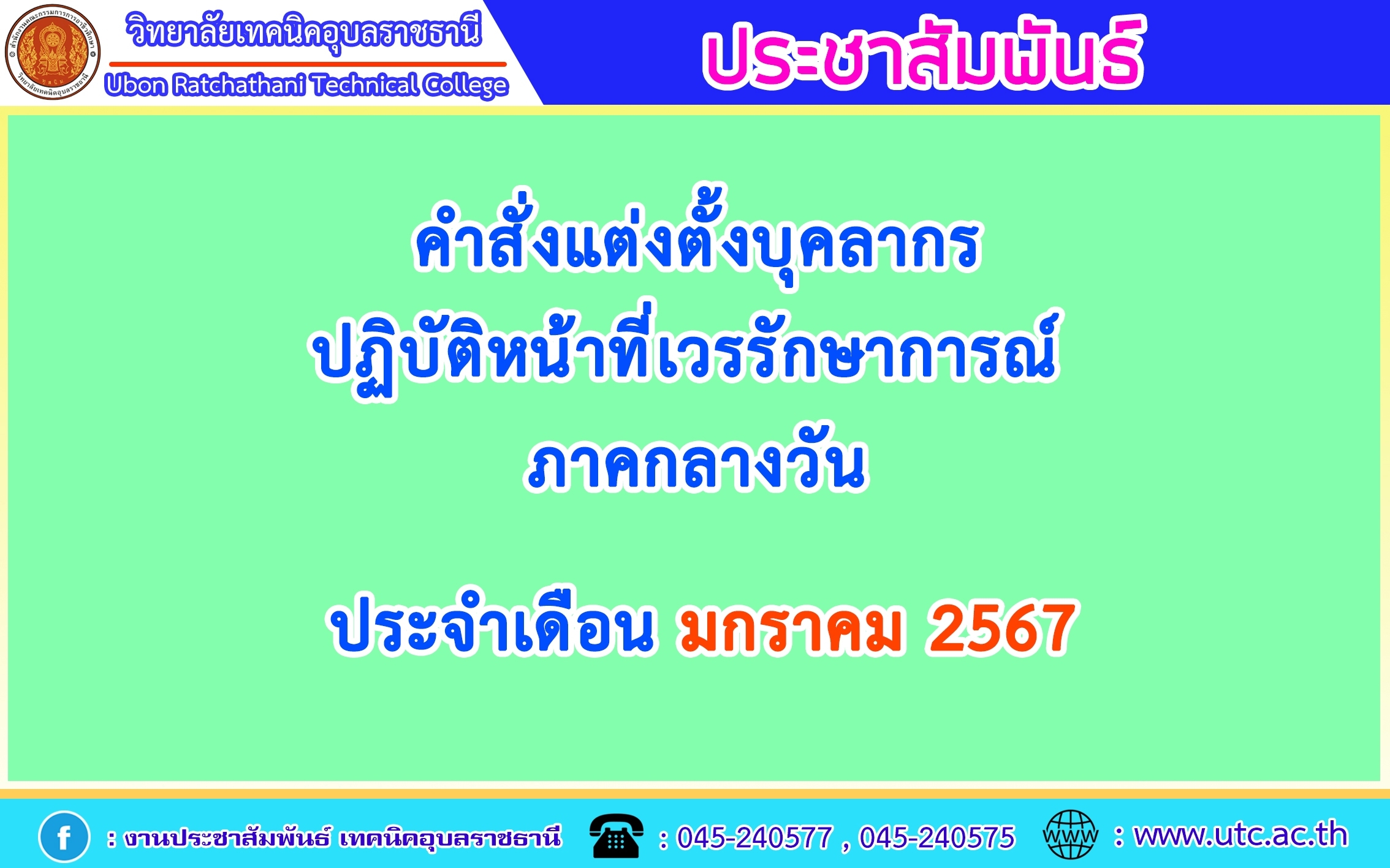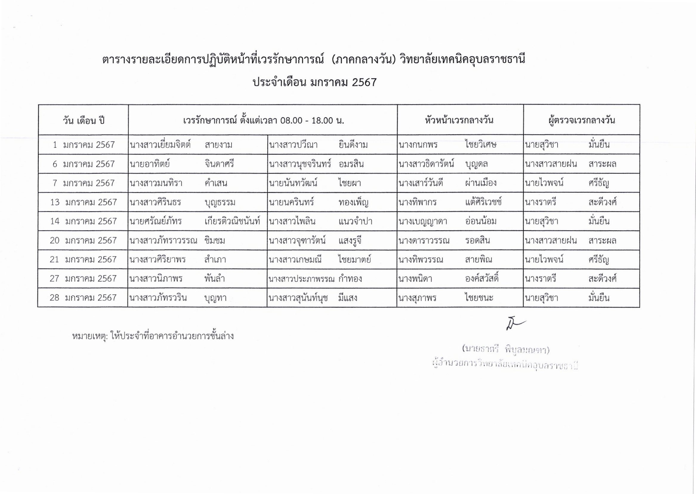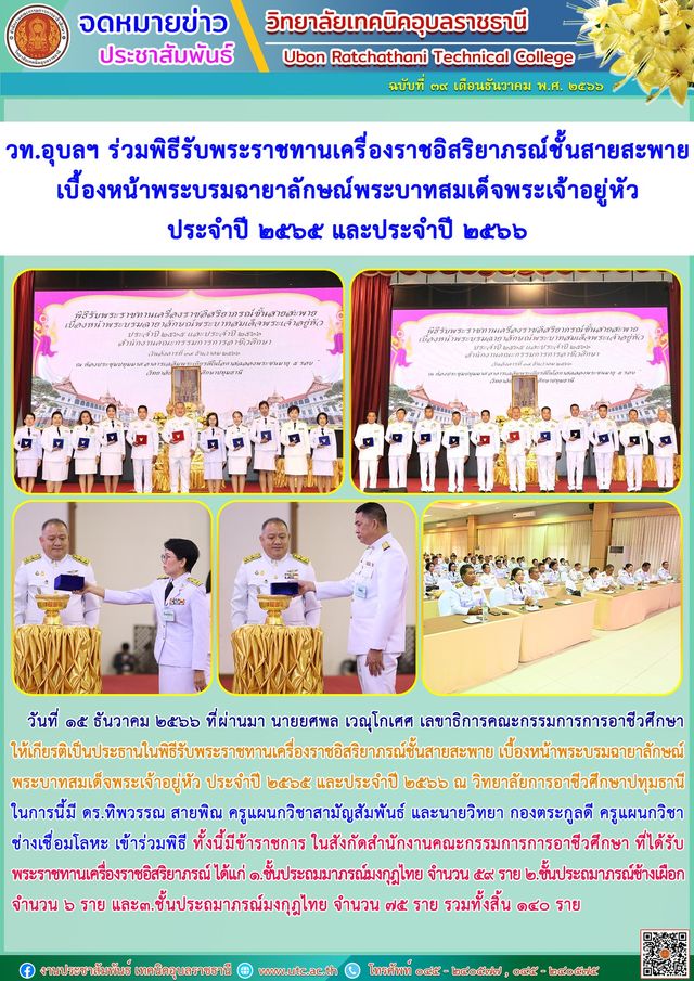 วันที่ ๒๕ ธันวาคม ๒๕๖๖ เวลา ๑๗.๐๐ น. นายธาตรี พิบูลมณฑา ผู้อำนวยการวิทยาลัยเทคนิคอุบลราชธานี มอบหมายให้ นางสาวสายฝน สาระผล รองผู้อำนวยการฝ่ายบริหาร (เพิ่มเติม…)