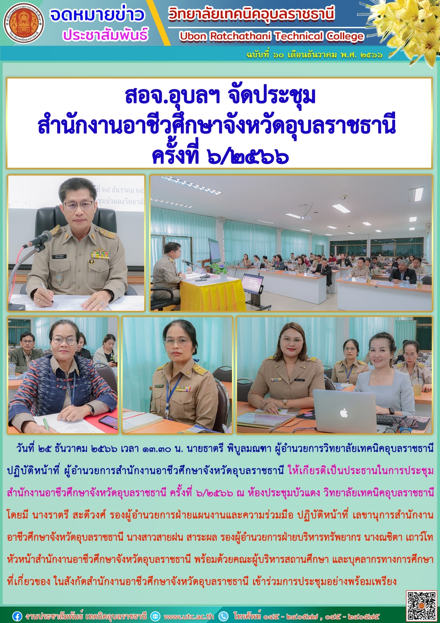 การประชุมสำนักงานอาชีวศึกษาจังหวัดอุบลราชธานี ครั้งที่ ๖/๒๕๖๖
