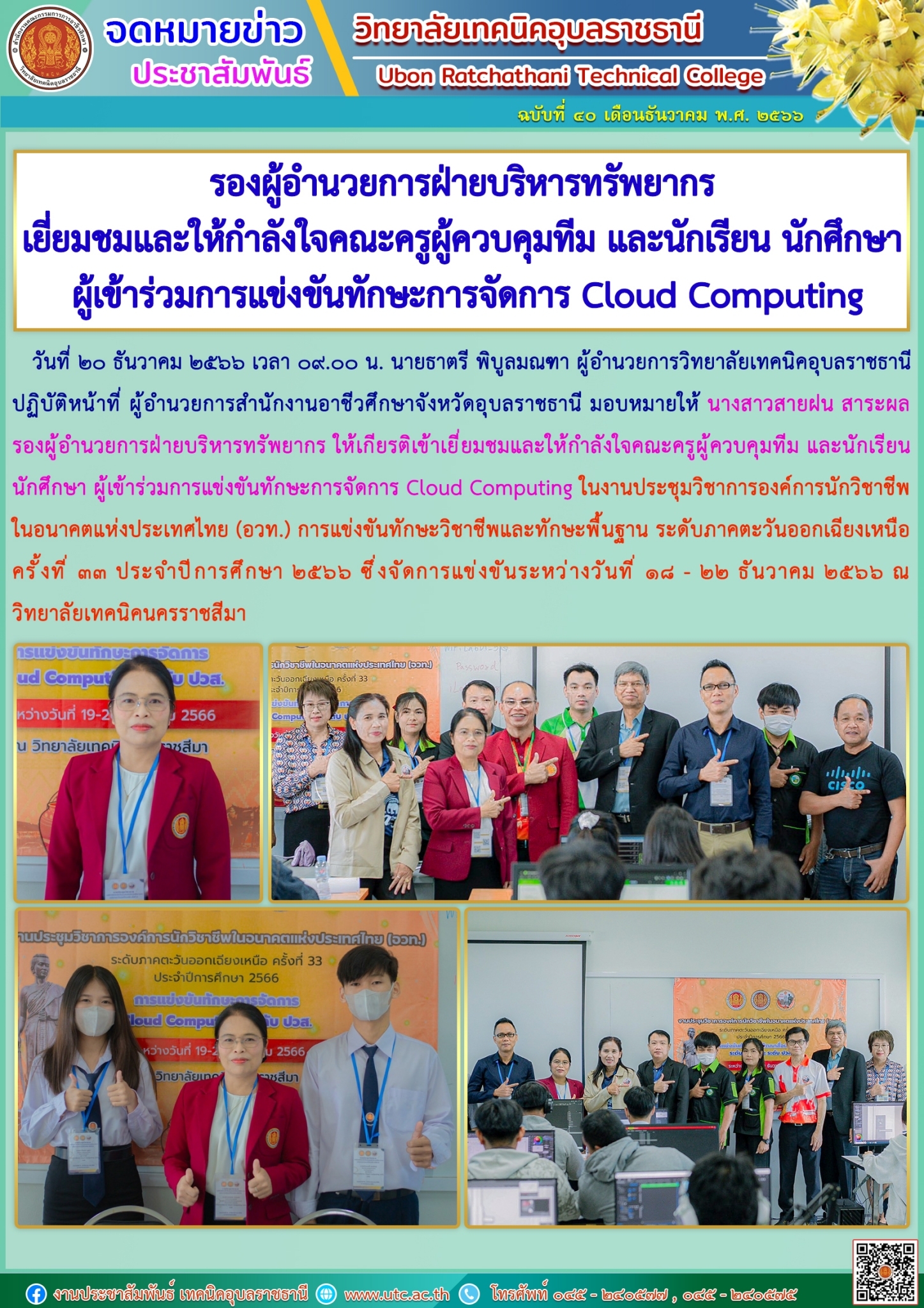 เยี่ยมชมและให้กำลังใจคณะครูผู้ควบคุมทีม และนักเรียน นักศึกษา ผู้เข้าร่วมการแข่งขันทักษะการจัดการ Cloud Computing
