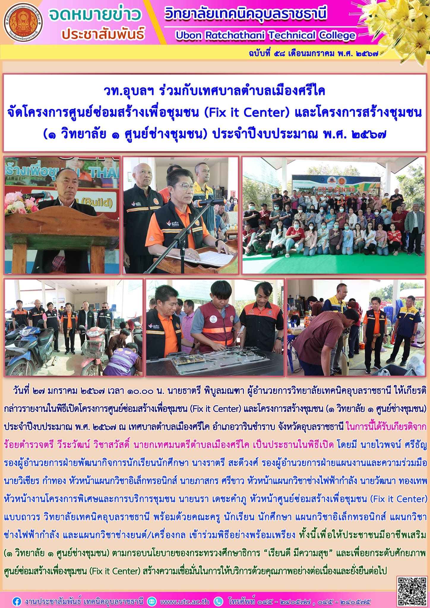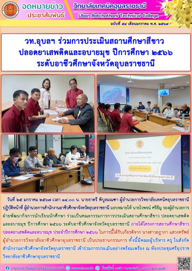 วันที่ ๒๗ มกราคม ๒๕๖๗ เวลา ๑๐.๐๐ น. นายธาตรี พิบูลมณฑา ผู้อำนวยการวิทยาลัยเทคนิคอุบลราชธานี (เพิ่มเติม…)