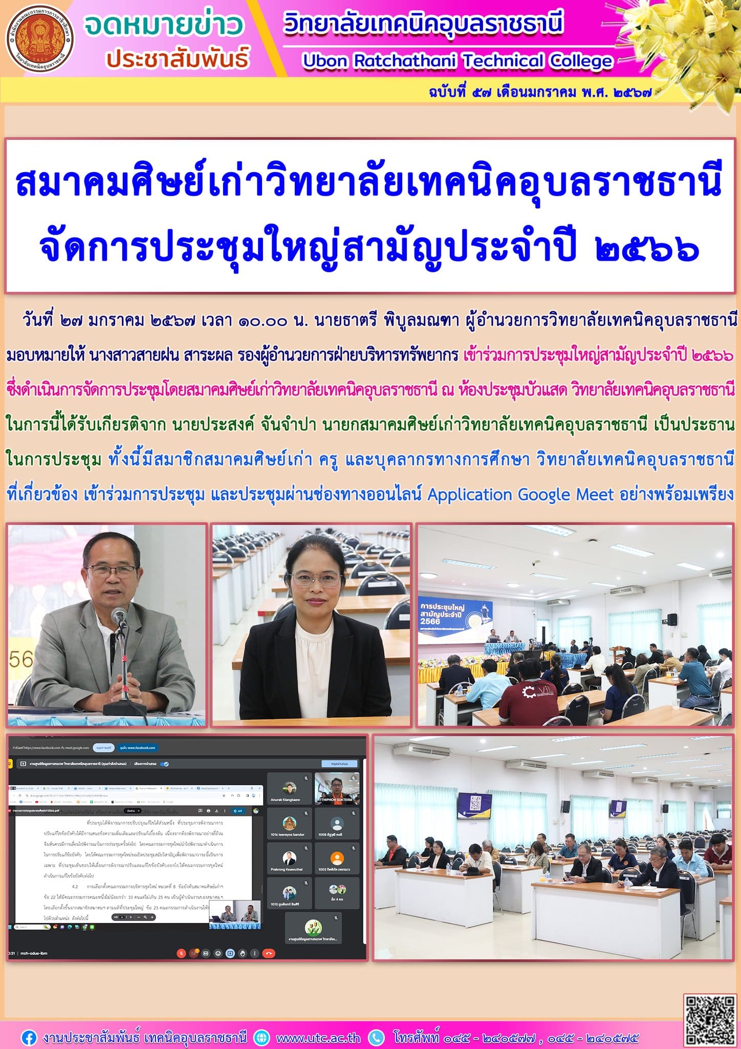 สมาคมศิษย์เก่าวิทยาลัยเทคนิคอุบลราชธานี จัดการประชุมใหญ่สามัญประจำปี ๒๕๖๖