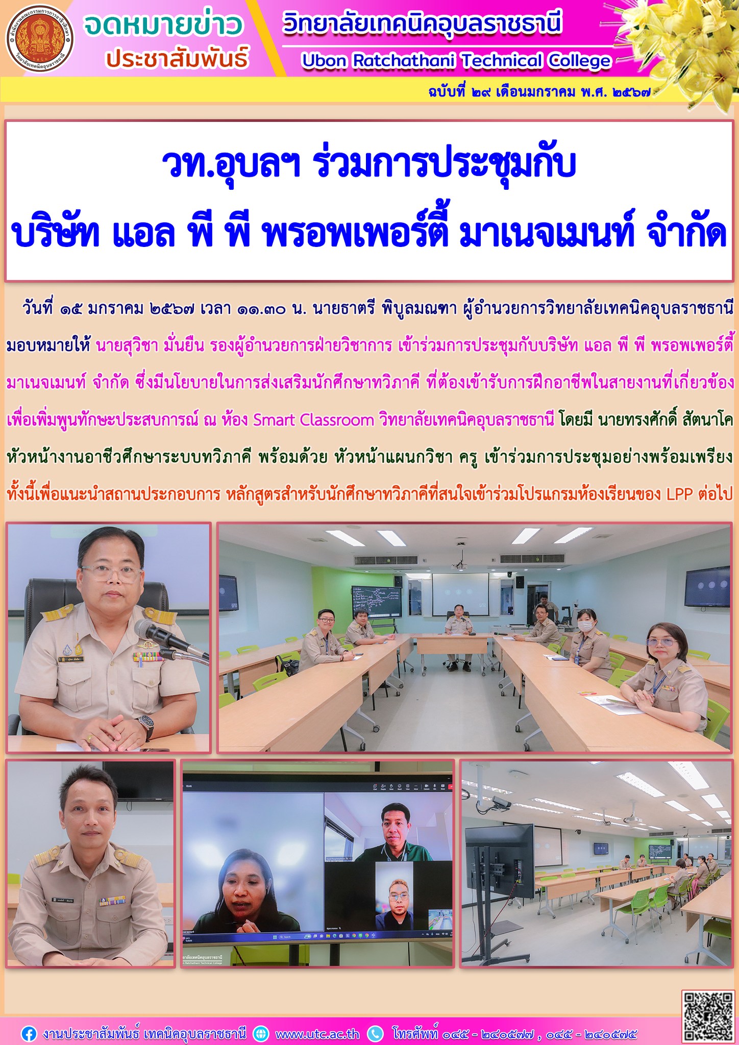 วท.อุบลฯ ร่วมการประชุมกับบริษัท แอล พี พี พรอพเพอร์ตี้ มาเนจเมนท์ จำกัด