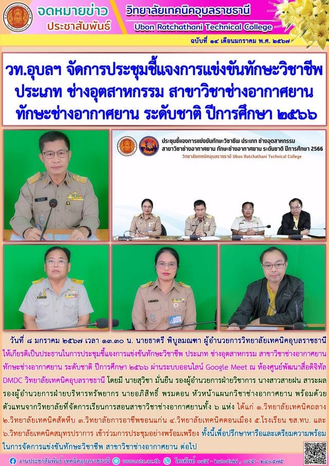 วันที่ ๘ มกราคม ๒๕๖๗ เวลา ๑๓.๓๐ น. นายธาตรี พิบูลมณฑา ผู้อำนวยการวิทยาลัยเทคนิคอุบลราชธานี (เพิ่มเติม…)