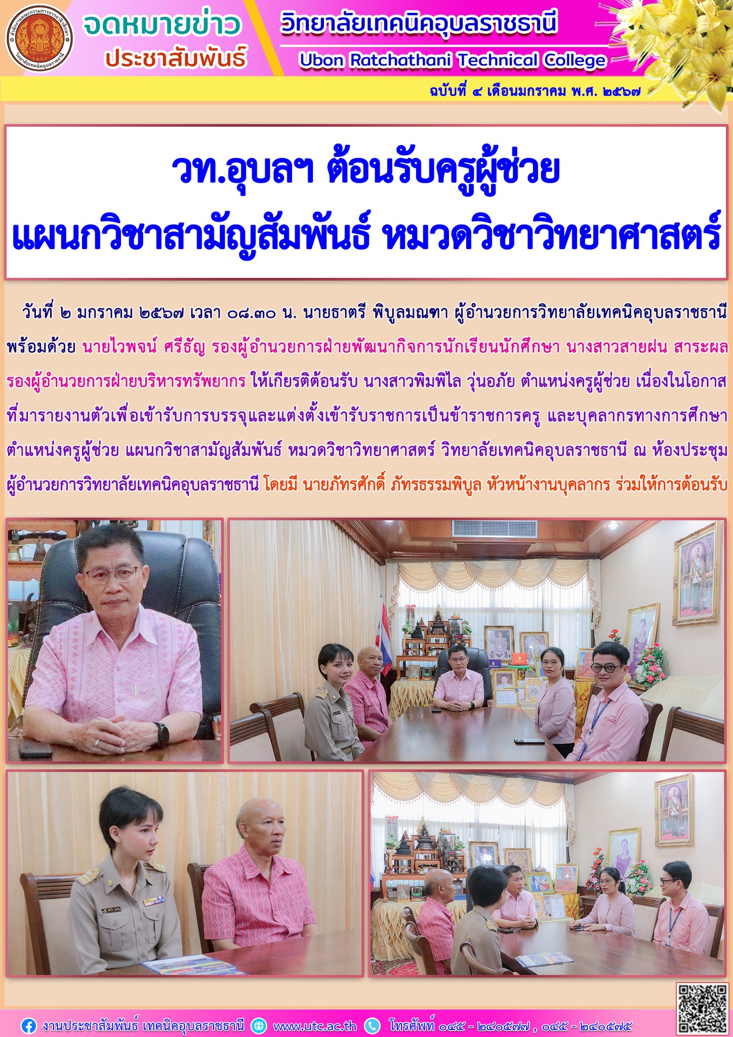 วท.อุบลฯ ต้อนรับครูผู้ช่วย แผนกวิชาสามัญสัมพันธ์ หมวดวิชาวิทยาศาสตร์