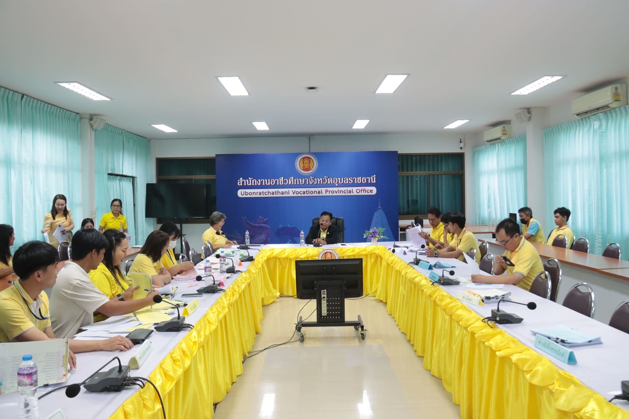 วันที่ ๑๑ มีนาคม ๒๕๖๗ เวลา ๑๐.๓๐ น. นายธาตรี พิบูลมณฑา ผู้อำนวยการวิทยาลัยเทคนิคอุบลราชธานี มอบหมายให้ นายสุวิชา มั่นยืน รองผู้อำนวยการฝ่ายวิชาการ เป็นประธานในการประชุมพิจารณากลั่นกรองผลการเรียน ภาคเรียนที่ ๒ ปีการศึกษา ๒๕๖๖ ณ ห้องประชุมบัวแดง วิทยาลัยเทคนิคอุบลราชธานี โดยมี นางพนิดา องค์สวัสดิ์ หัวหน้างานวัดผลและประเมินผล หัวหน้าแผนกวิชา หัวหน้าหมวดวิชา ตัวแทนคณะครู และบุคลากรทางการศึกษาที่เกี่ยวข้อง เข้าร่วมการประชุมอย่างพร้อมเพรียง ทั้งนี้เพื่อให้การวัดผลและประเมินผลเป็นไปตามระเบียบกระทรวงศึกษาธิการ ว่าด้วยการจัดการศึกษาและการประเมินผลการเรียนตามหลักสูตรประกาศนียบัตรวิชาชีพ พุทธศักราช ๒๕๖๒ หลักสูตรประกาศนียบัตรวิชาชีพชั้นสูง พุทธศักราช ๒๕๖๓ และหลักสูตรปริญญาตรี สายเทคโนโลยีหรือสายปฏิบัติการ ต่อไป