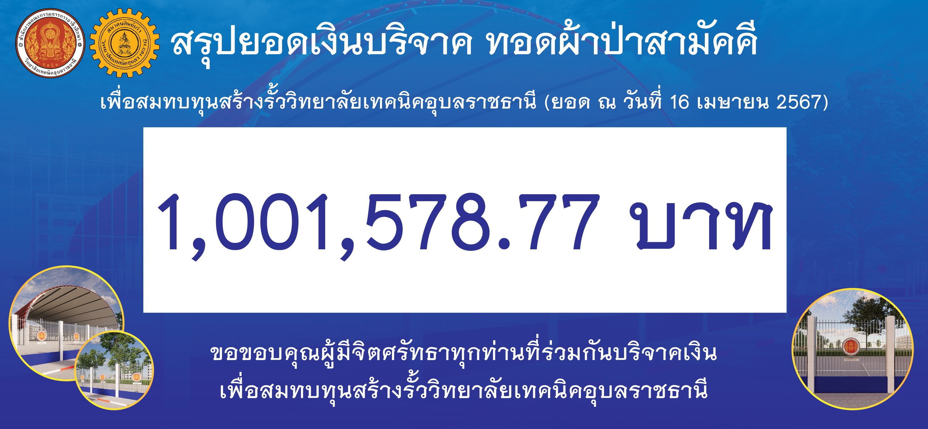 สรุปยอดเงินบริจาค ทอดผ้าป่าสามัคคี เพื่อสมทบทุนสร้างรั้ววิทยาลัยเทคนิคอุบลราชธานี