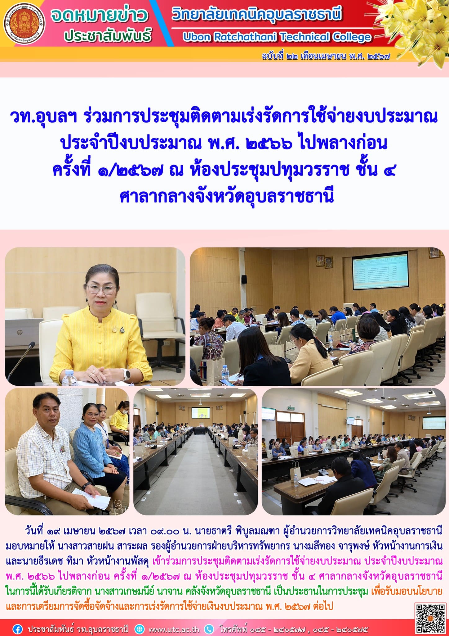 วันที่ ๑๔ เมษายน ๒๕๖๗ เวลา ๑๑.๐๐ น. นายธาตรี พิบูลมณฑา ผู้อำนวยการวิทยาลัยเทคนิคอุบลราชธานี ปฏิบัติหน้าที่ ผู้อำนวยการสำนัก (เพิ่มเติม…)