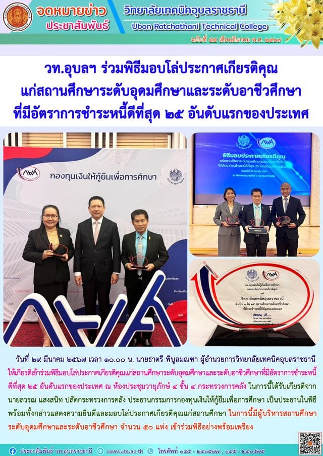 วันที่ ๒๙ มีนาคม ๒๕๖๗ เวลา ๑๐.๐๐ น. นายธาตรี พิบูลมณฑา ผู้อำนวยการวิทยาลัยเทคนิคอุบลราชธานี (เพิ่มเติม…)