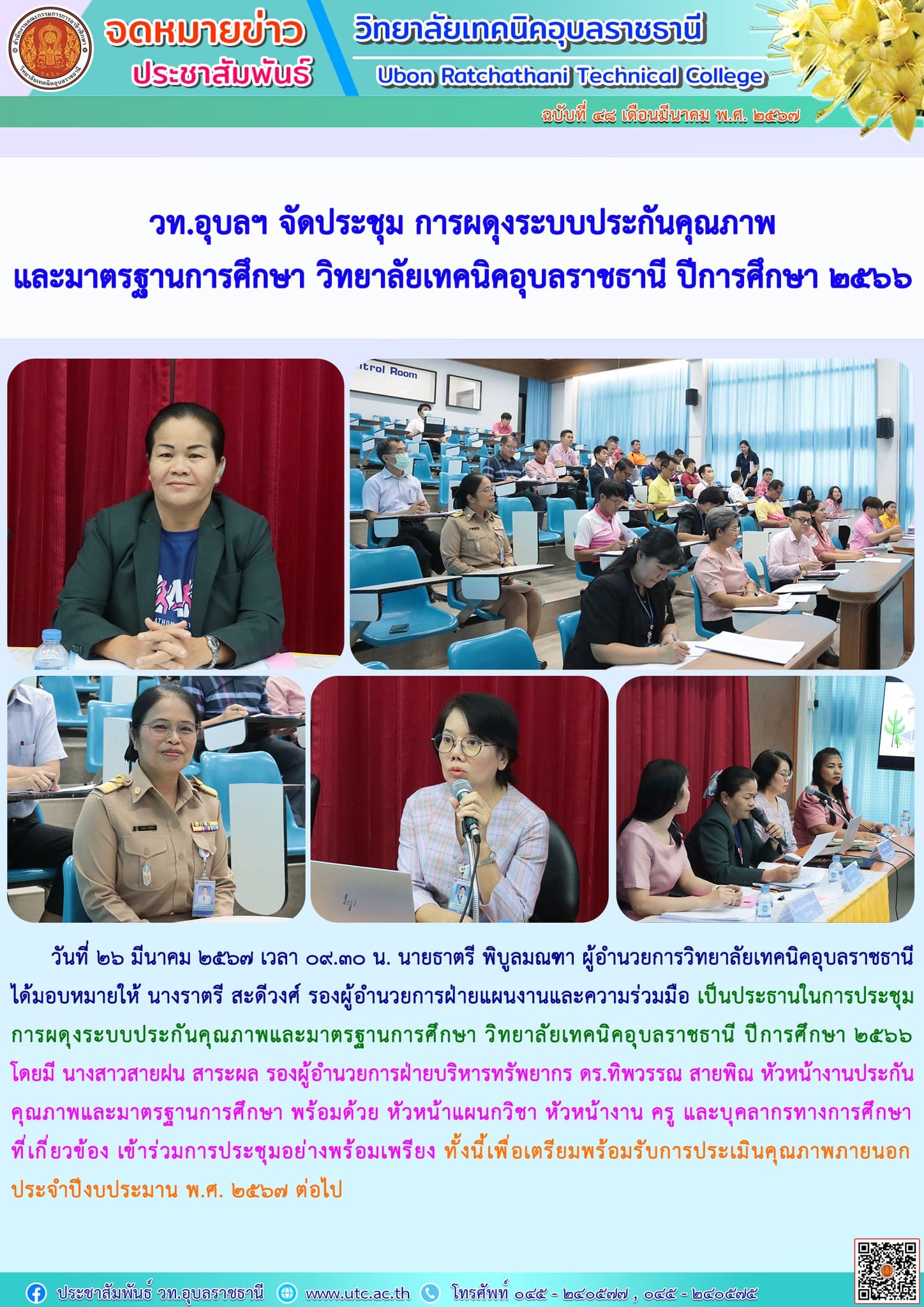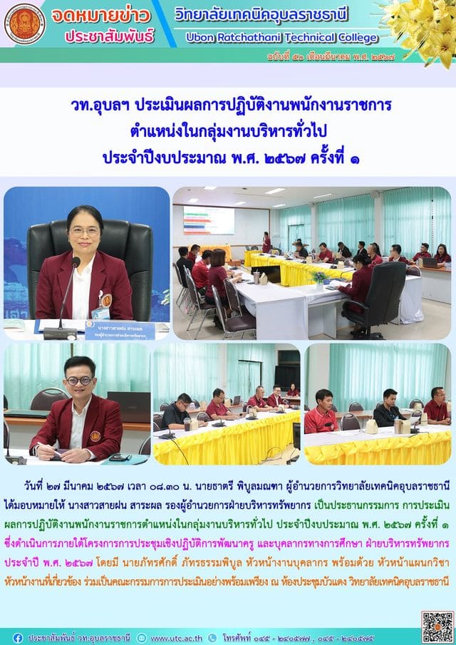 วันที่ ๒๖ มีนาคม ๒๕๖๗ เวลา ๐๙.๓๐ น. นายธาตรี พิบูลมณฑา ผู้อำนวยการวิทยาลัยเทคนิคอุบลราชธานี ได้มอบหมายให้ นางราตรี (เพิ่มเติม…)