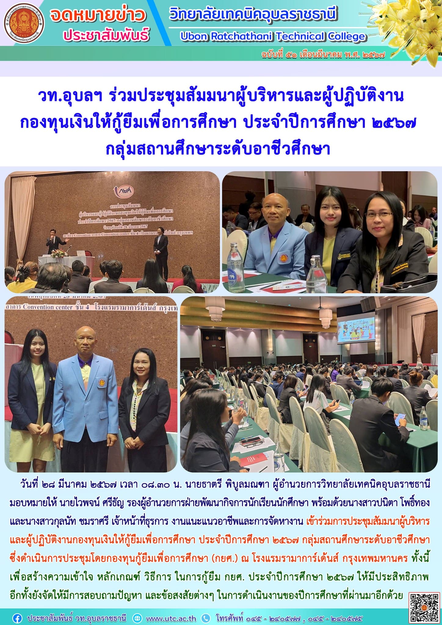 การประชุมสัมมนาผู้บริหารและผู้ปฏิบัติงานกองทุนเงินให้กู้ยืมเพื่อการศึกษา ประจำปีการศึกษา ๒๕๖๗ กลุ่มสถานศึกษาระดับอาชีวศึกษา