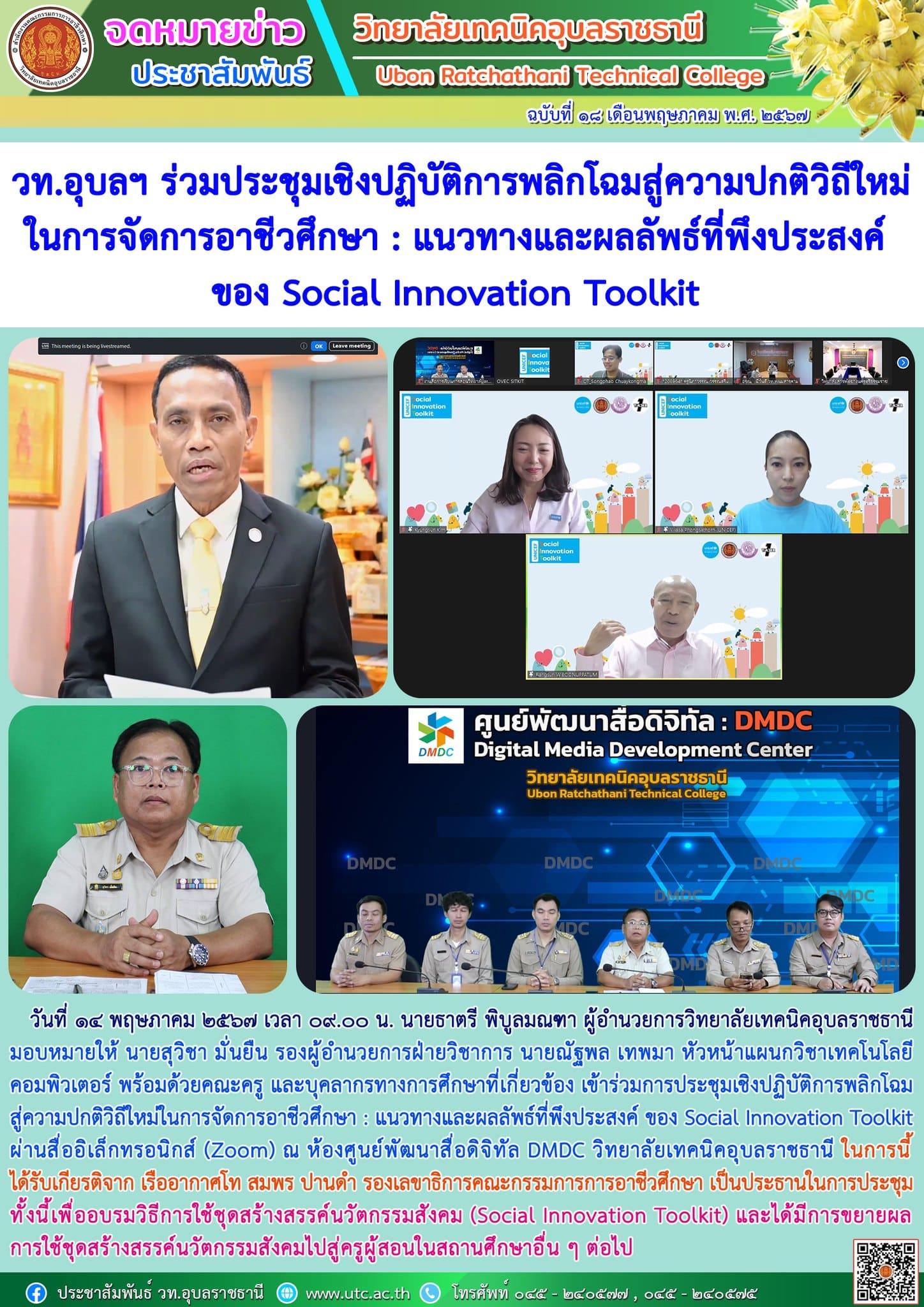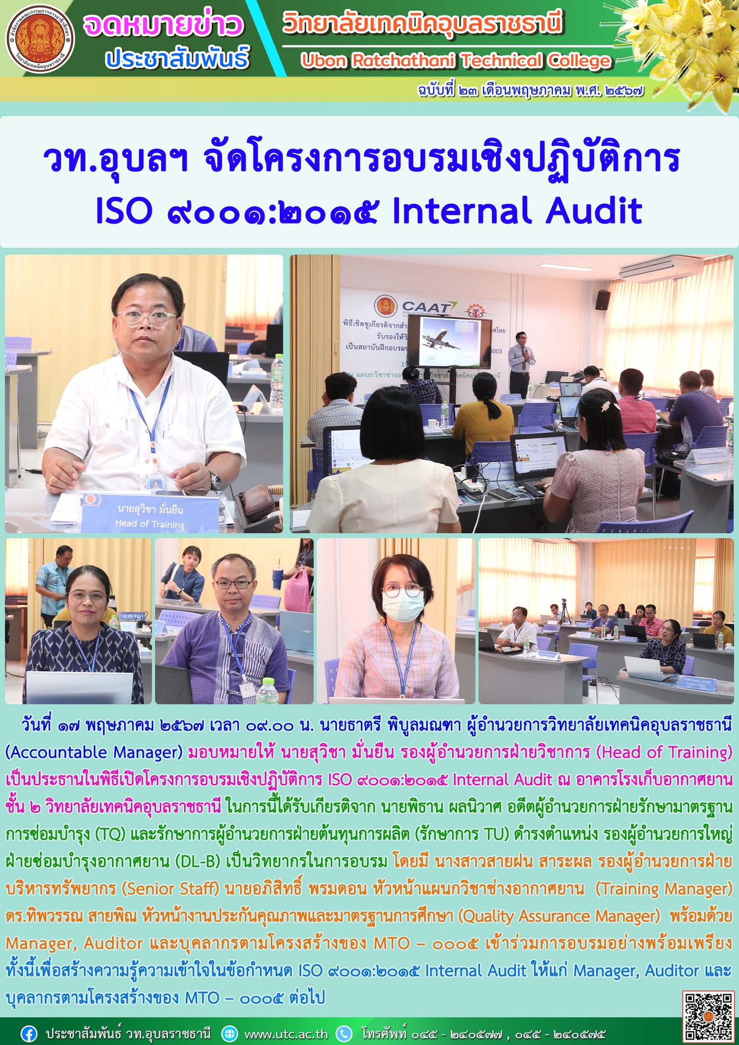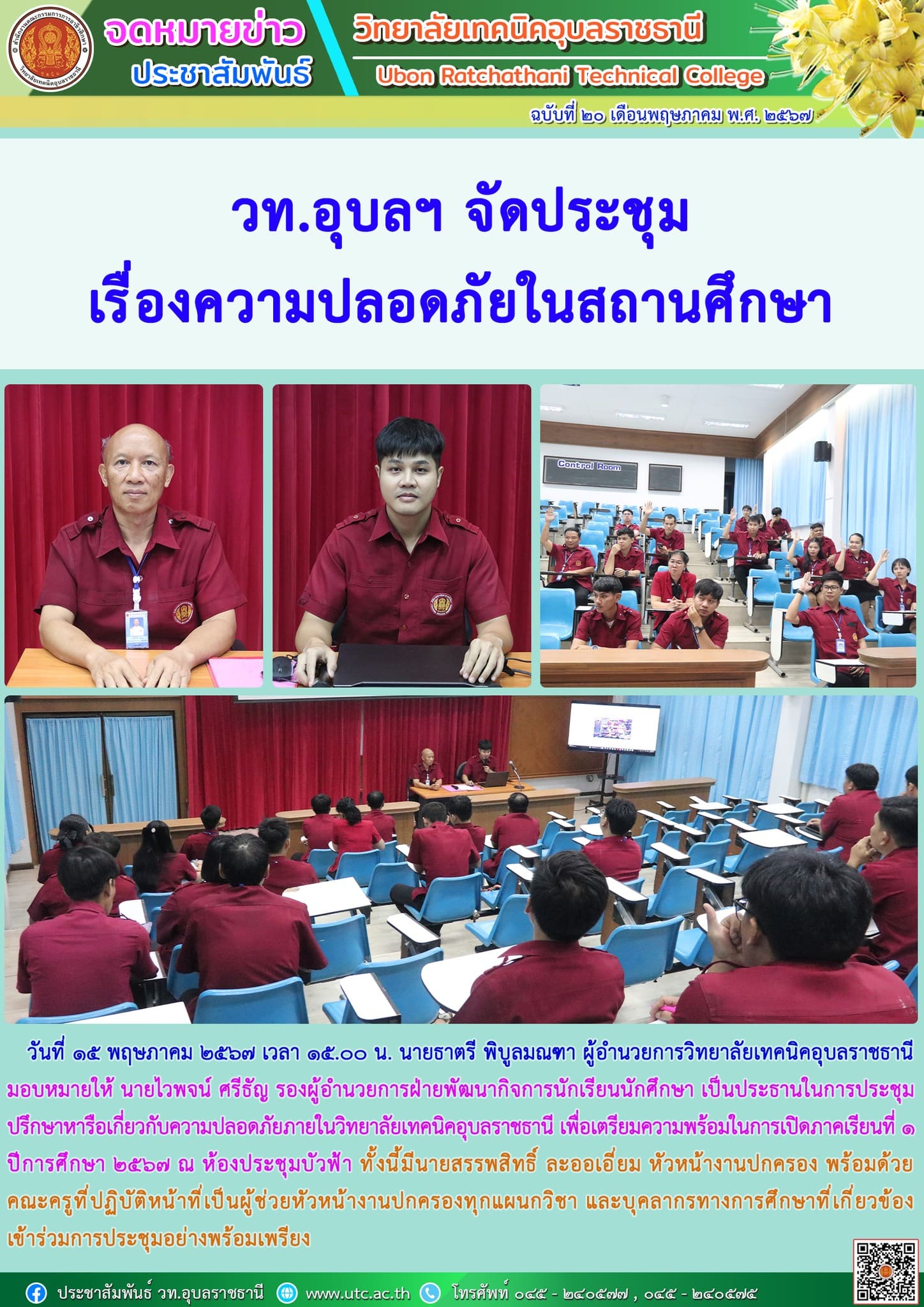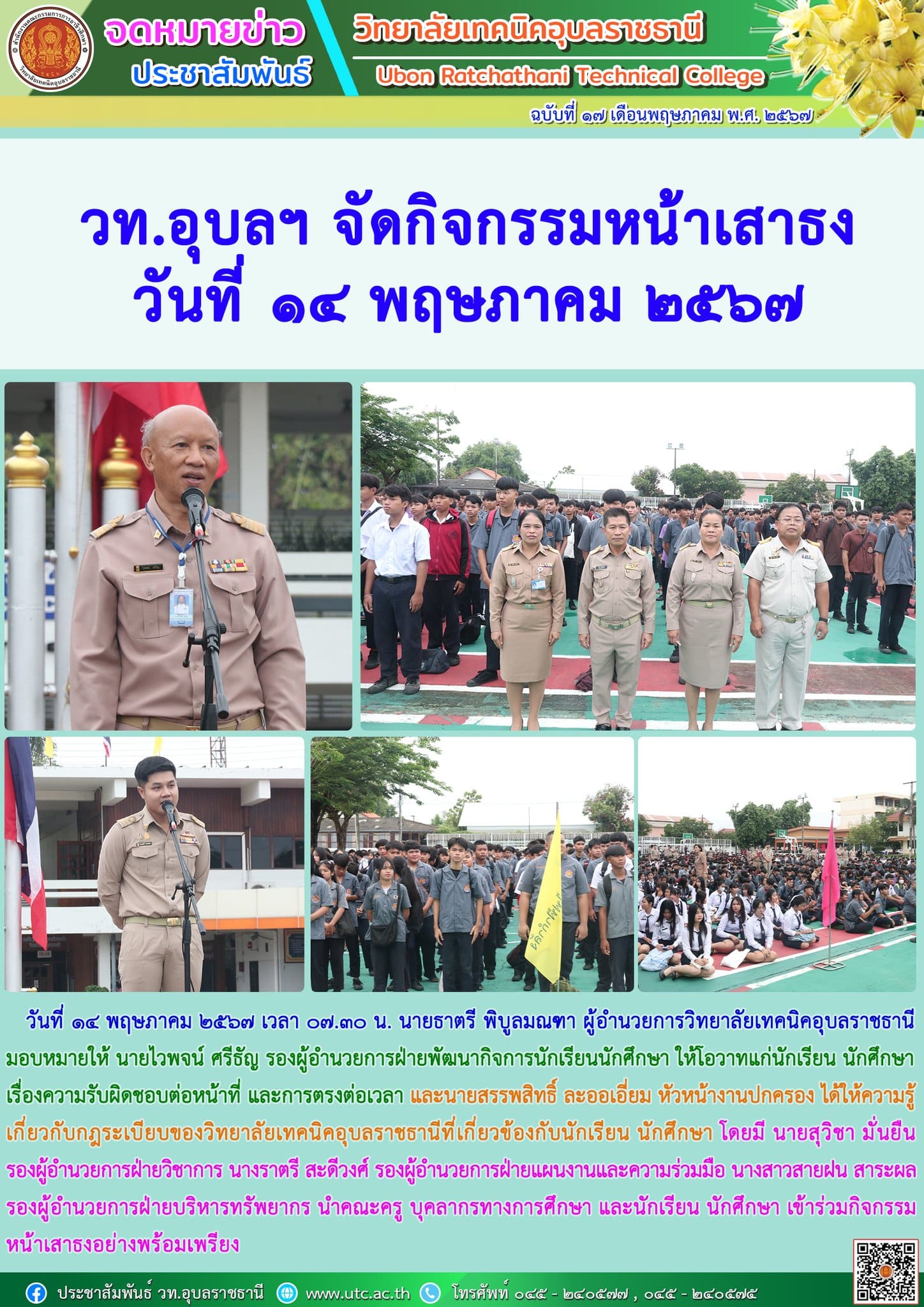 วันที่ ๑๗ พฤษภาคม ๒๕๖๗ เวลา ๐๙.๐๐ น. นายธาตรี พิบูลมณฑา ผู้อำนวยการวิทยาลัยเทคนิคอุบลราชธานี(Accountable (เพิ่มเติม…)