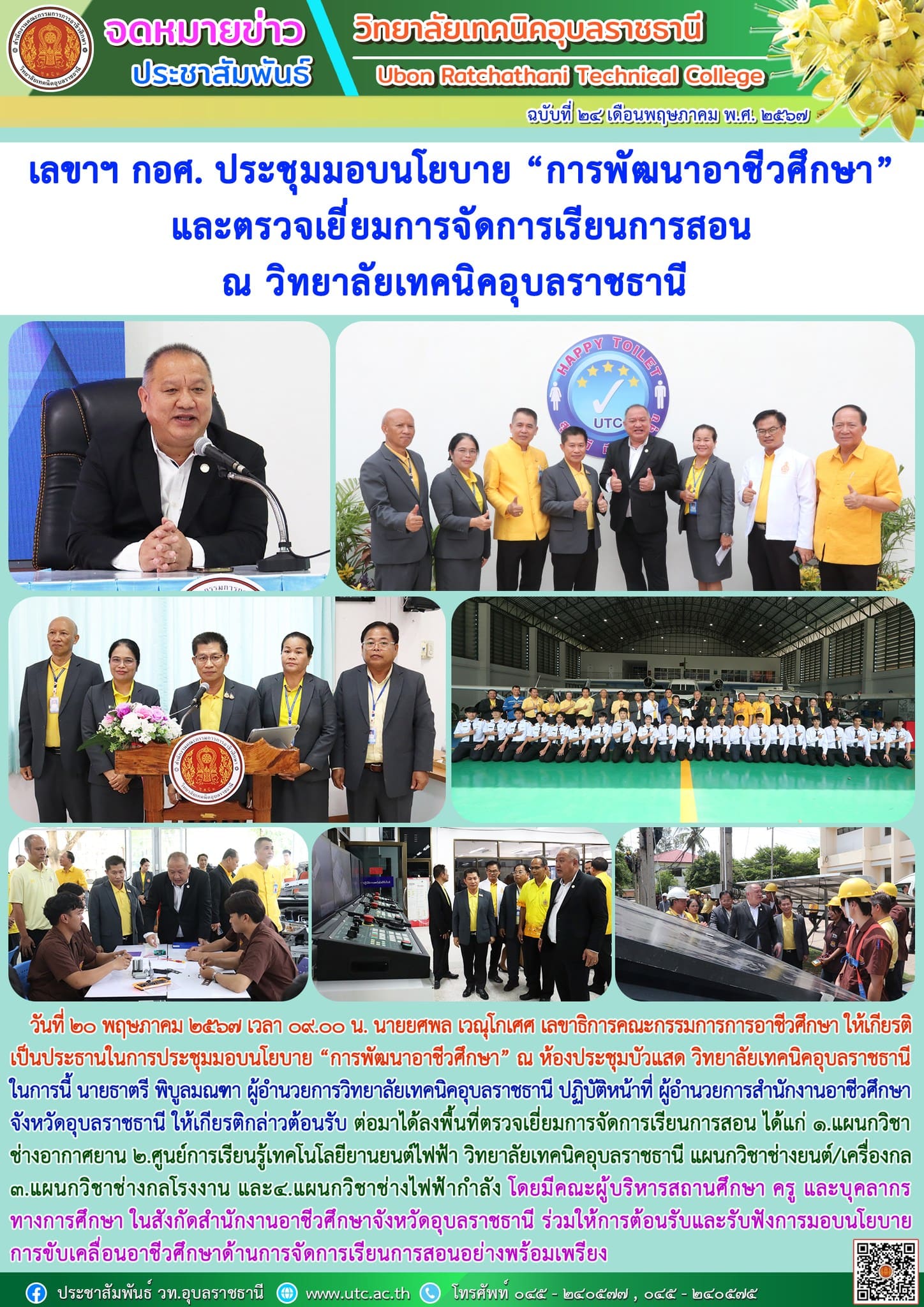 การประชุมมอบนโยบาย “การพัฒนาอาชีวศึกษา” ณ ห้องประชุมบัวแสด วิทยาลัยเทคนิคอุบลราชธานี