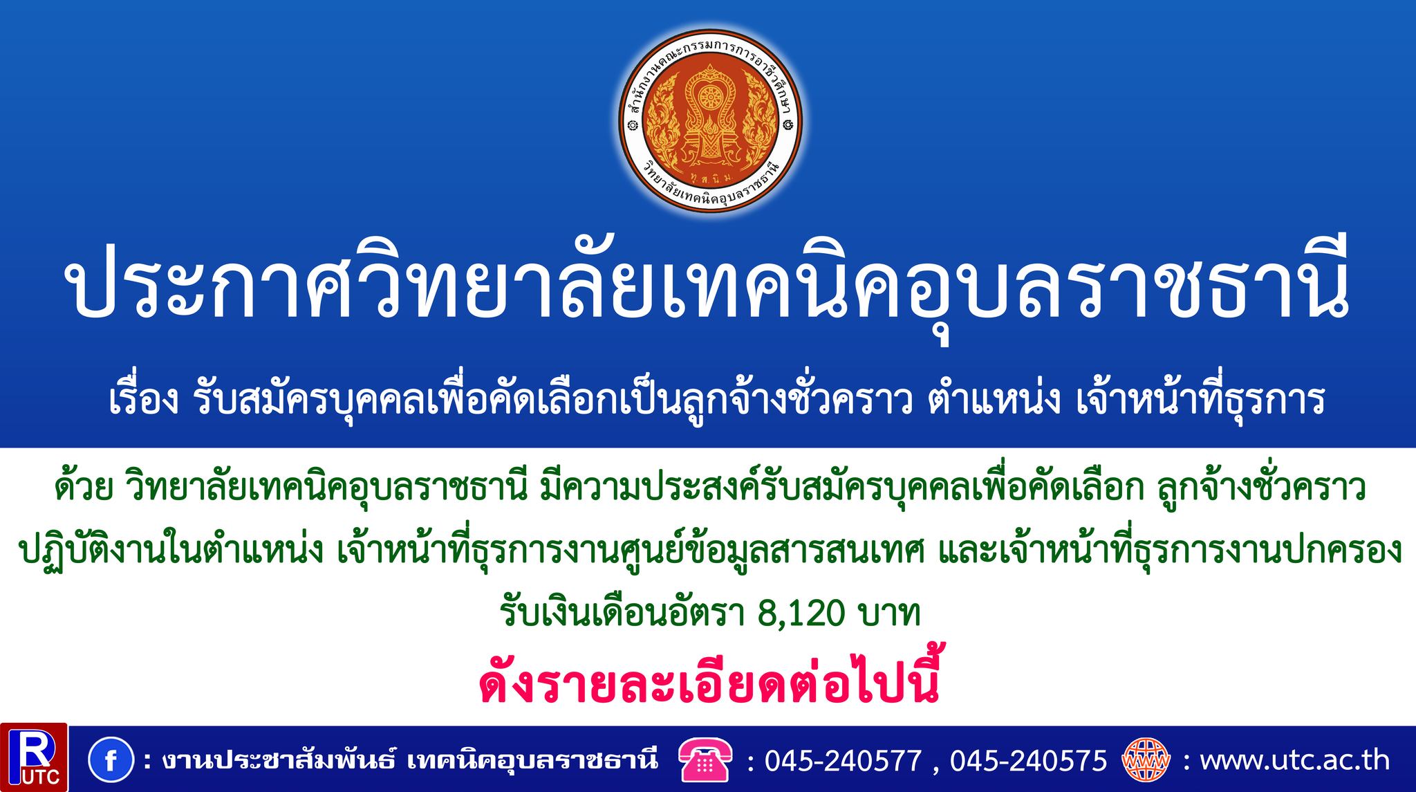 เรื่อง รับสมัครบุคคลเพื่อคัดเลือกเป็นลูกจ้างชั่วคราว ตำแหน่ง เจ้าหน้าที่ธุรการ