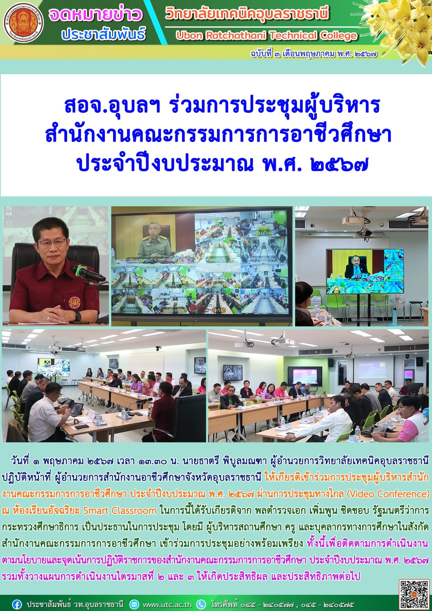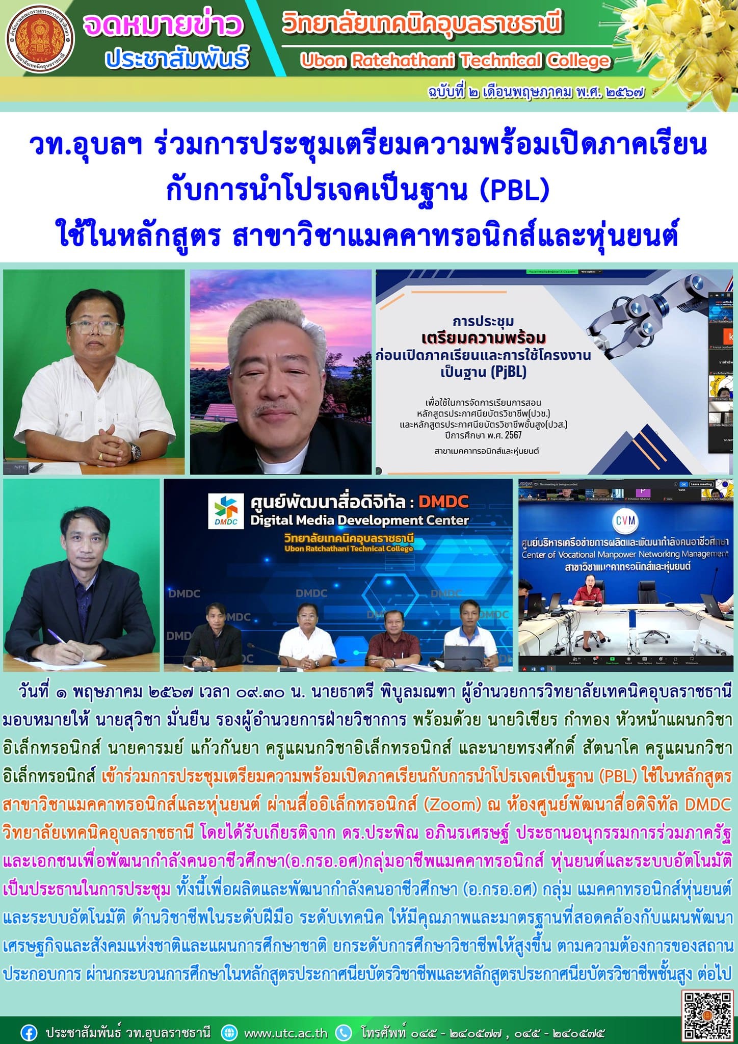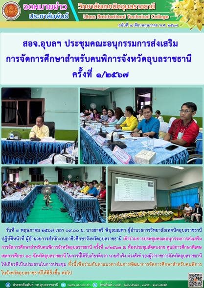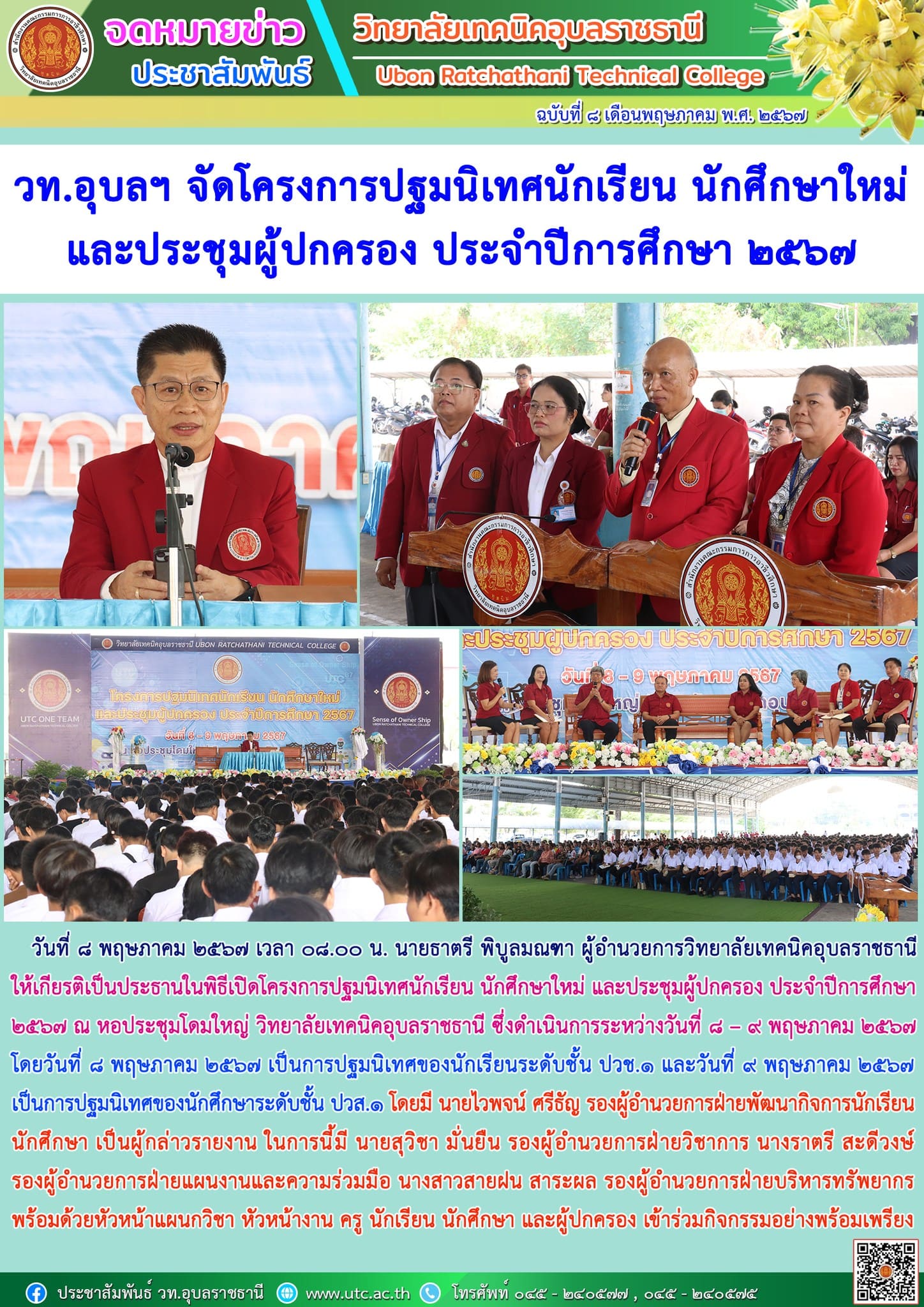 วันที่ ๘ พฤษภาคม ๒๕๖๗ เวลา ๐๘.๐๐ น. นายธาตรี พิบูลมณฑา ผู้อำนวยการวิทยาลัยเทคนิคอุบลราชธานี (เพิ่มเติม…)