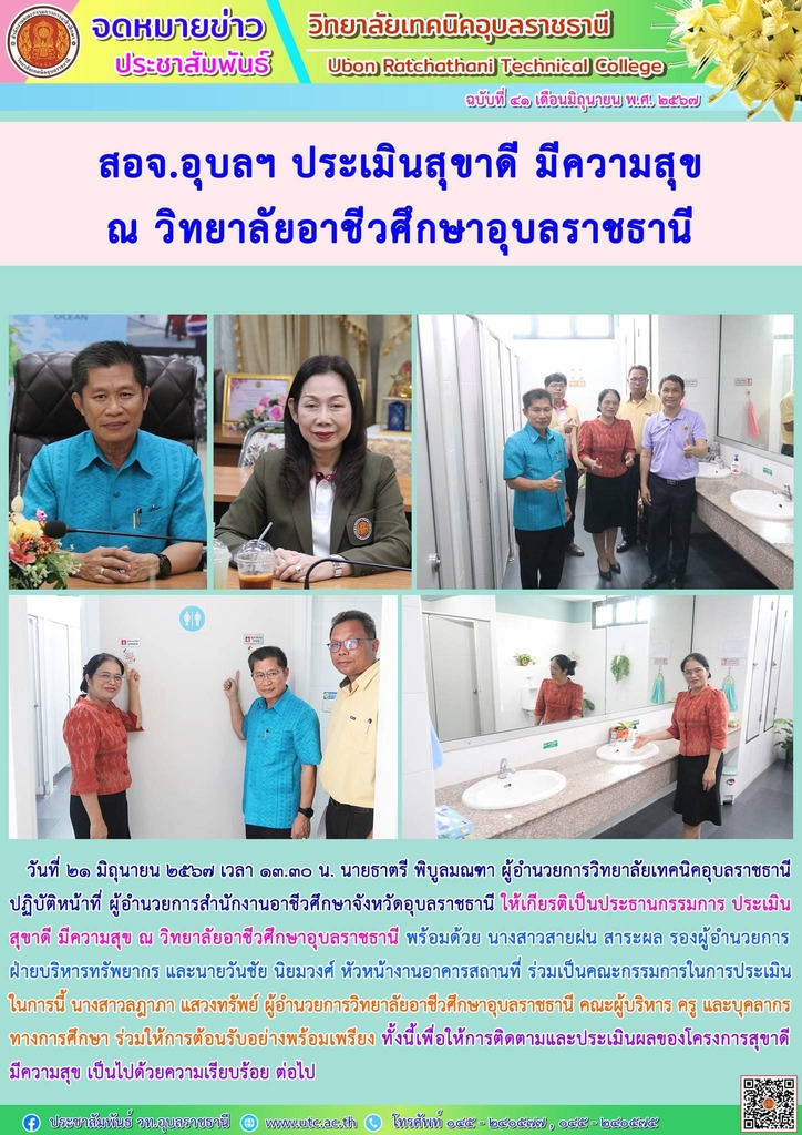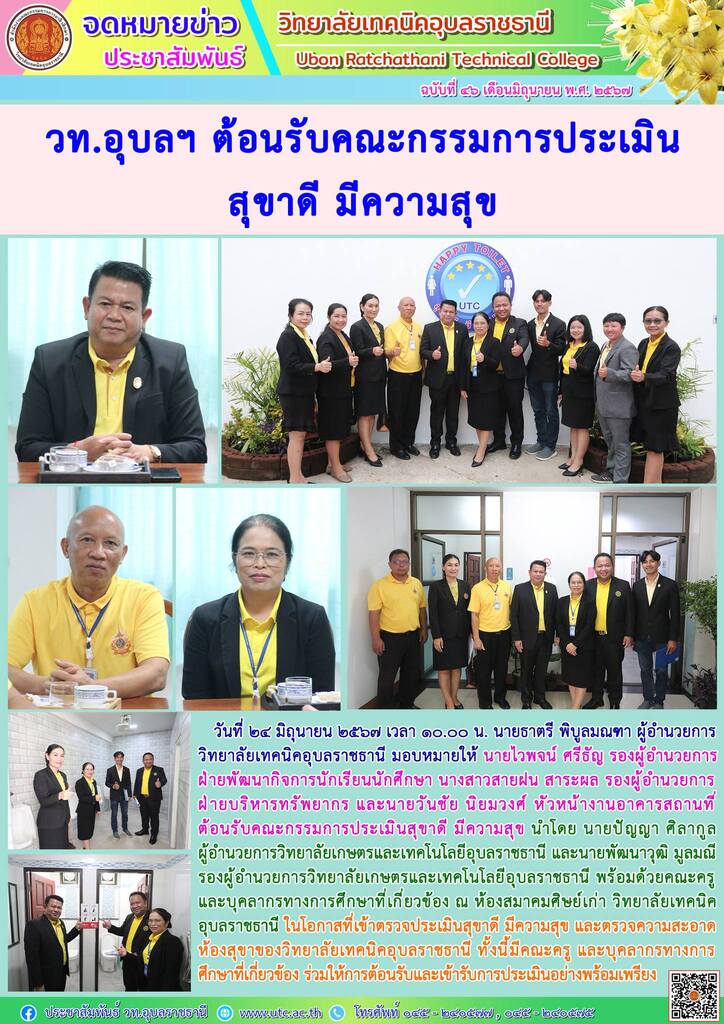 วันที่ ๒๔ มิถุนายน ๒๕๖๗ เวลา ๑๐.๐๐ น. นายธาตรี พิบูลมณฑา ผู้อำนวยการวิทยาลัยเทคนิคอุบลราชธานี มอบหมายให้ นายไวพจน์ ศรีธัญ รองผู้อำนวยการฝ่ายพัฒนากิจการนักเรียน (เพิ่มเติม…)