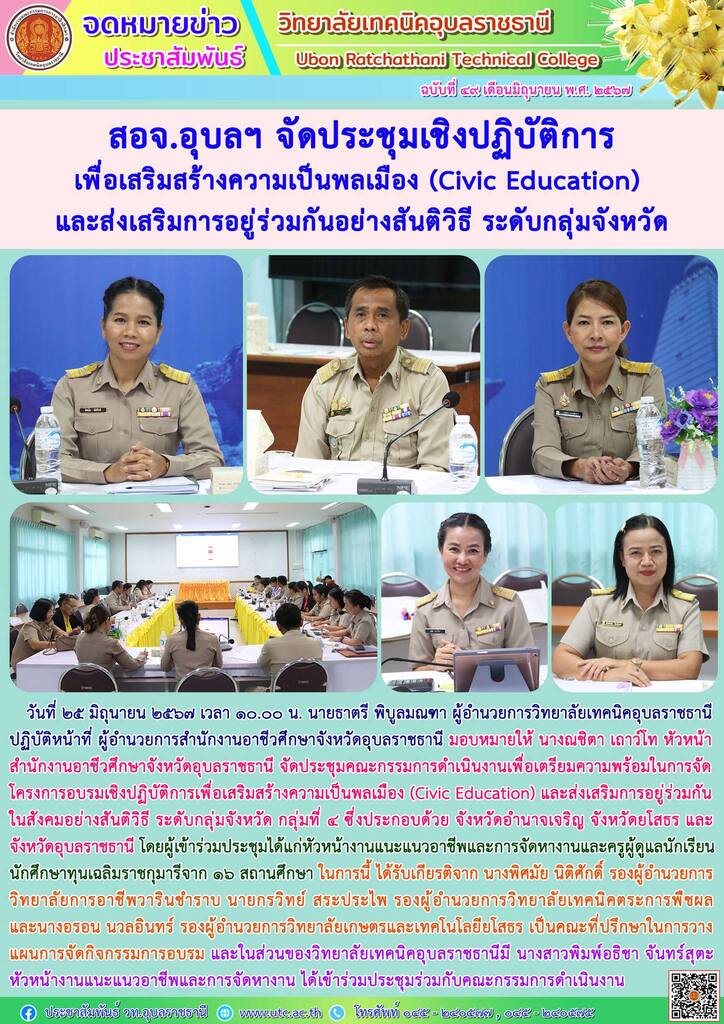 การอบรมเชิงปฏิบัติการเพื่อเสริมสร้างความเป็นพลเมือง (Civic Education) และส่งเสริมการอยู่ร่วมกันในสังคมอย่างสันติวิธี ระดับกลุ่มจังหวัด
