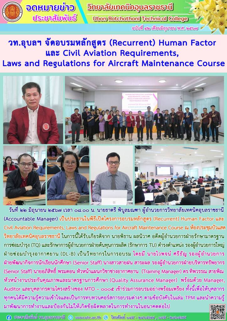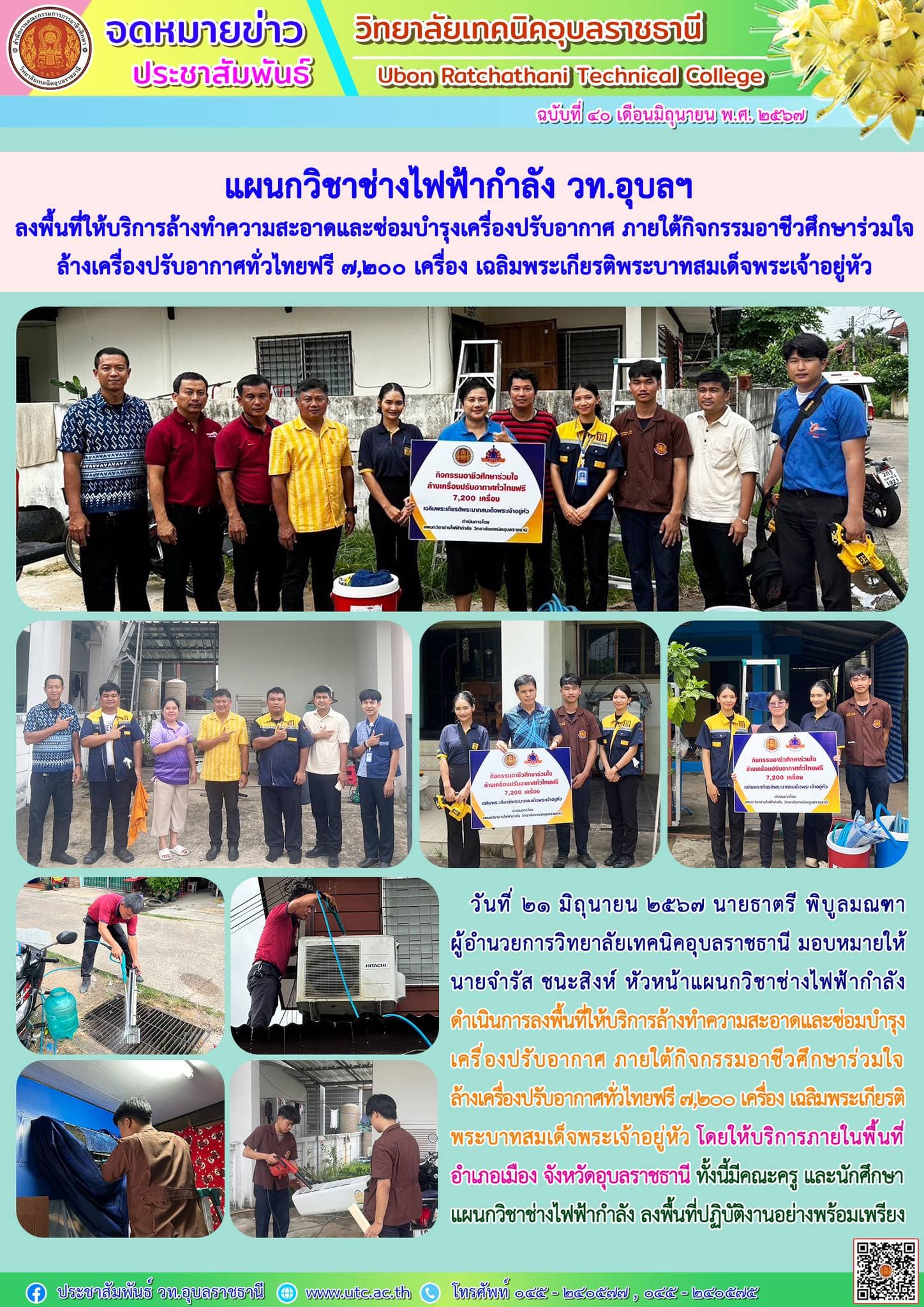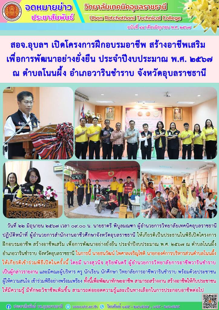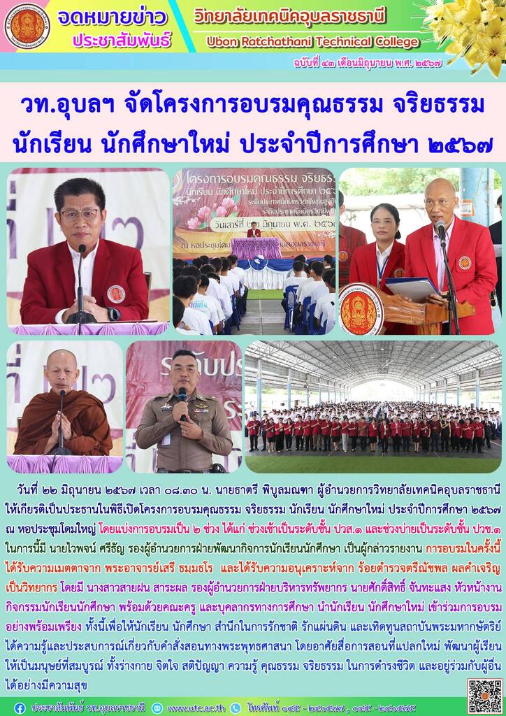 วันที่ ๒๒ มิถุนายน ๒๕๖๗ เวลา ๐๘.๓๐ น. นายธาตรี พิบูลมณฑา ผู้อำนวยการวิทยาลัยเทคนิคอุบลราชธานี ให้เกียรติเป็นประธานในพิธีเปิด (เพิ่มเติม…)